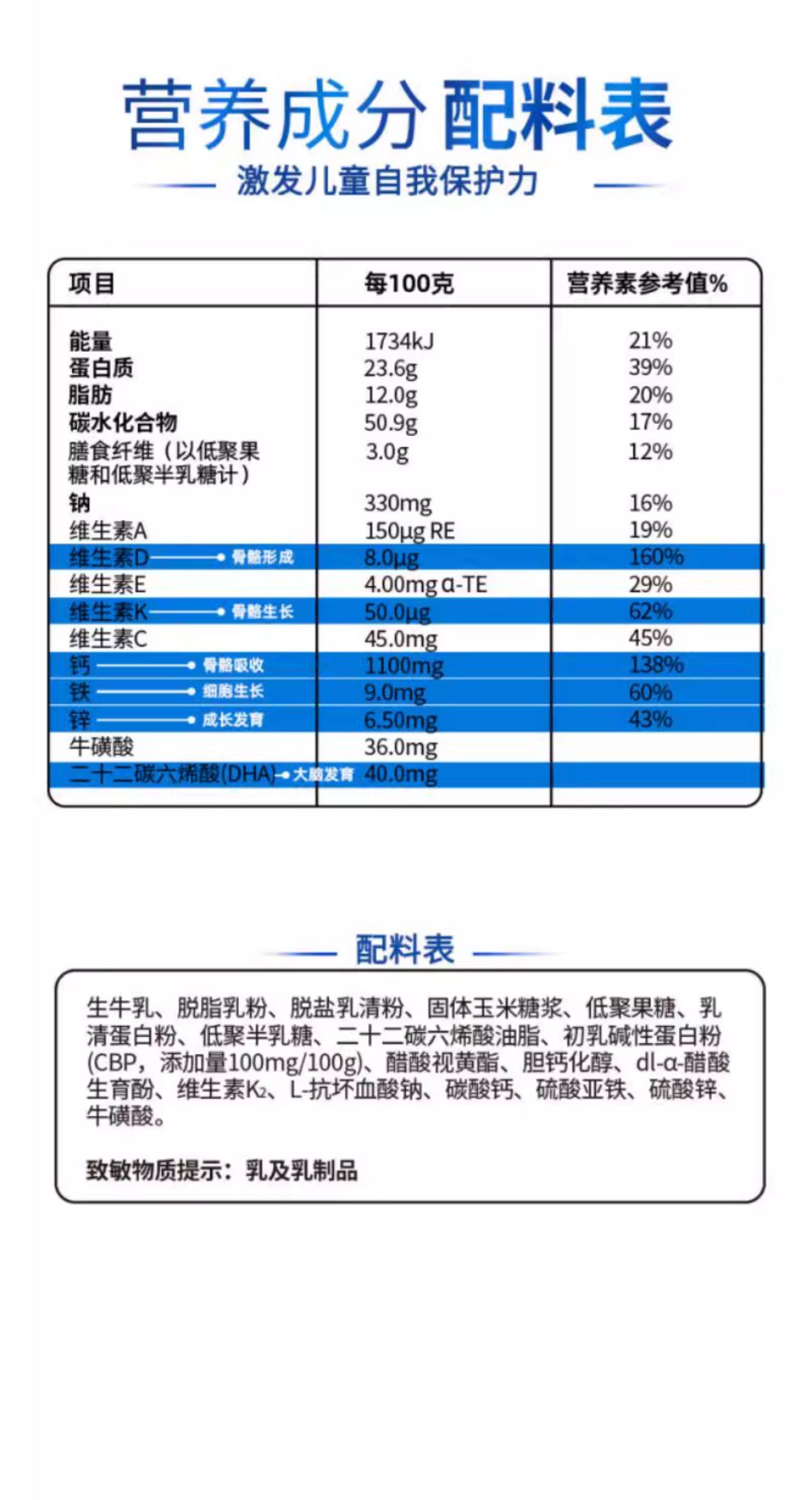 | Nutrients Contained | Dietary Fiber/Fruit and Vegetable Fiber,Vitamin a,Vitamin D,Calcium,Dha.,Vitamin C,Zinc,Iron |