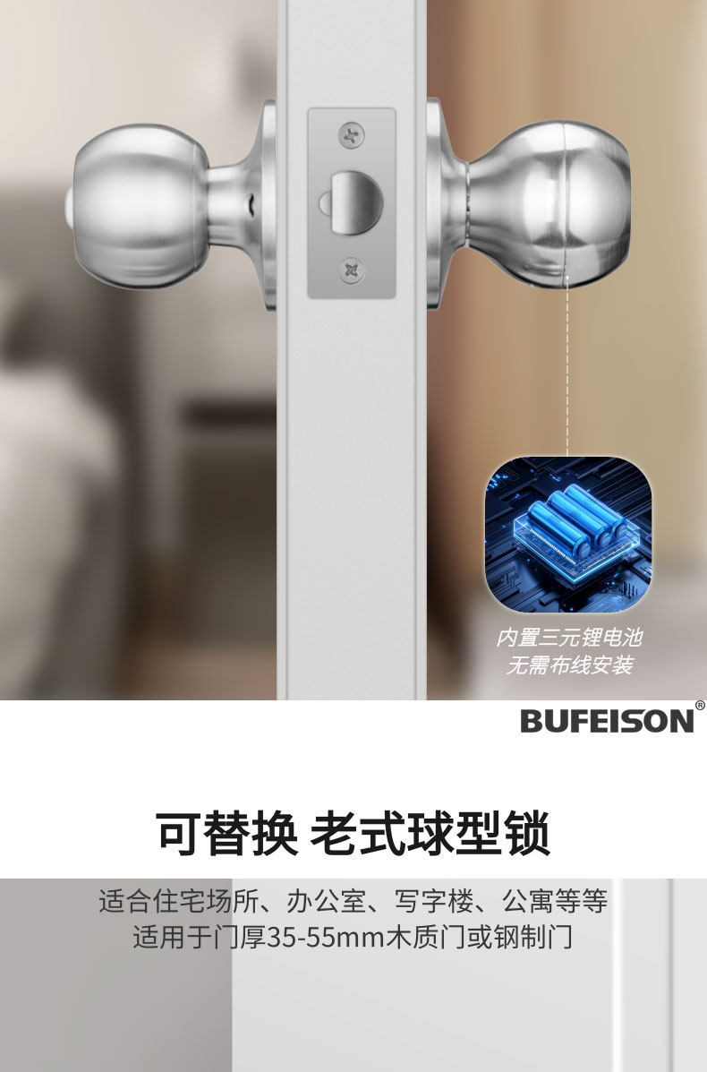 Spherical Smart Door Lock, Universal Type for Home Use, No Need to Change Holes, Fingerprint Lock for Bedroom Door, Bathroom, Indoor Wooden Door, Password Lock