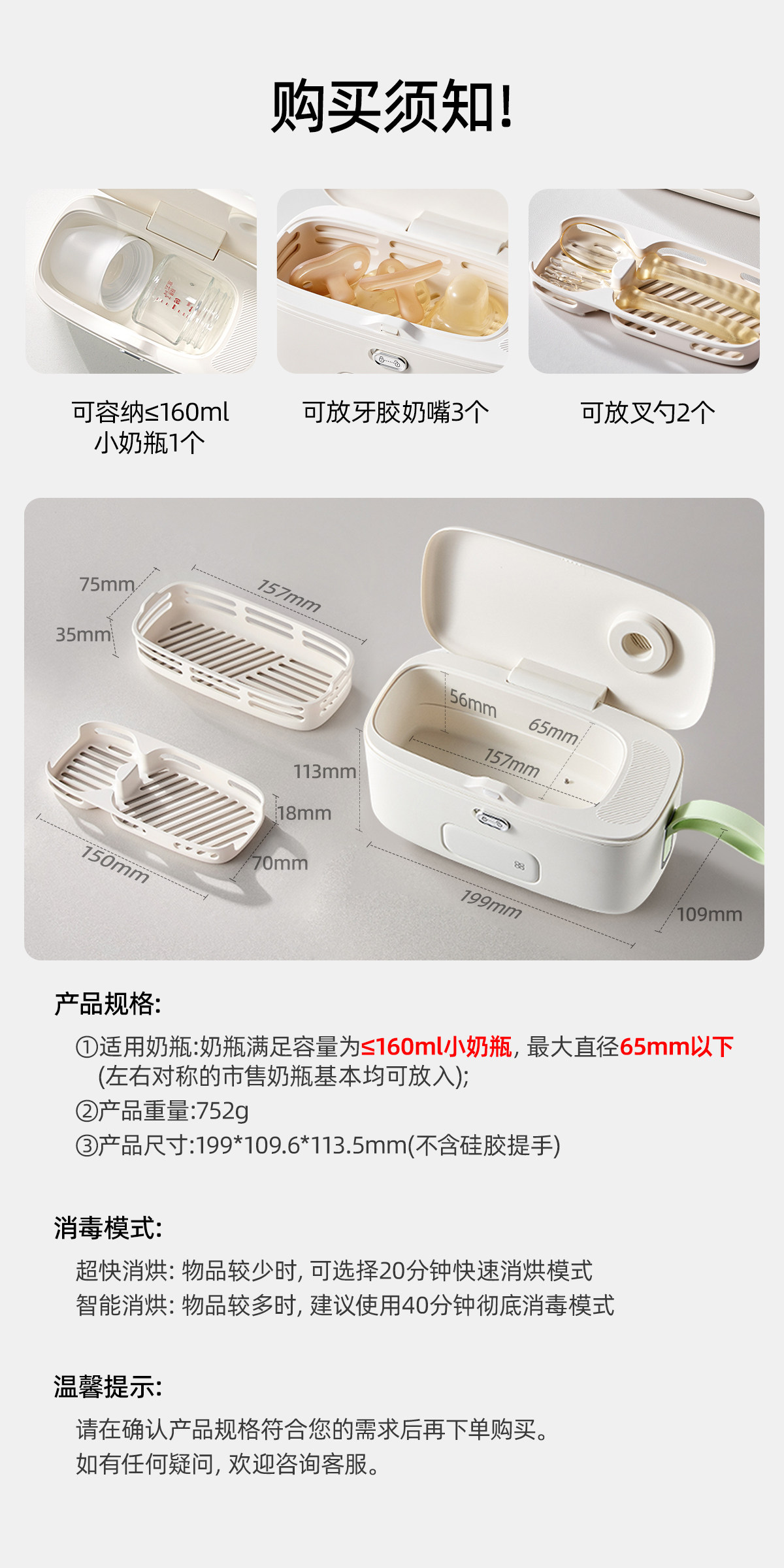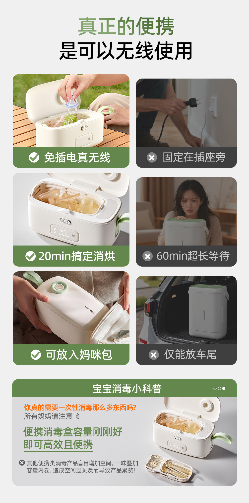 Bear Portable Sterilizer Wireless Baby Bottle Sterilizer Cabinet with Drying Two-In-One for Outdoor Use, Uv Light Special for Babies