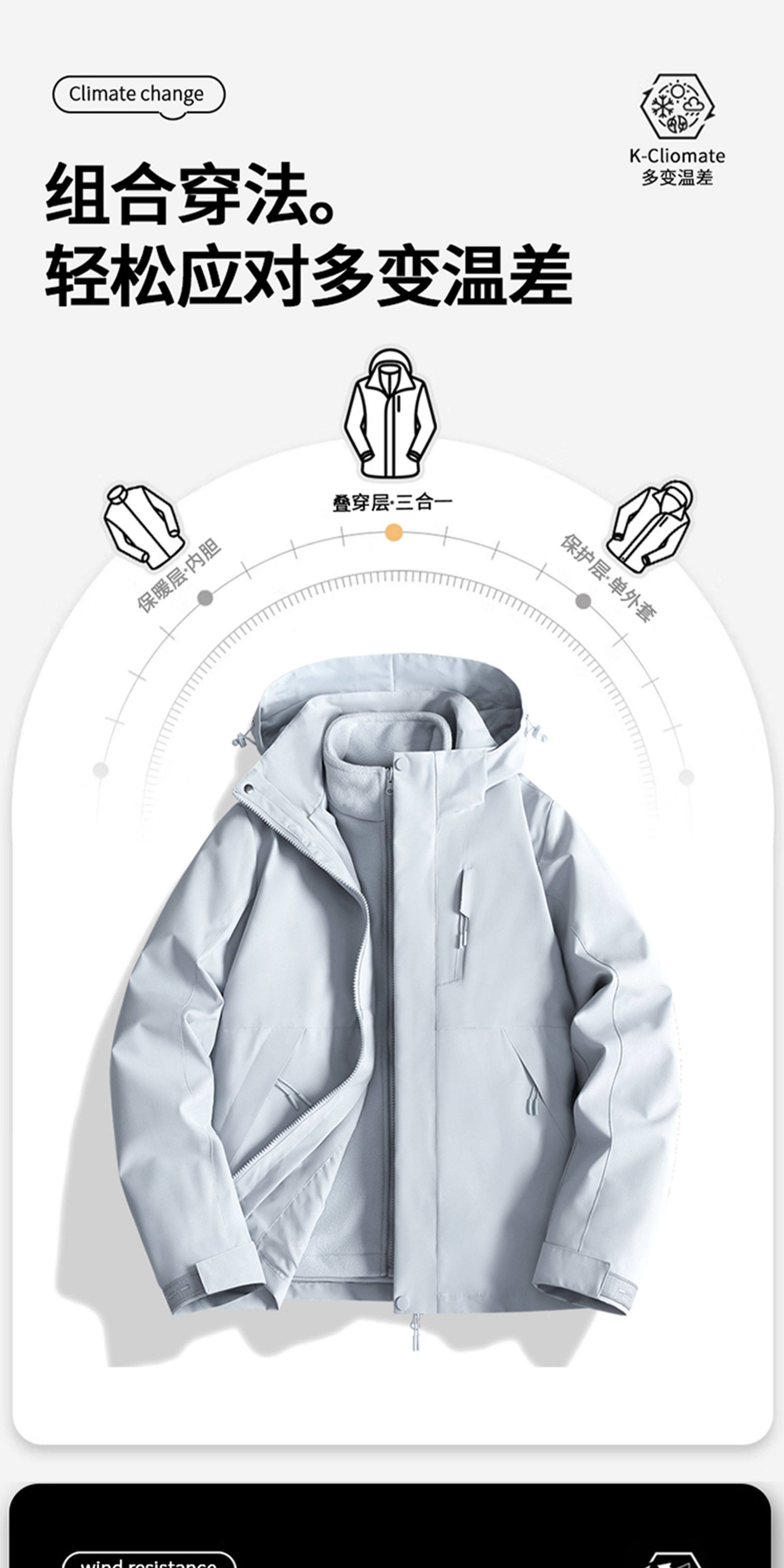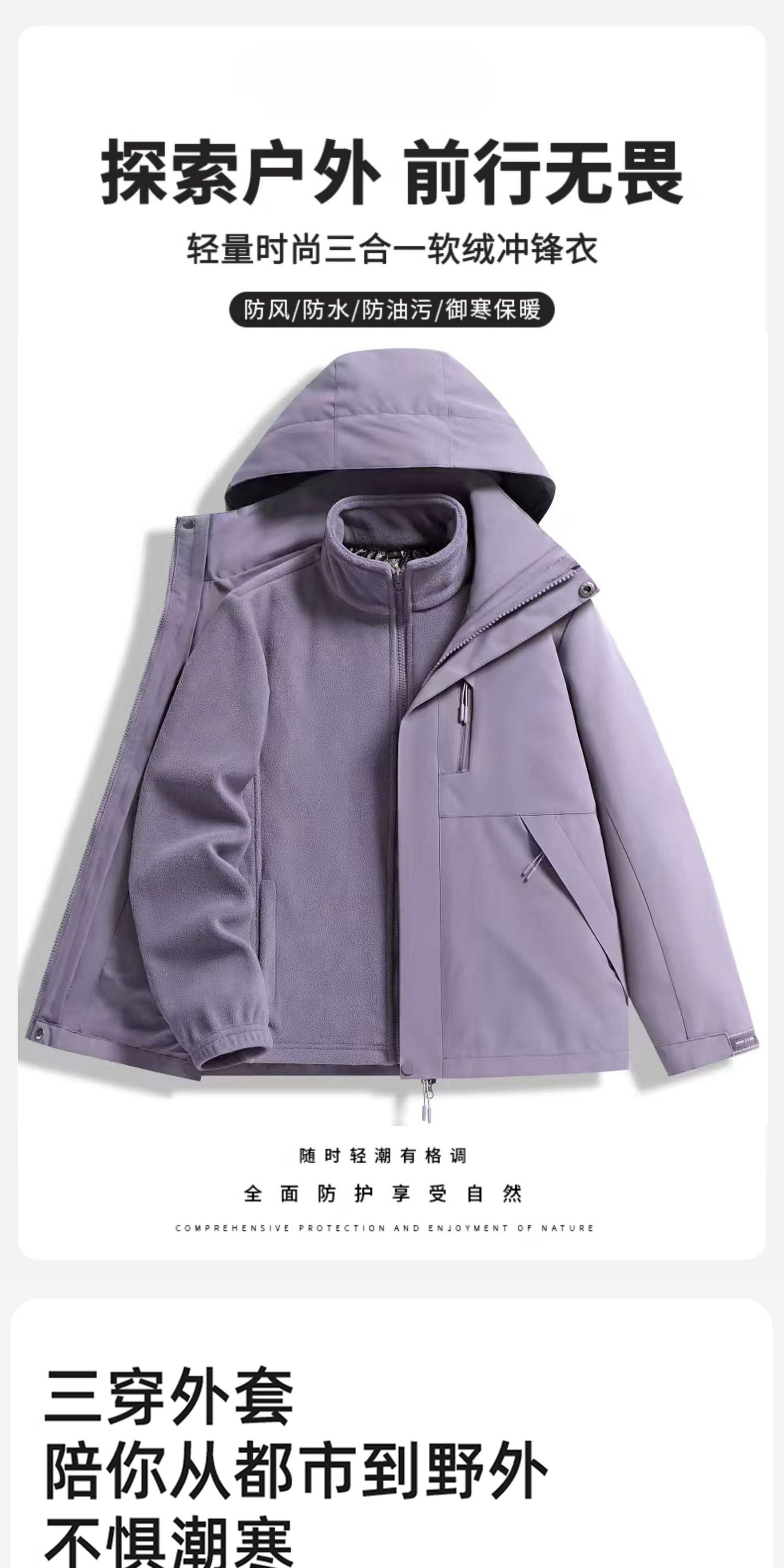 Outdoor Couple Detachable Three-In-One Jacket for Women 2025 New Autumn and Winter Windproof and Waterproof Jacket for Petite Sizes
