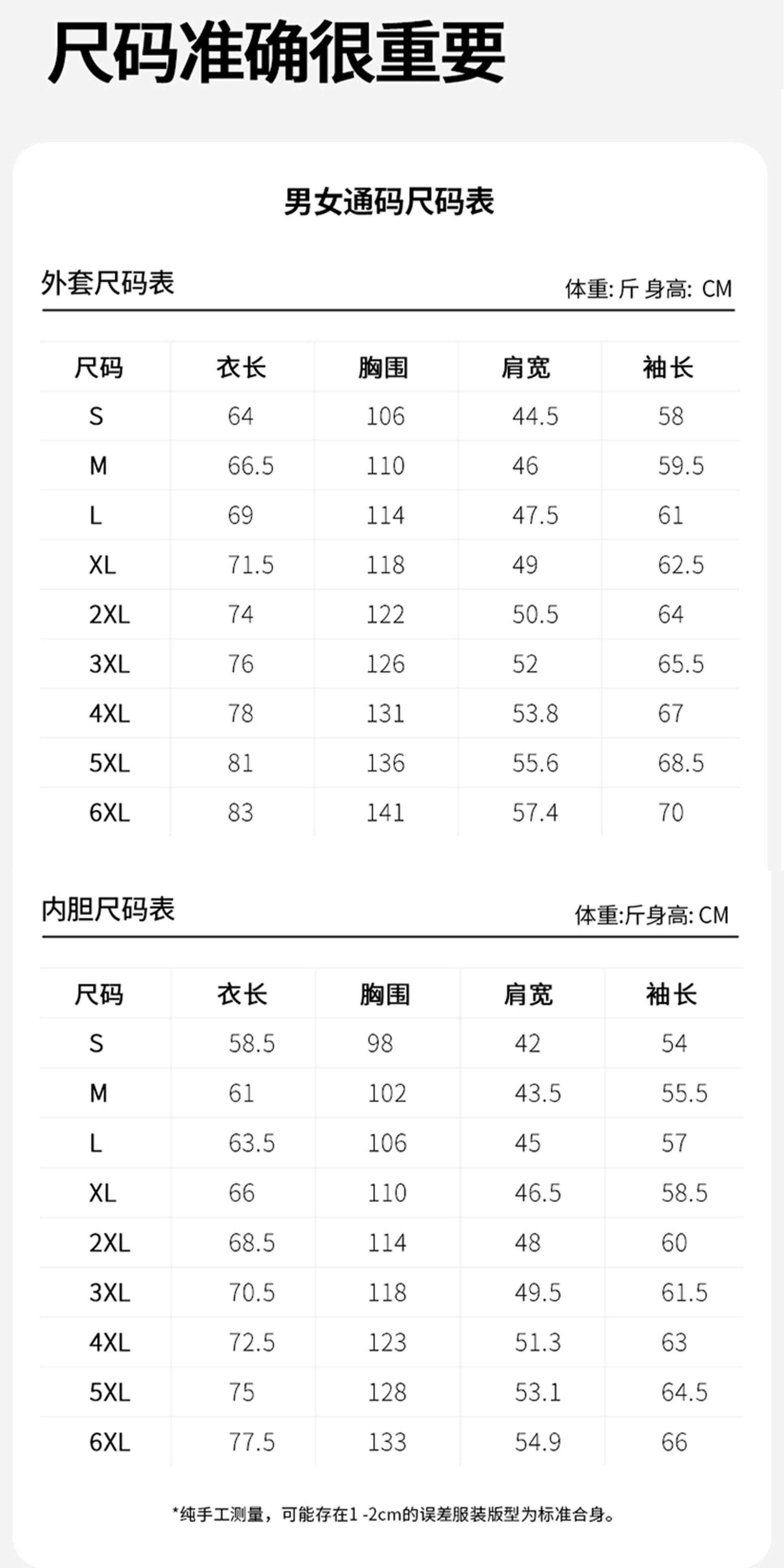 | Size | S [Recommendation 40-45kg],M【Recommendation 45-50kg】,L【Recommendation 50-57.5kg】,XL [Recommended 57.5-65kg],2XL [Recommended 65-72.5kg],3XL [Recommended 72.5-80kg],4XL [Recommended 80-90kg],5XL [Recommended 90-100kg],6XL [Recommended 100-110kg] |