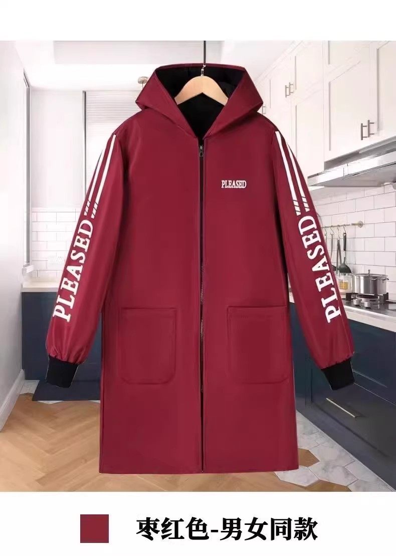 Extra Long Over-The-Knee Fleece-Lined Work Clothes, Waterproof and Oil-Proof Coveralls, Oversized Men's and Women's Long-Sleeved Hooded Clothes, Stain-Resistant and Wear-Resistant