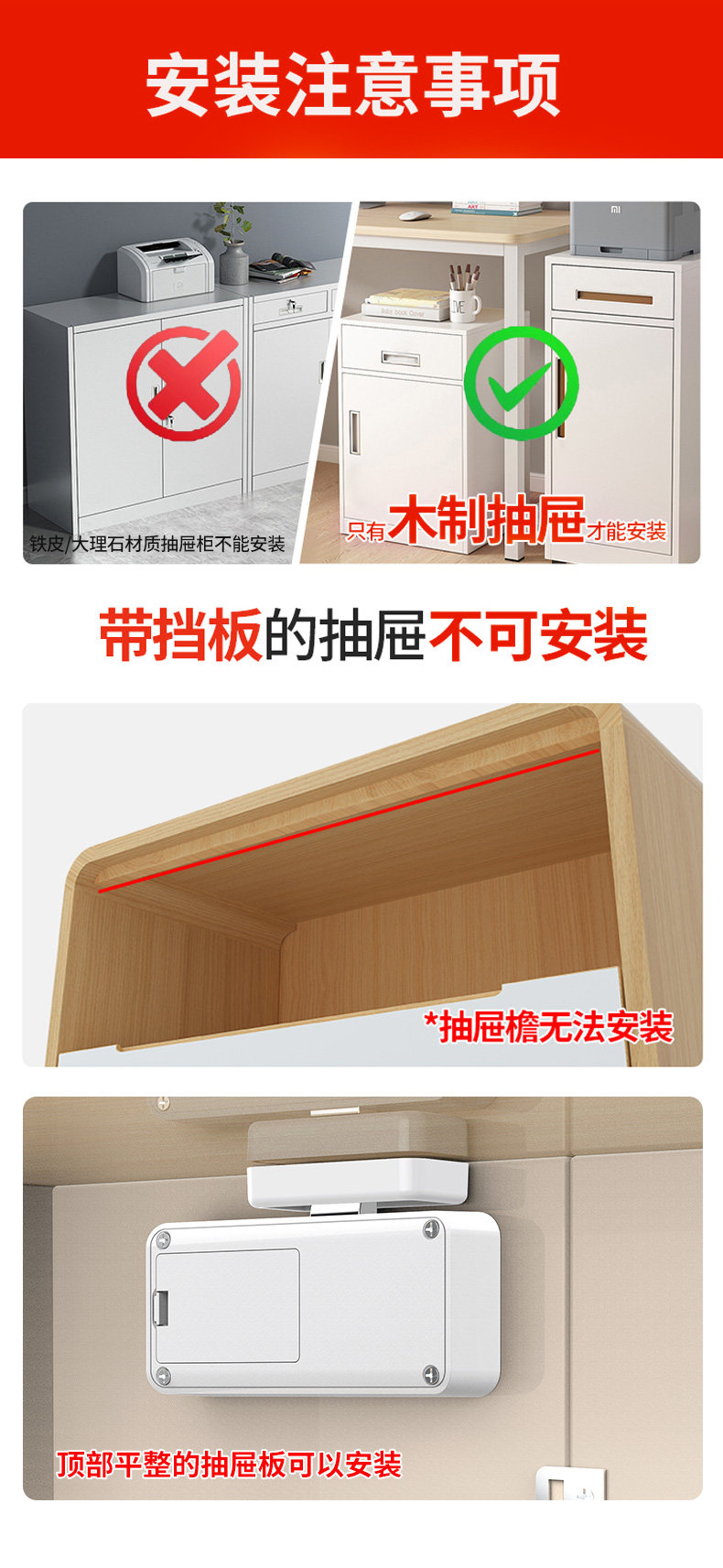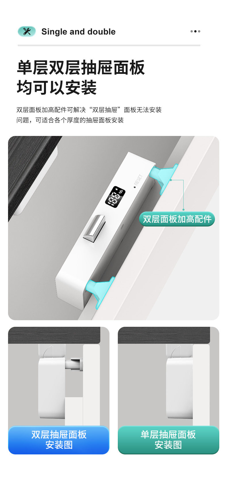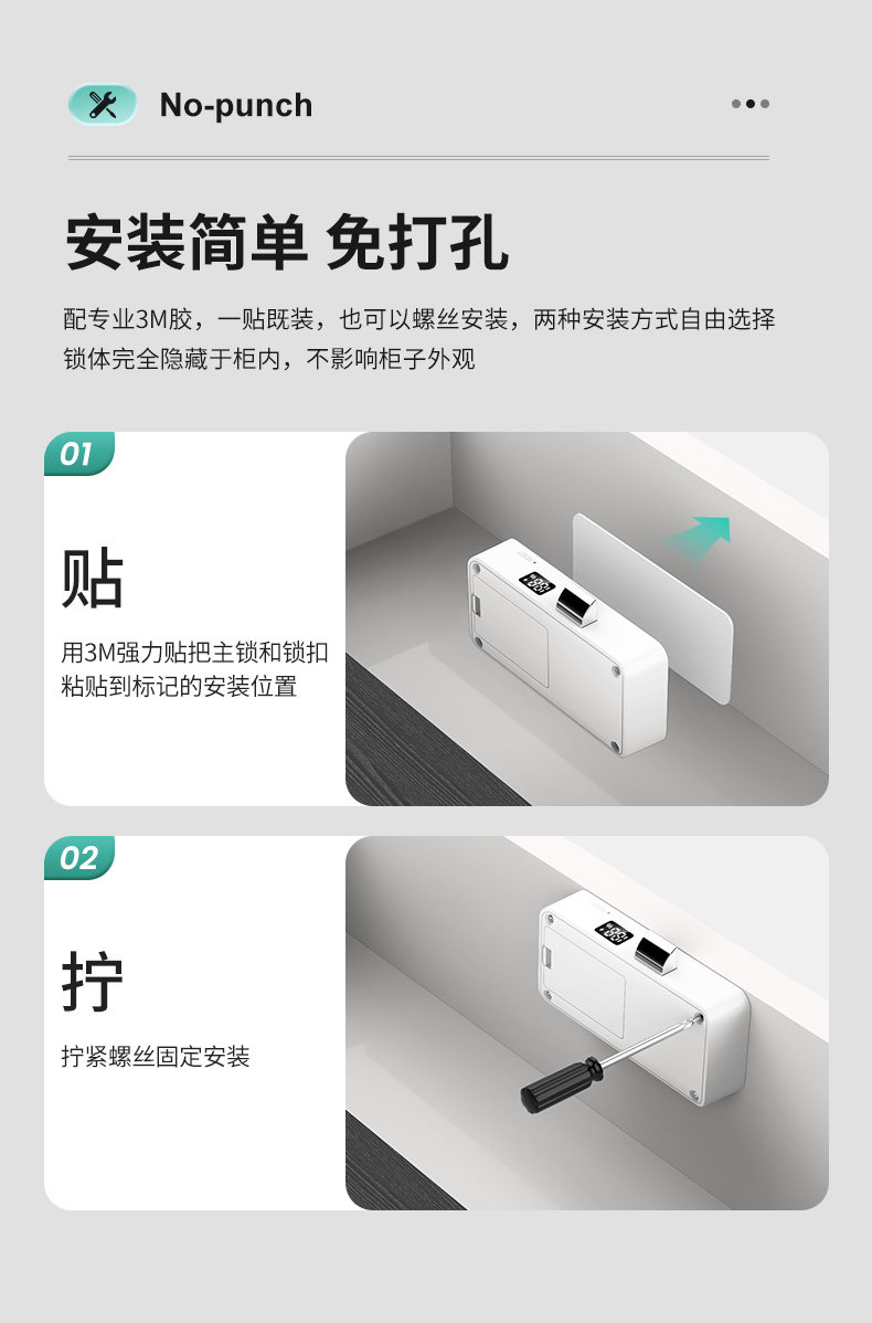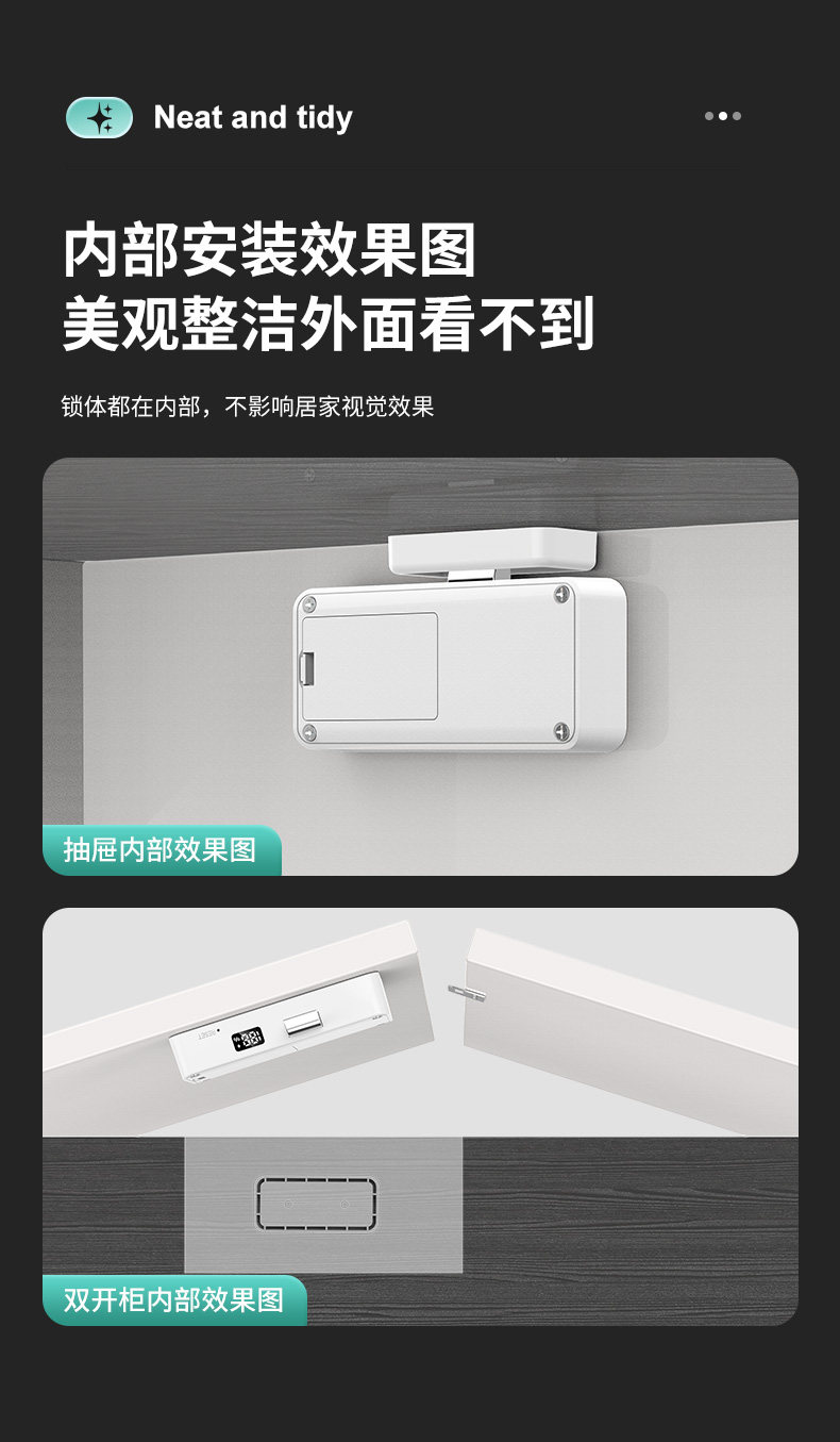 Office Drawer Lock, No-Drill Installation, Smart Sensor Lock, File Cabinet Lock, Wardrobe Door, Shoe Cabinet Invisible Hidden Lock