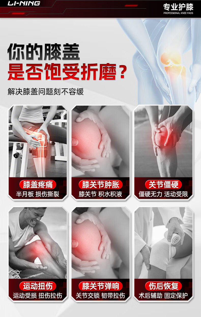 Li-Ning Sports Knee Brace for Men, Meniscus Injury Protection Sleeve, Professional Knee Support for Hiking, Climbing Stairs, and Running