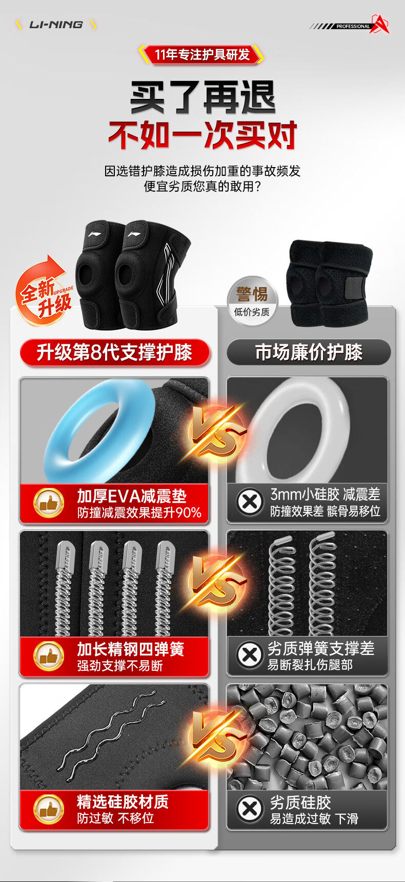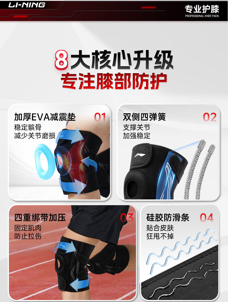 | Color Classification | Store Manager's RecommendationāUpgraded 4-Spring Support Model, Black [Eva Pad Shock Absorption/Compression Straps],Store Manager's RecommendationāUpgraded 4-Spring Support Model, Gray [Eva Pad Shock Absorption/Compression Straps],Basic Sports ModelāBlack [Gasket Shock Absorption/Strap Pressurization/Spring Support],Sports Pro EditionāBlack/Black-Blue [4-Spring Support + Eva Cushioning Pad + Breathable Fabric],Luxury Professional Sports ModelāPink Gray [4 Spring Supports + Thickened Eva Patellar Ring + Built-In Anti-Slip Strips],Luxury Professional Sports ModelāOrange and Black [4 Spring Supports + Thickened Eva Patellar Ring + Built-In Anti-Slip Strips],Classic Style ā Black [Gasket Shock Absorption/Strap Pressurization/Spring Support] |