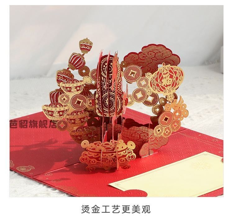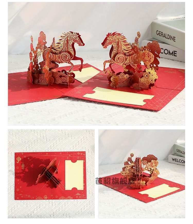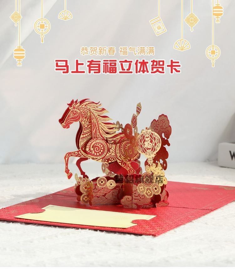 2026 New Year Greeting Card Golden Horse New Year 3D Stereo Year of the Horse New Year's Day Spring Festival Blessing Gift Business New Year Card