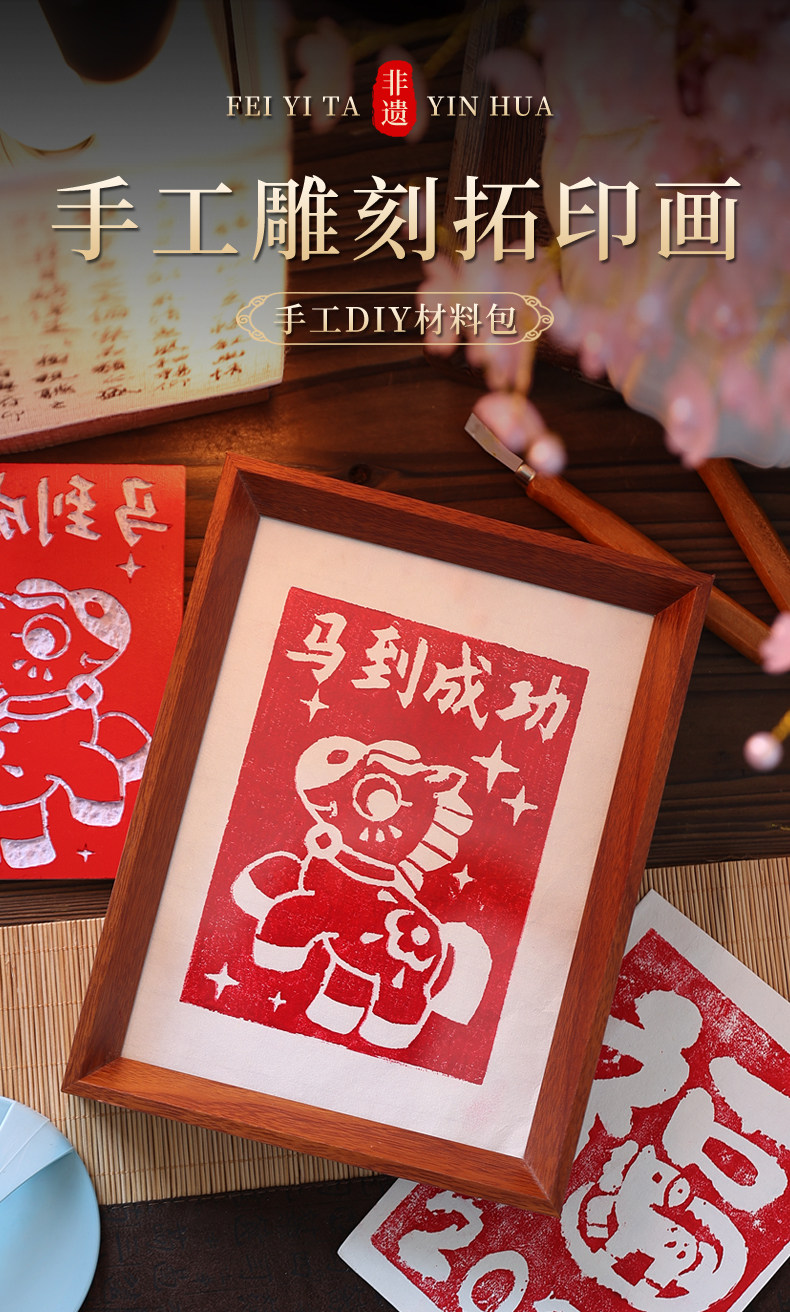 Children's Year of the Horse Intangible Cultural Heritage Block Printing Technique Rubbing Painting DIY Handmade Material Kit Kindergarten New Year Decoration