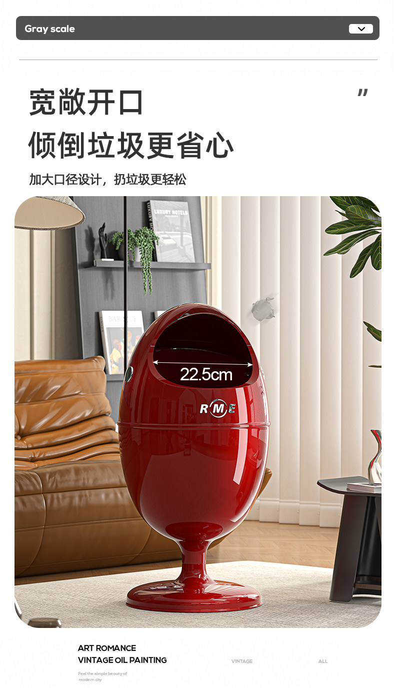 Large-Capacity Household Trash Can, 2025 New Model, Light Luxury, Creative, High-End, with Wheels, Large Size, No Need to Bend Over, Living Room Trash Can