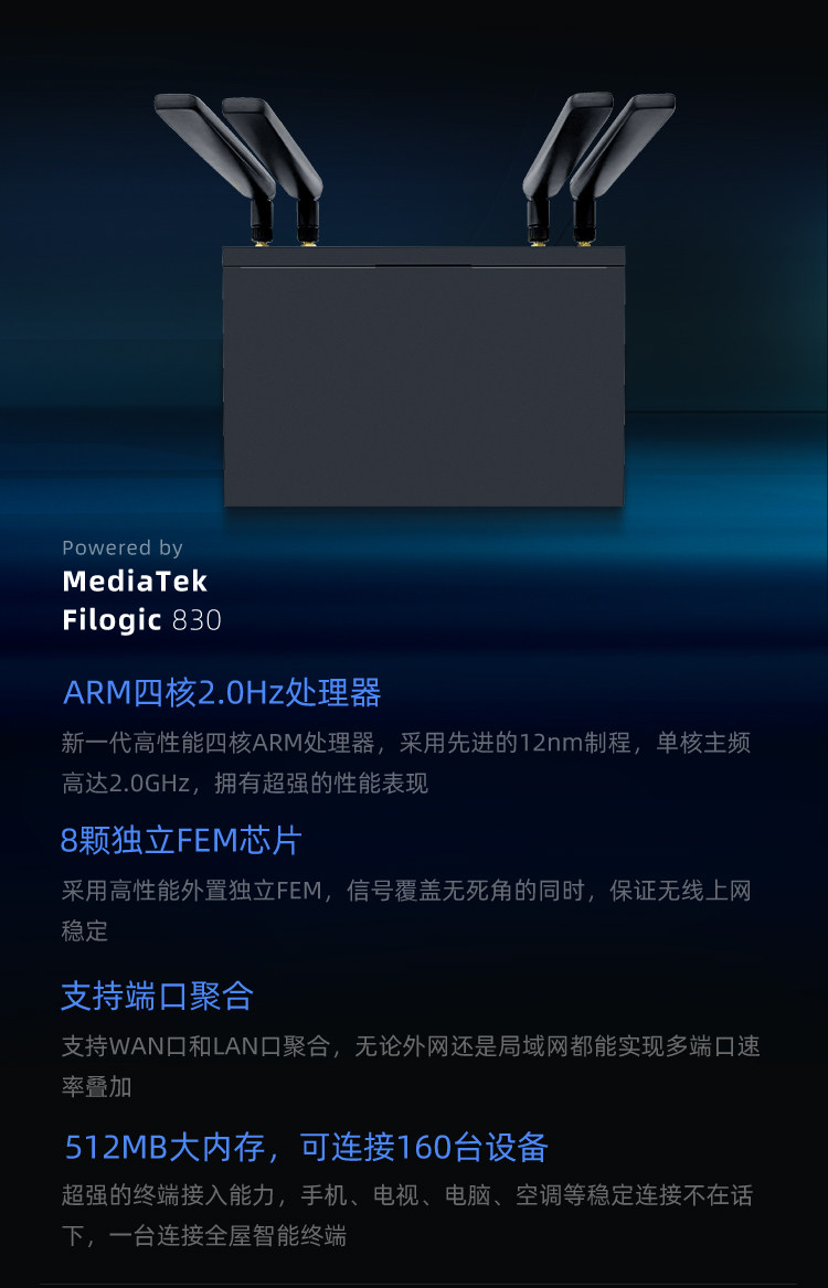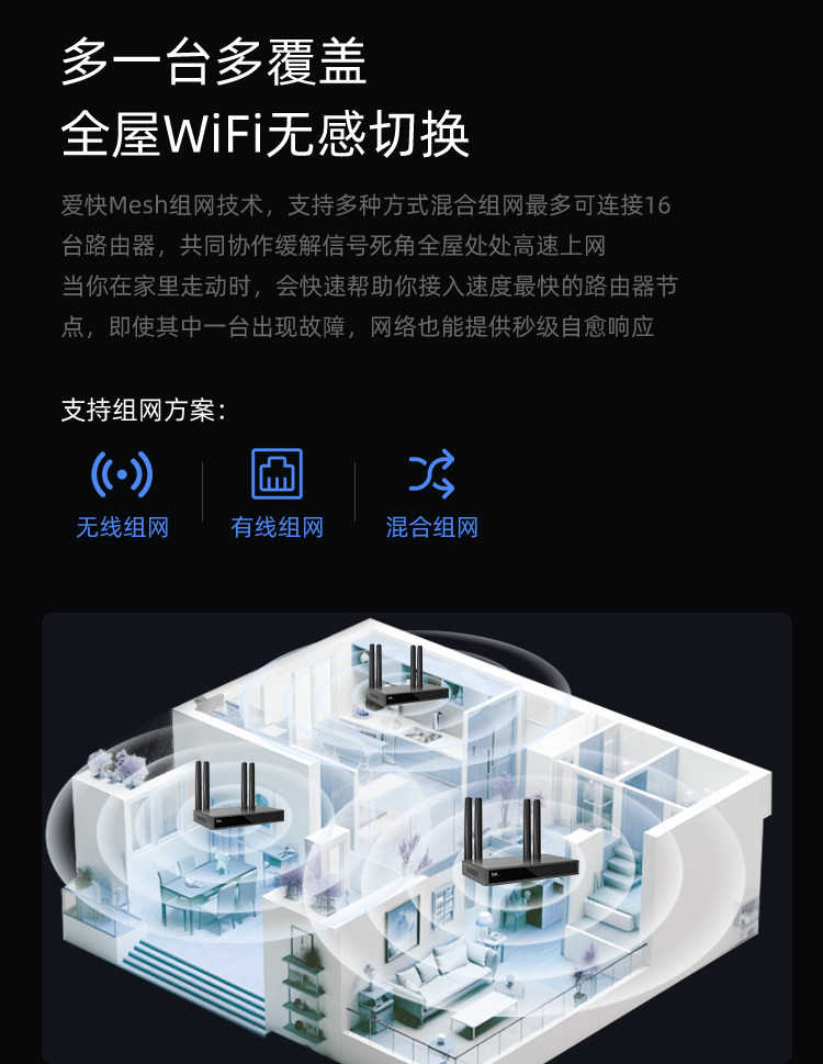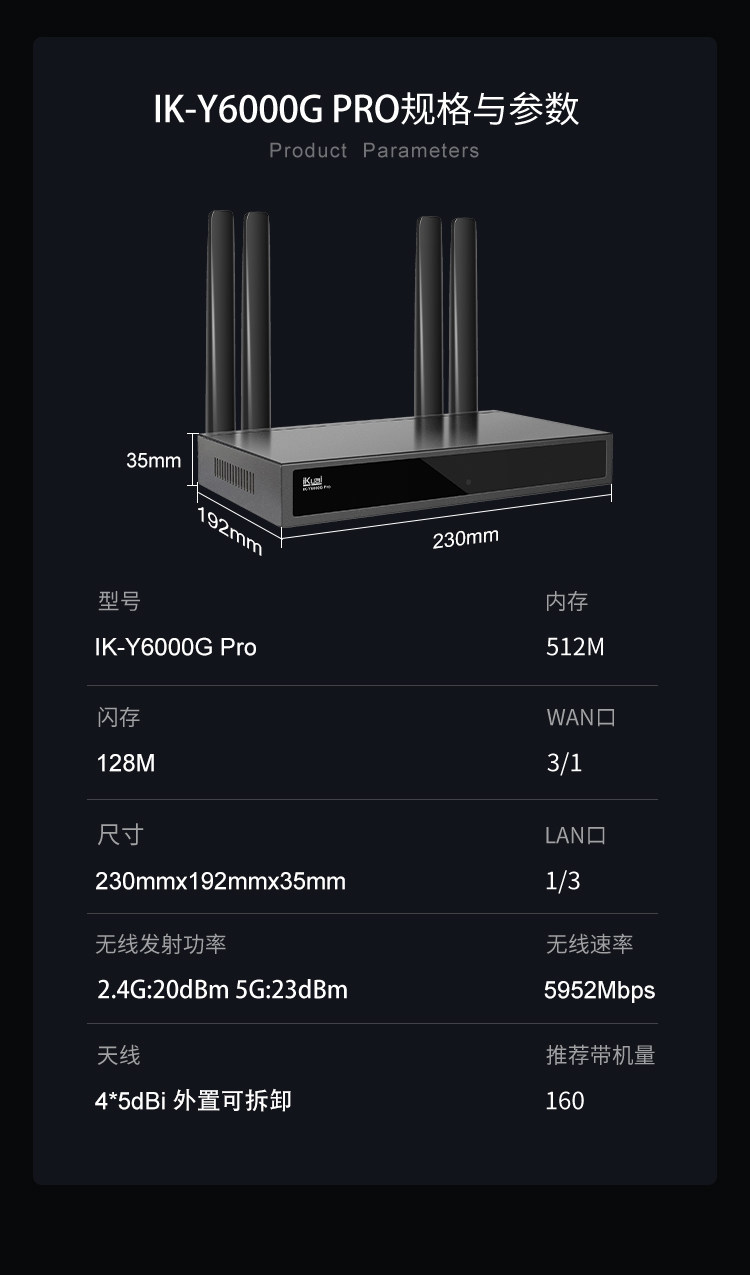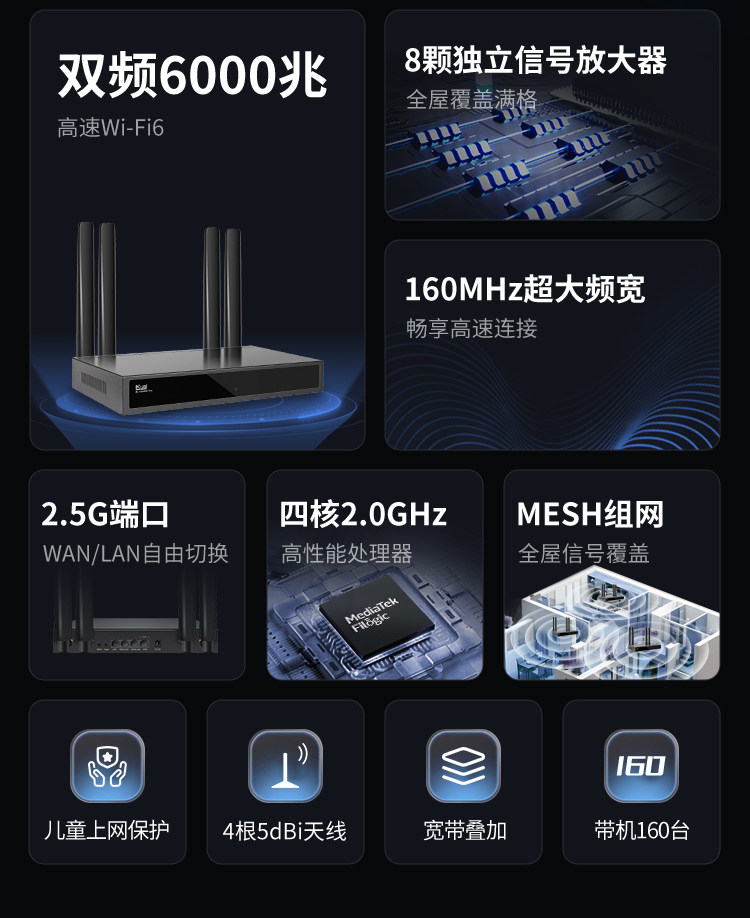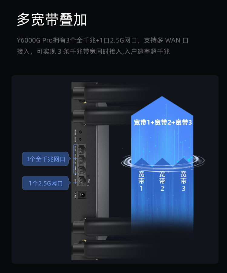 Aikuai Gigabit Network Router Enterprise-Class 2.5g Wireless Wifi6 High-Speed Home Ax6000 Broadband Aggregation Wan/Lan Switching Mesh Networking Whole House Coverage Y6000G Pro