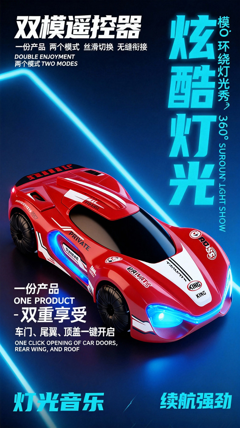 | Color Classification | Passionate Red - Standard Remote Control Version [Custom Stickers + Dazzling Lights + One-Key Door Opening + Dynamic Music],Black Warrior - Standard Remote Control Edition [Custom Stickers + Dazzling Lights + One-Key Door Opening + Dynamic Music],Passionate Red - Gesture Control Watch + Standard Remote Control Edition [Custom Stickers + Dazzling Lights + One-Key Door Opening + Dynamic Music],Black Warrior - Gesture Control Watch + Standard Remote Control Edition [Custom Stickers + Dazzling Lights + One-Key Door Opening + Dynamic Music] |