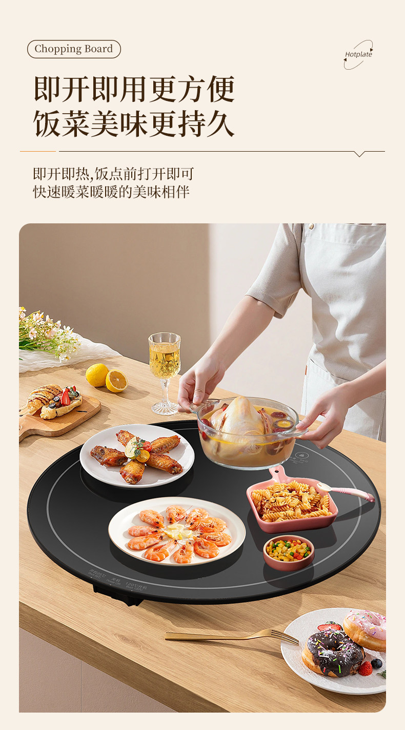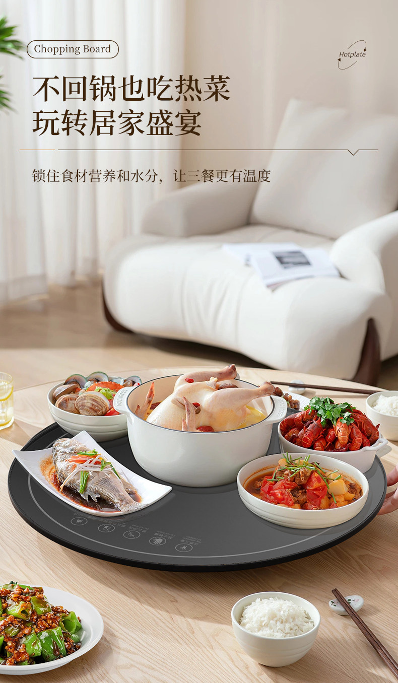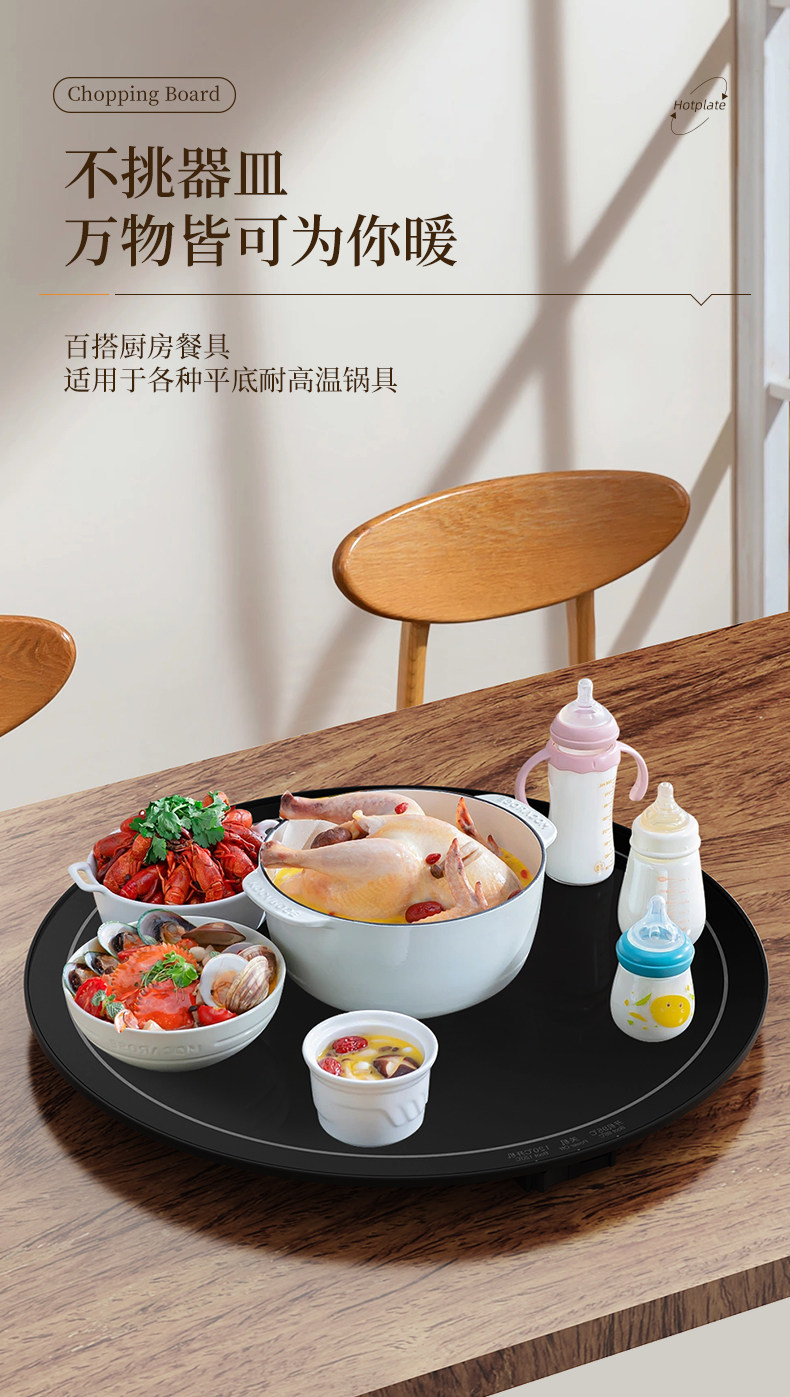 Heated Food Warming Plate, Round Heating Pad for Home Use, Rotating Dining Table Mat, Electric Multifunctional Rotating Food Warmer