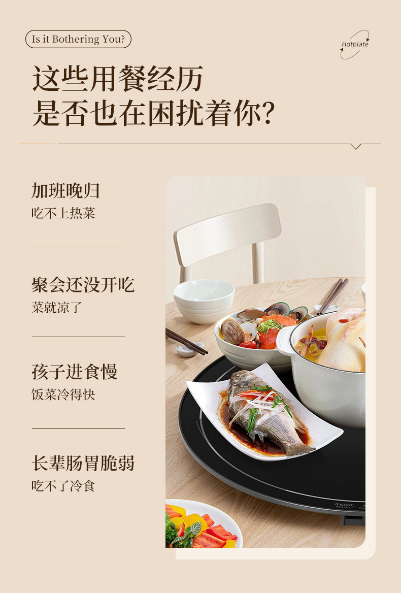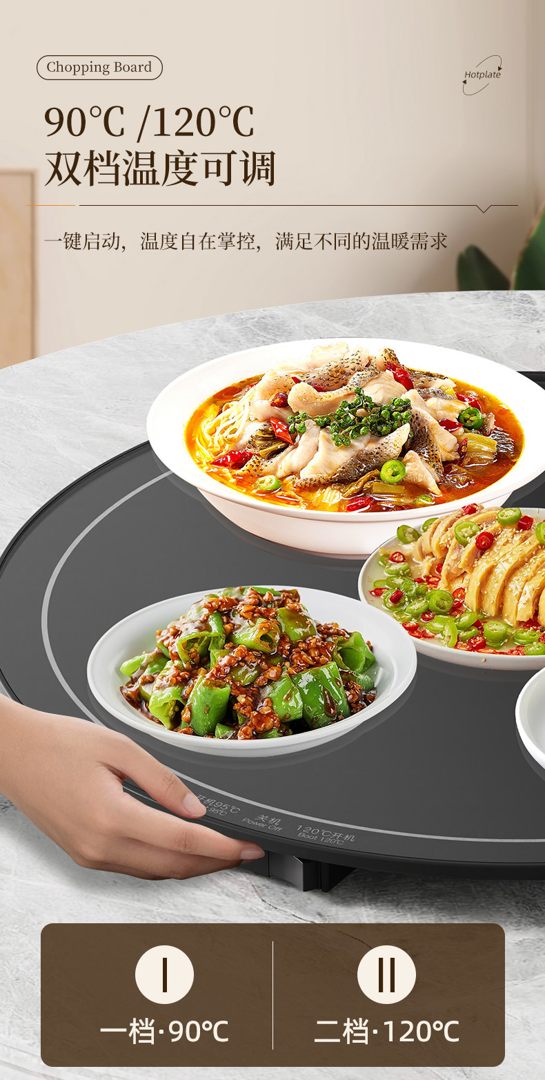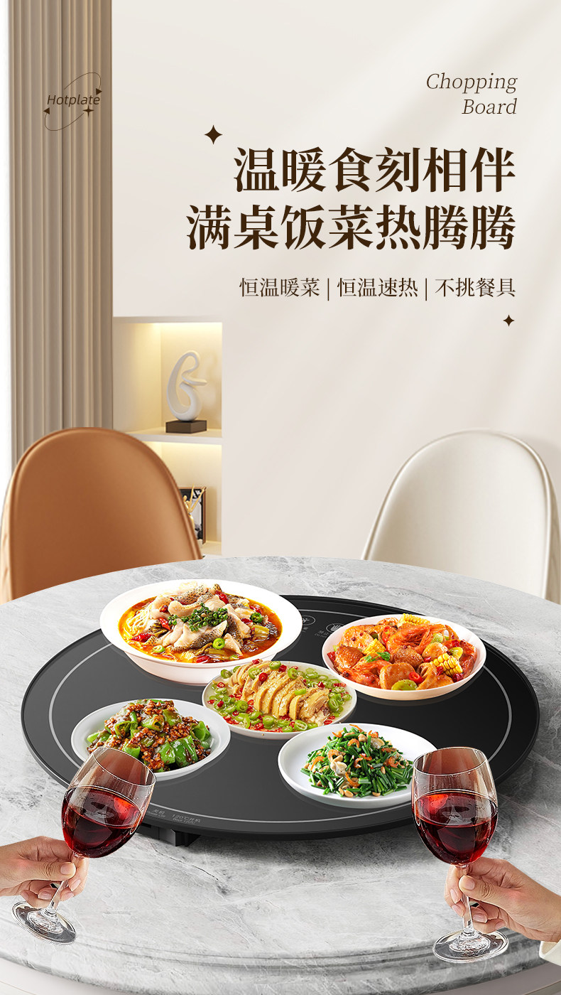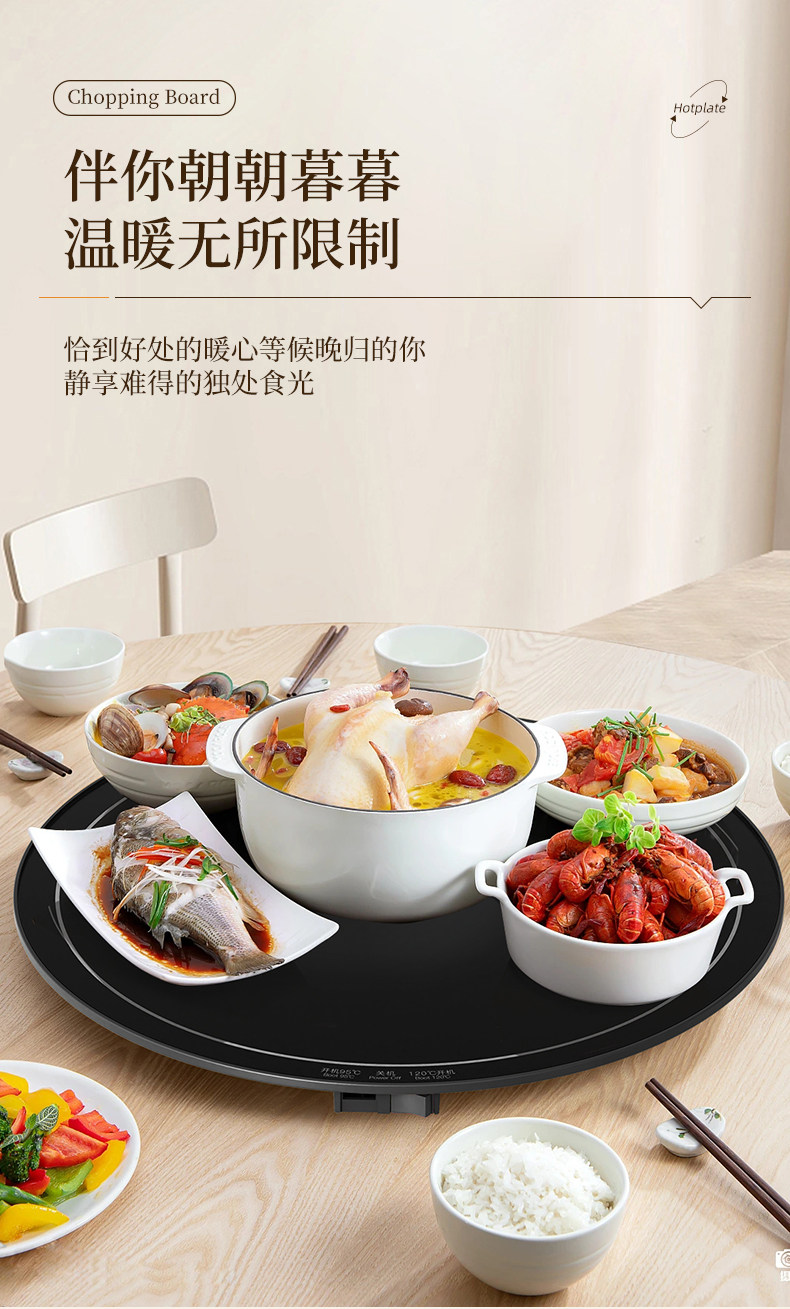 Heated Food Warming Plate, Round Heating Pad for Home Use, Rotating Dining Table Mat, Electric Multifunctional Rotating Food Warmer