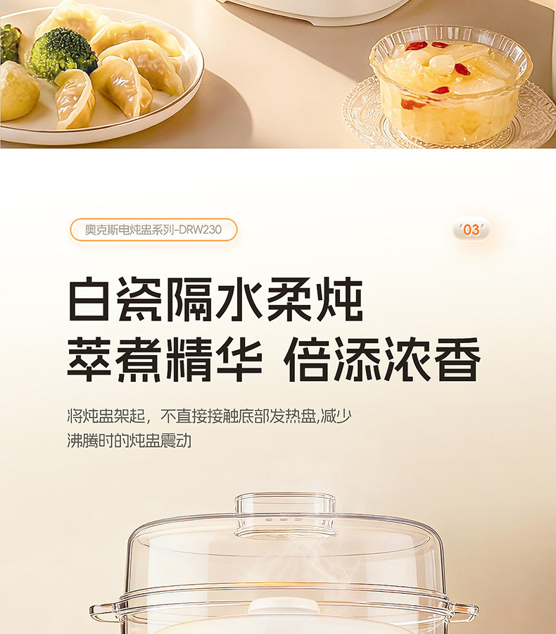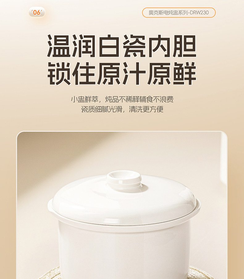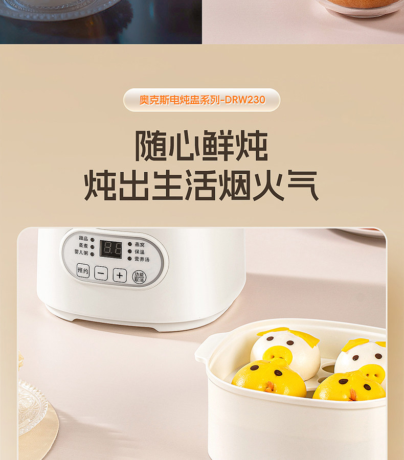 Oaks Multifunctional Household Ceramic Electric Stew Pot for 1-2 People, Suitable for Making Soup, Baby Food, Porridge, and Bird's Nest Stewing