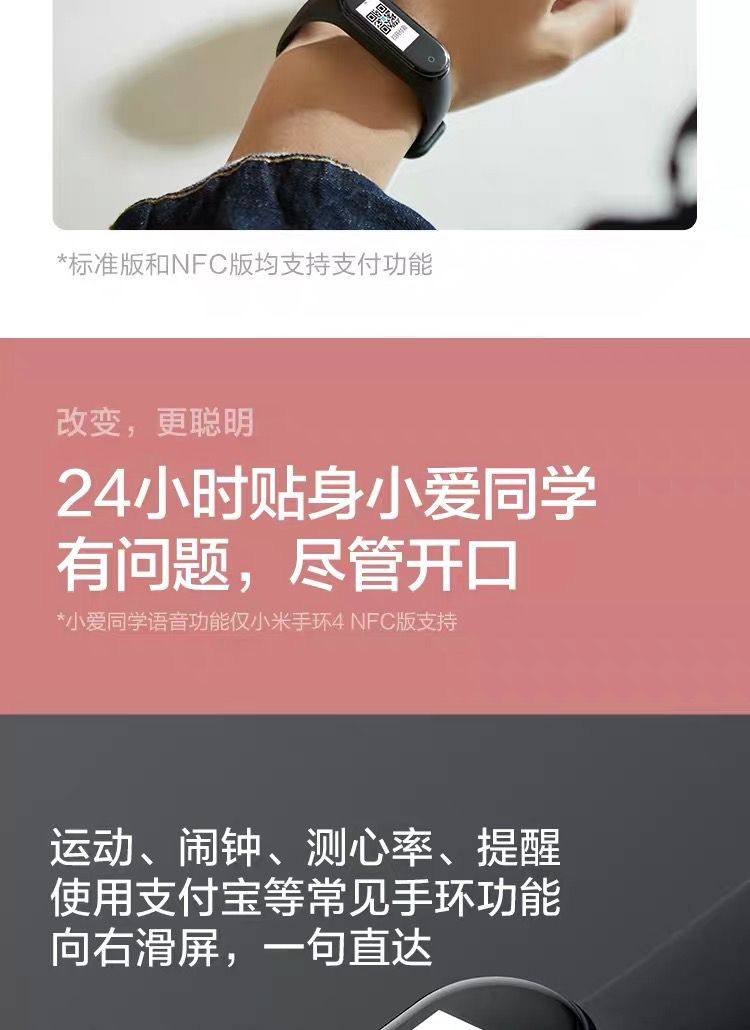 Xiaomi Mi Band 4 Smart Sports Tracker with Long Battery Life, Step Counting, Heart Rate, Sleep Health Monitoring, Multifunctional Nfc for Men and Women Students