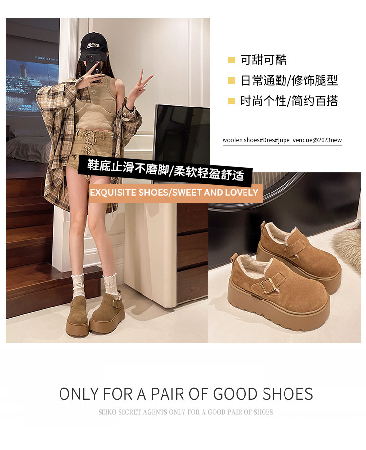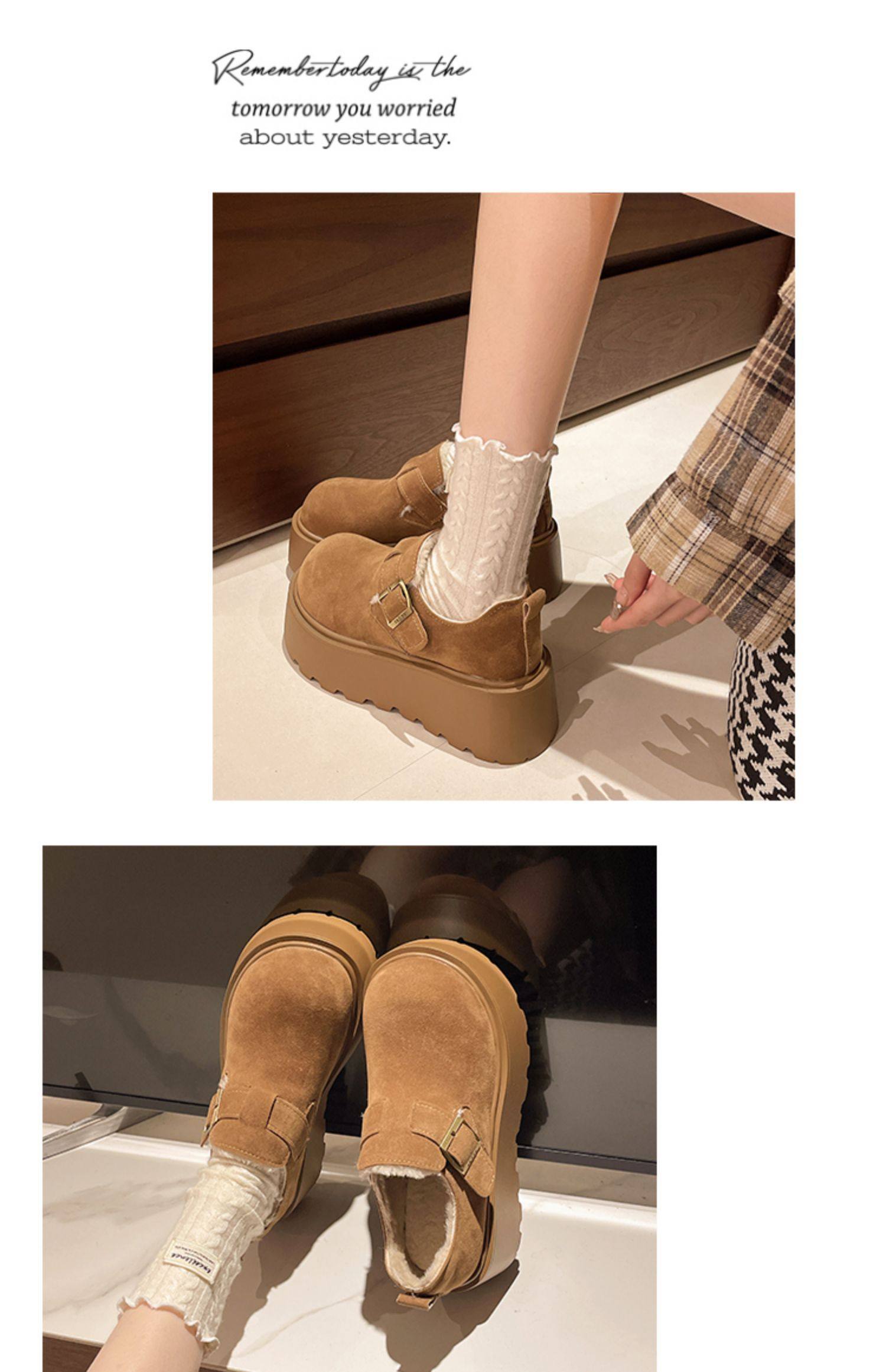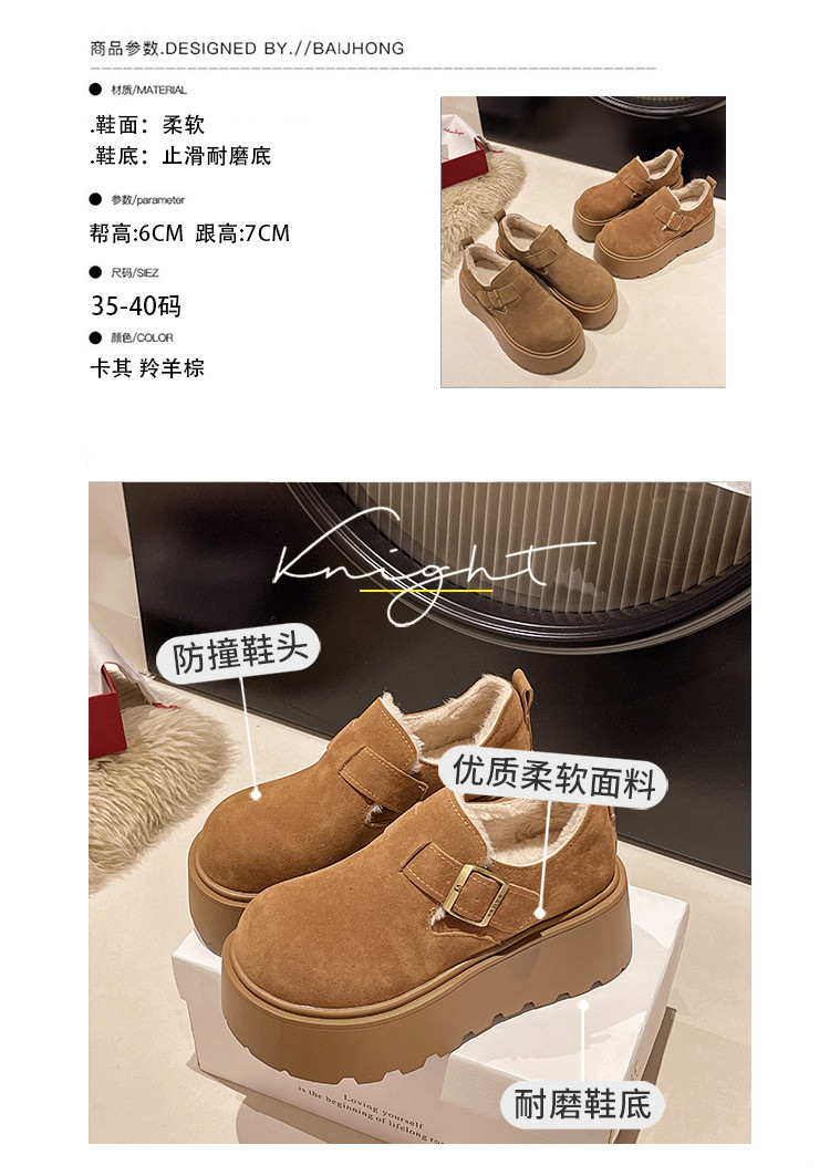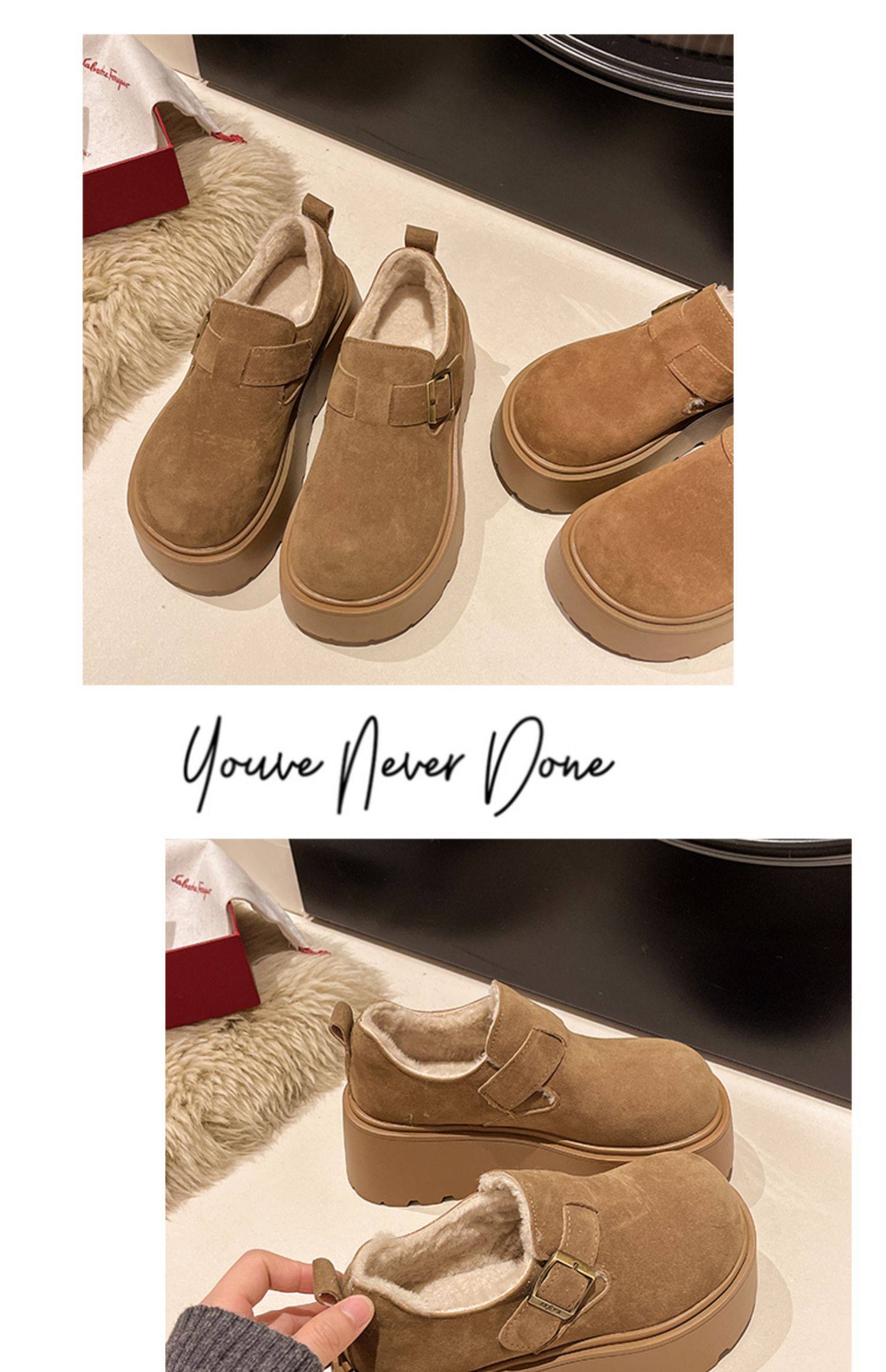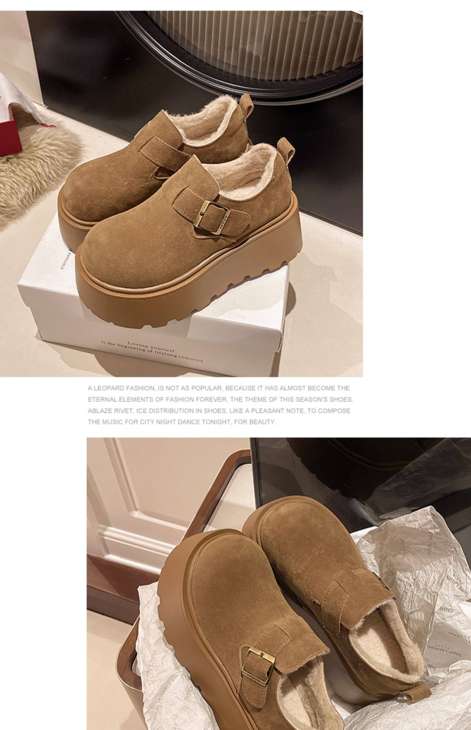 Platform Thick-Soled Height-Increasing Plush Birkenstock Shoes for Women, 2025 Autumn and Winter New Slip-On Loafers, Birkenstock Cotton Shoes, Size 34
