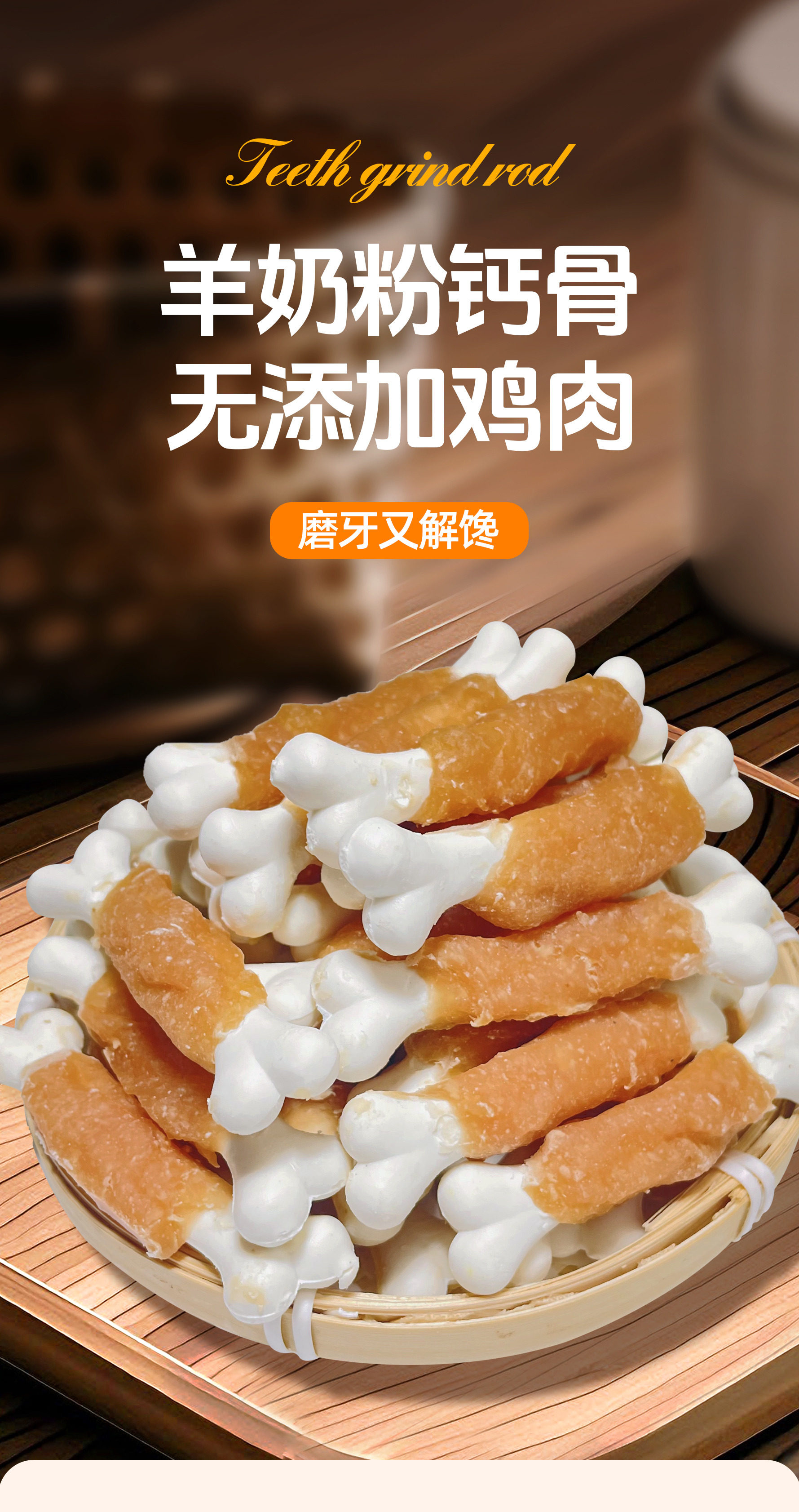 Chicken Wrapped Around Calcium Milk Stick Bone Pet Dog Snacks Training Reward Teeth Cleaning and Grinding Nutrition Meat Jerky Dog Teething Stick