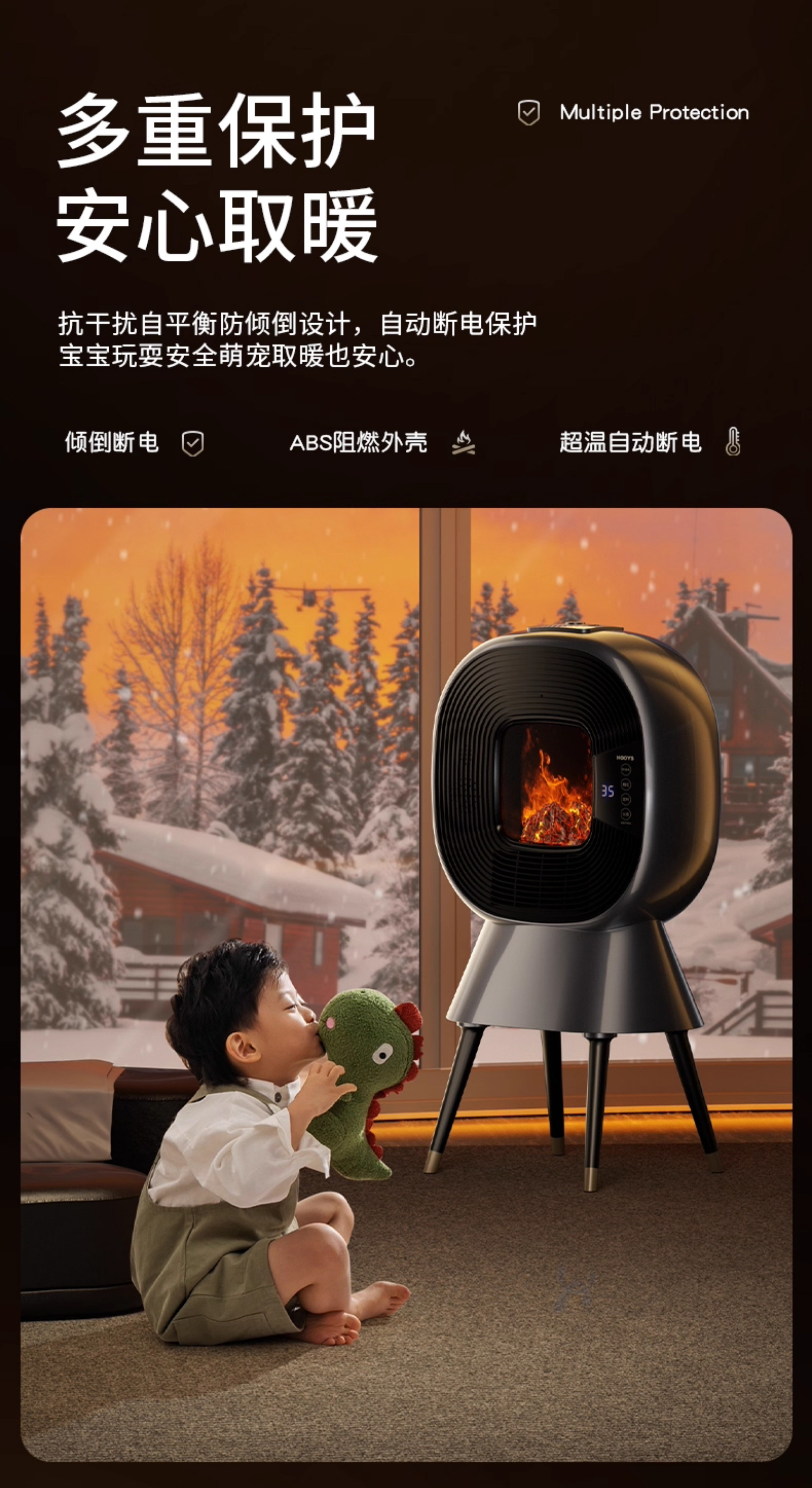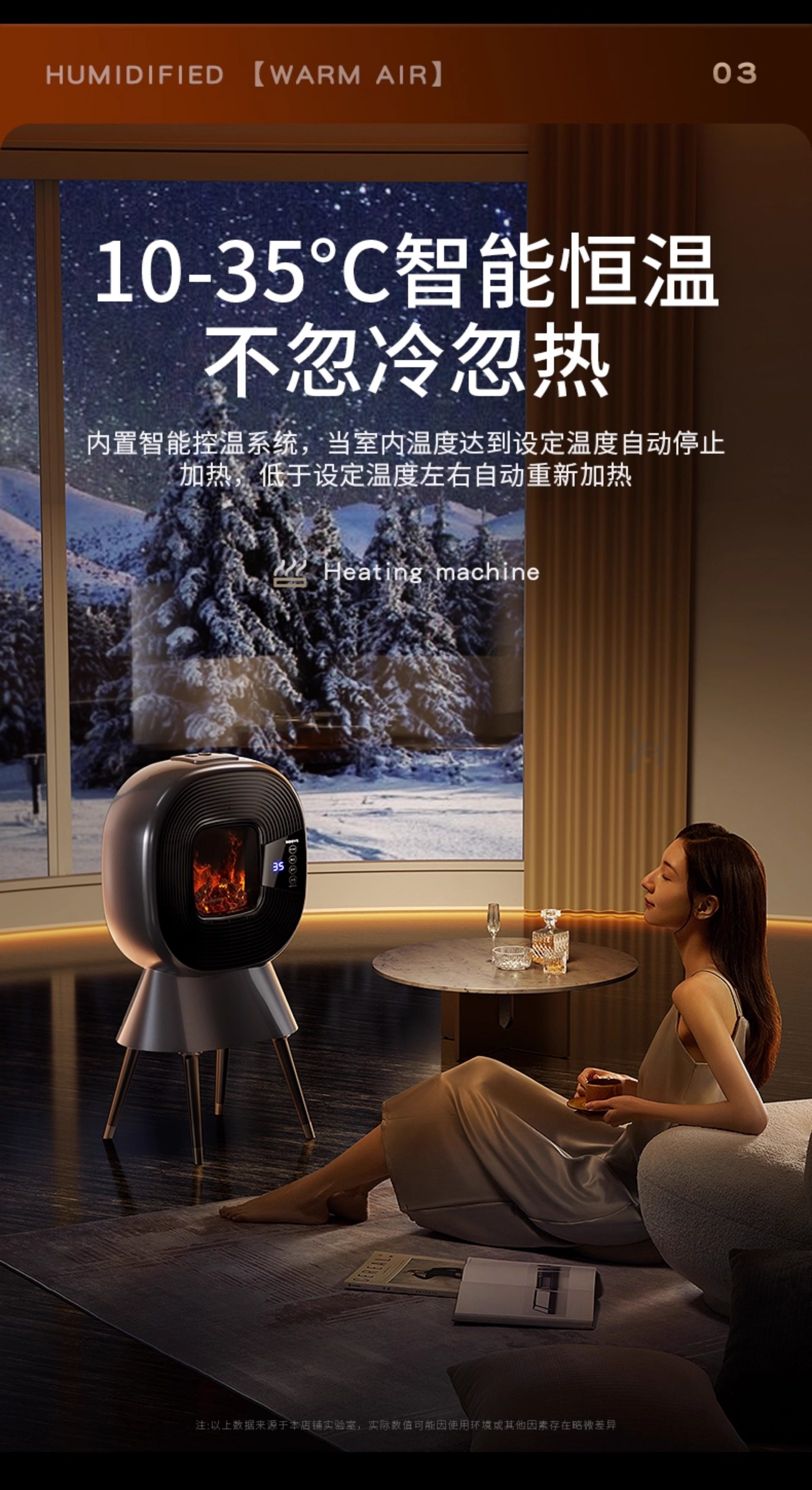 Fireplace Heater, Home Heater, Humidifier, All-In-One, Whole House, Living Room, Large Area, Energy-Saving, Simulated Flame