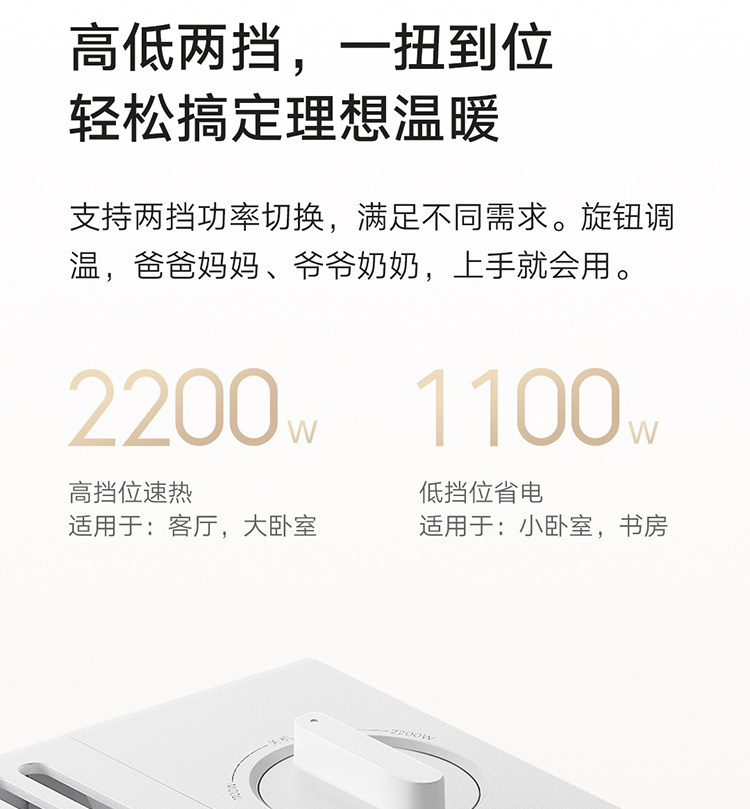 Mijia Baseboard Electric Heater 2, Small Household Electric Heater for Office and Dormitory, Energy-Saving Heating with Two Temperature Settings