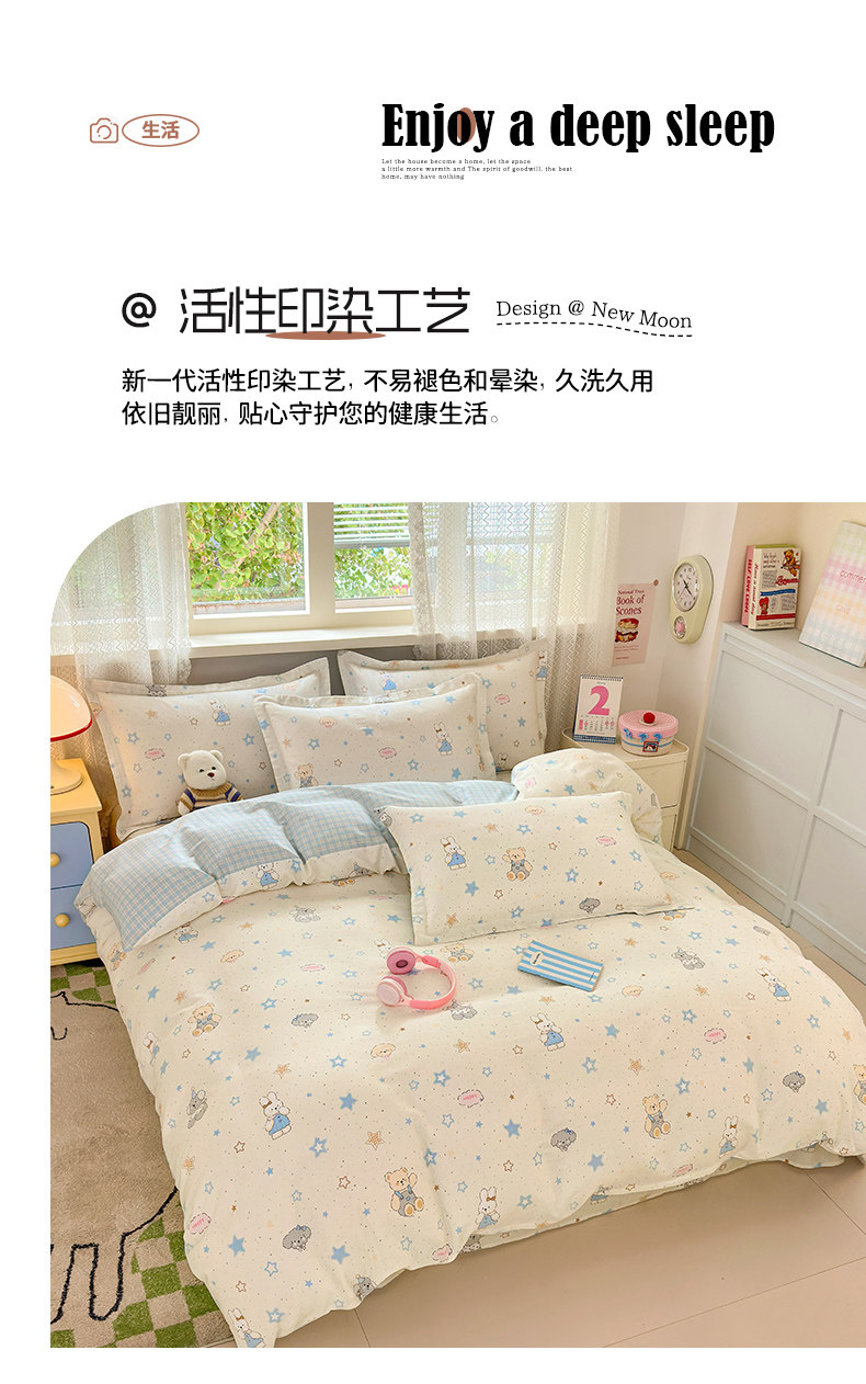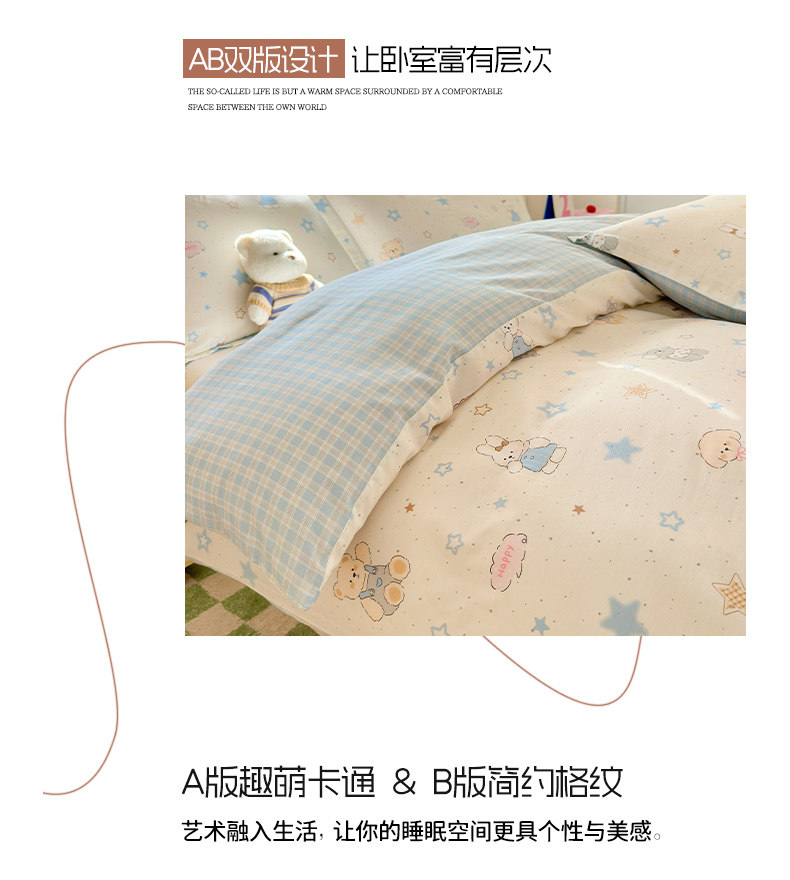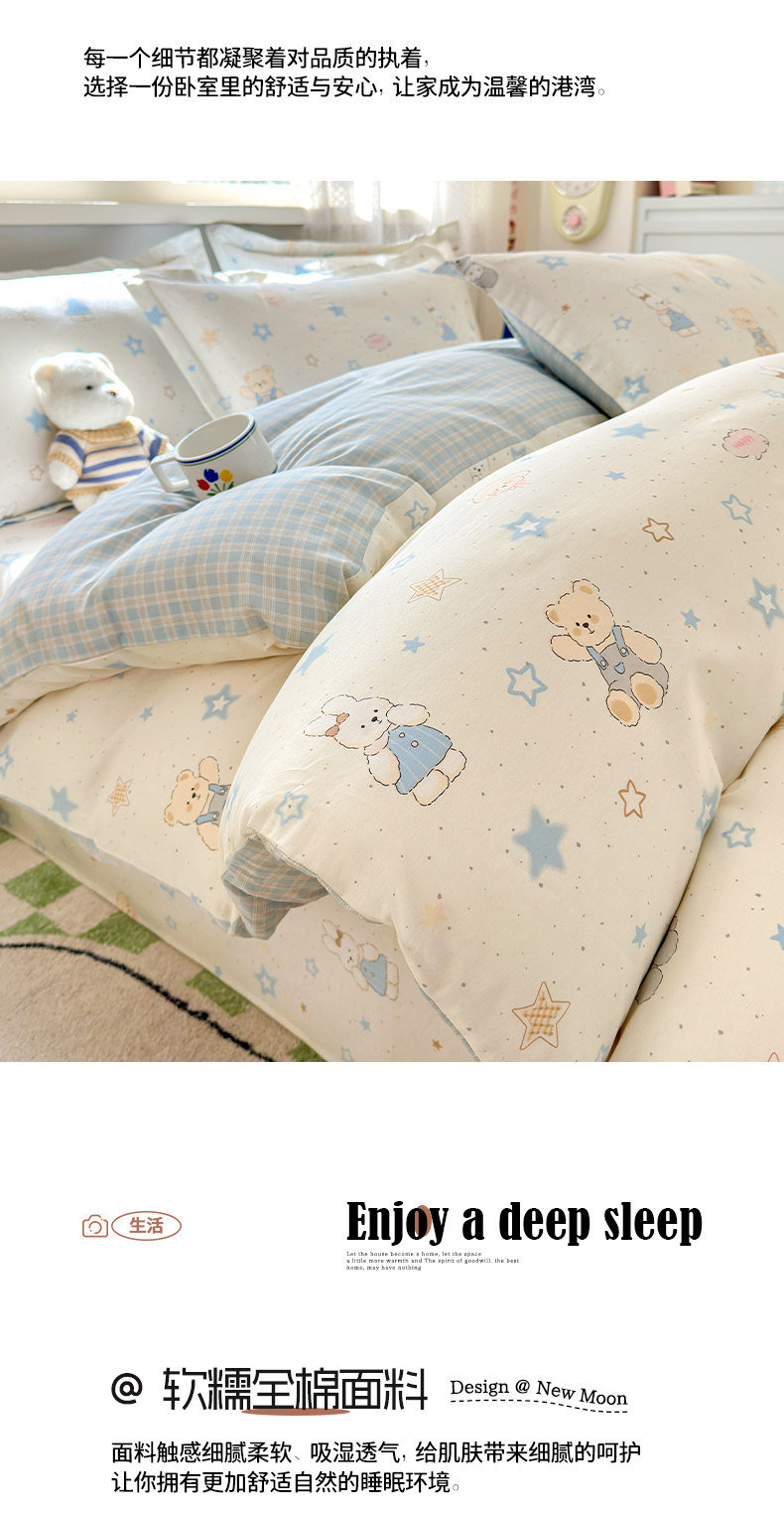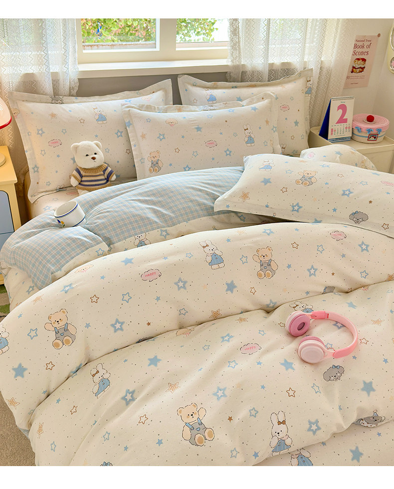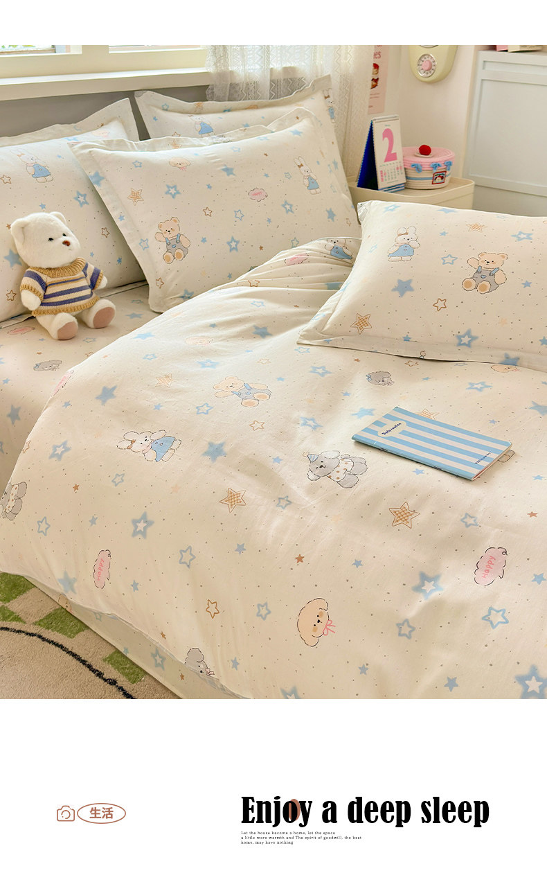 Class a All-Cotton Four-Piece Bedding Set, Pure Cotton 2025 New Cartoon Style Student Dormitory Bedding, Bed Sheet and Duvet Cover Three-Piece Set 4