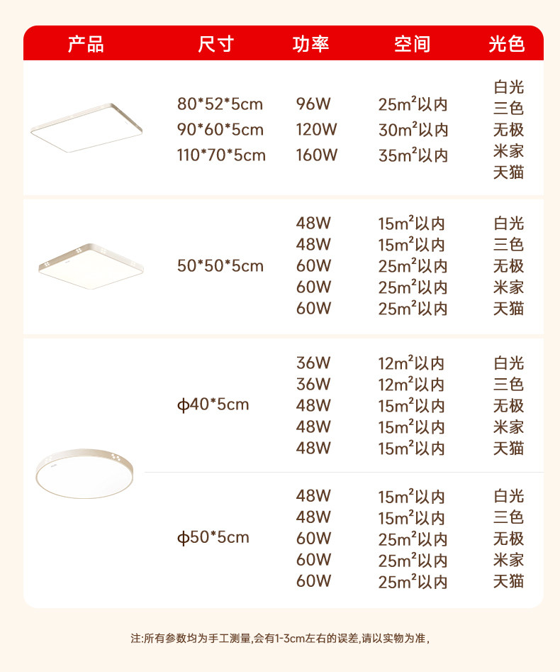 | Color Classification | [National Brand, Eight-Year Warranty],[Including Installation and Disassembly] 40 Yuan Ying White-36W Single Color White Light [Ra98 Eye Protection/Upgraded Version],[Including Installation and Disassembly] 40 Yuan Ying White-36W Three-Color Dimming [Ra98 Eye Protection/Upgraded Version],[Including Installation and Disassembly] 40 Yuan Ying White-48W Stepless Dimming [Ra98 Eye Protection/Upgraded Version],[Includes Installation & Removal] 40 Yuan Crystal White - 48W Tmall Genie [Ra98 Eye Protection/Upgraded Version],[Including Installation and Disassembly] 50 Yuan Ying White-48W Monochrome White Light [Ra98 Eye Protection/Upgraded Version],[Including Installation and Disassembly] 50 Yuan Ying White-48W Three-Color Dimming [Ra98 Eye Protection/Upgraded Version],[Including Installation and Disassembly] 50 Yuan Ying White-60W Stepless Dimming [Ra98 Eye Protection/Upgraded Version],[Includes Installation & Removal] 50 Yuan Crystal White - 60W Tmall Genie [Ra98 Eye Protection/Upgraded Version],[Including Installation and Disassembly] 50 Square Meters of White-48W Monochrome White Light [Ra98 Eye Protection/Upgraded Version],[Including Installation and Disassembly] 50 Square Meters of White-48W Three-Color Dimming [Ra98 Eye Protection/Upgraded Version],[Including Installation and Disassembly] 50 Square Meters White-60W Stepless Dimming [Ra98 Eye Protection/Upgraded Version],[Including Installation and Disassembly] 50 Fangyingbai-60W Tmall Elf [Ra98 Eye Protection/Upgraded Version],[Includes Installation & Removal] Small Living Room 80cm - Single Color White Light [Ra98 Eye Protection/Upgraded Version],[Includes Installation & Removal] 80cm Tri-Color Dimmable Led Light for Small Living Rooms [Ra98 Eye Protection/Upgraded Version],[Includes Installation & Removal] 80cm Dimmable Led Ceiling Light for Small Living Rooms [Ra98 Eye Protection/Upgraded Version],[Includes Installation & Removal] Small Living Room 80cm - Tmall Genie [Ra98 Eye Protection/Upgraded Version],[Includes Installation & Removal] Large Living Room 90cm - Single Color White Light [Ra98 Eye Protection/Upgraded Version],[Includes Installation & Removal] 90cm Tri-Color Dimmable Led Ceiling Light for Large Living Rooms [Ra98 Eye Protection/Upgraded Version],[Includes Installation & Removal] Large Living Room 90cm - Stepless Dimming [Ra98 Eye Protection/Upgraded Version],[Includes Installation & Removal] Large Living Room 90cm - Tmall Genie [Ra98 Eye Protection/Upgraded Version],[Including Installation and Disassembly] Luxurious Living Room 110cm - Single Color White Light [Ra98 Eye Protection/Upgraded Version],[Including Installation and Disassembly] Luxurious Living Room 110Cm-Three-Color Dimming [Ra98 Eye Protection/Upgraded Version],[Includes Installation & Removal] Luxury Living Room 110cm - Stepless Dimming [Ra98 Eye Protection/Upgraded Version],[Including Installation and Disassembly] Luxurious Living Room 110Cm-Tmall Elf [Ra98 Eye Protection/Upgraded Version] |