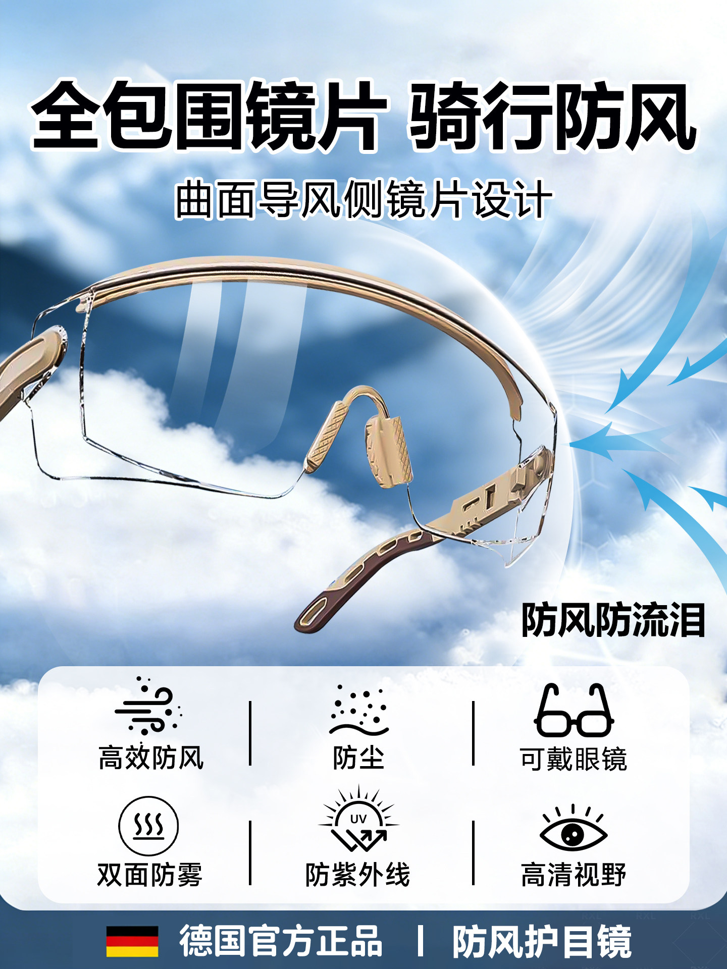 German Windproof Glasses, Goggles, Dust-Proof, Anti-Fog, Cycling, Windproof, Electric Vehicle Protection, Wearable Glasses for Men and Women