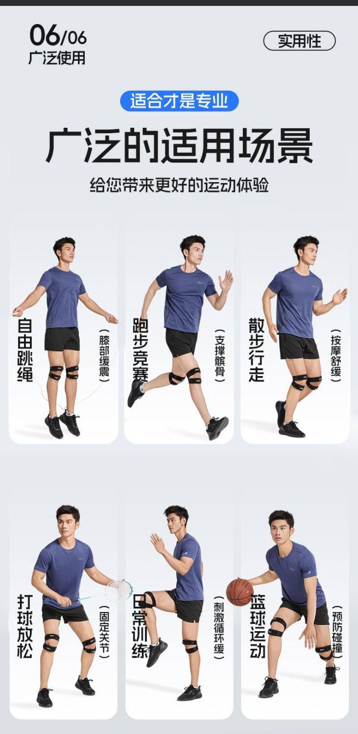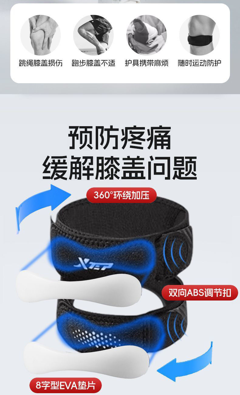 Xtep Patella Brace Knee Support Professional Running Men's and Women's Meniscus Joint Injury Fixation Knee Basketball Sports Protective Gear