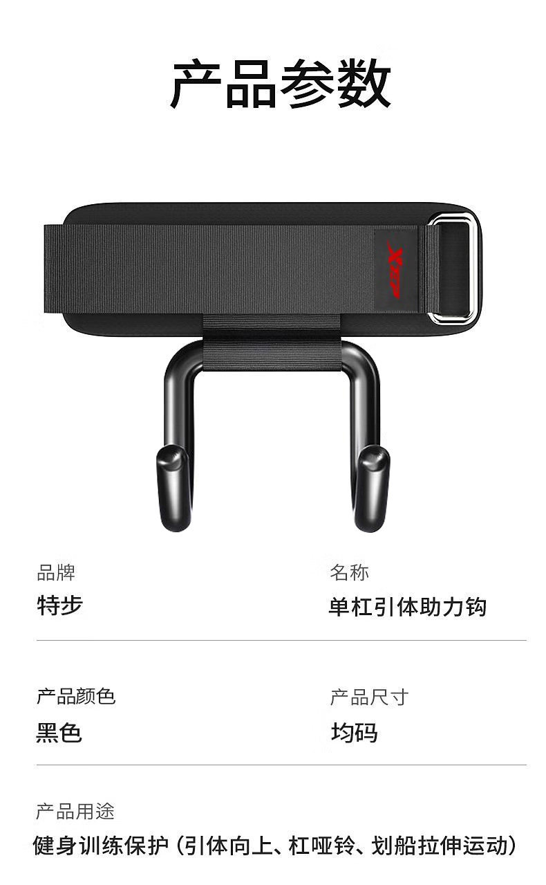 Xtep Pull-Up Assist Hook Fitness Wrist Guard Anti-Slip Pull-Up Bar Auxiliary Device Men's Deadlift Grip Hook