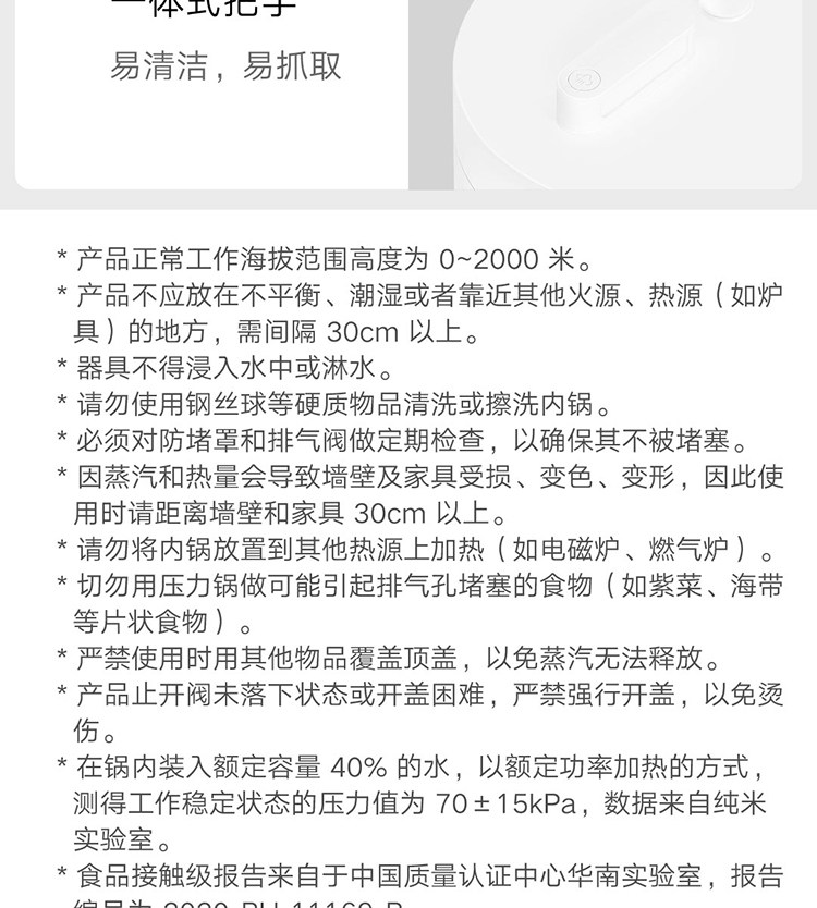 | Pressure Cooker Mouth Specifications | 20cm and Below |