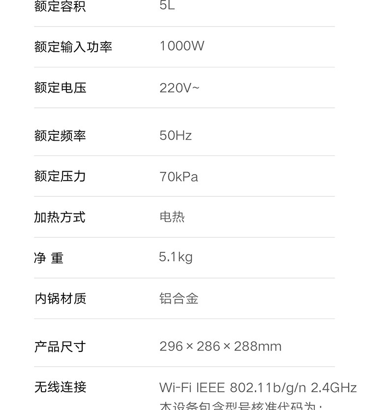 | Model | Mijia Smart Electric Pressure Cooker 5L |