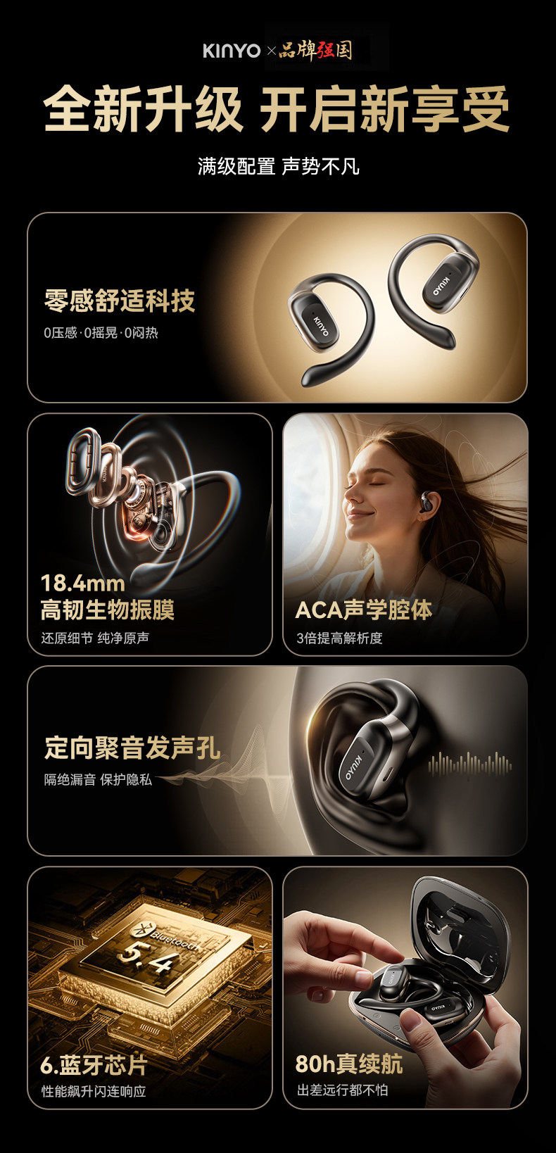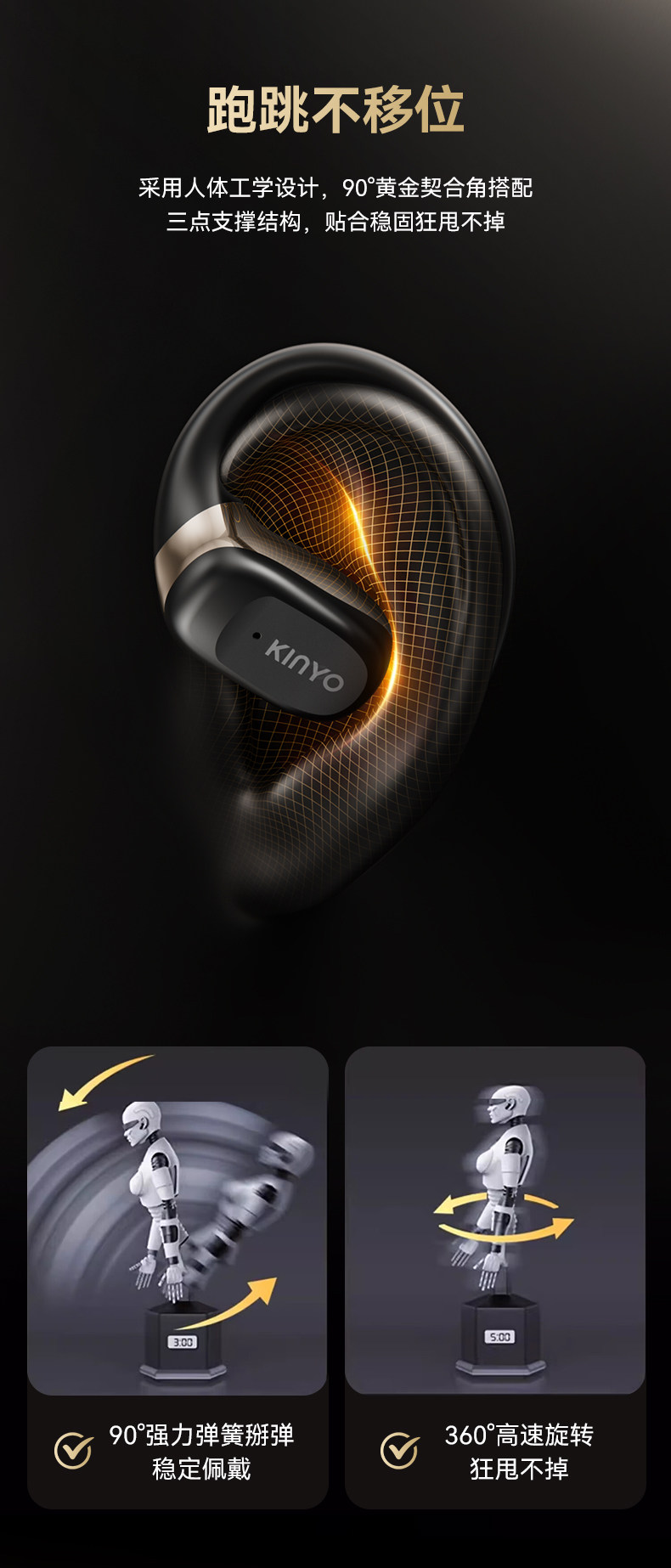 Jinyun S07 Ai Bluetooth Earphones, Over-Ear Type, 2026 New Model, Air Bone Conduction, Wireless, for Sports and Running, Ultra-Long Battery Life