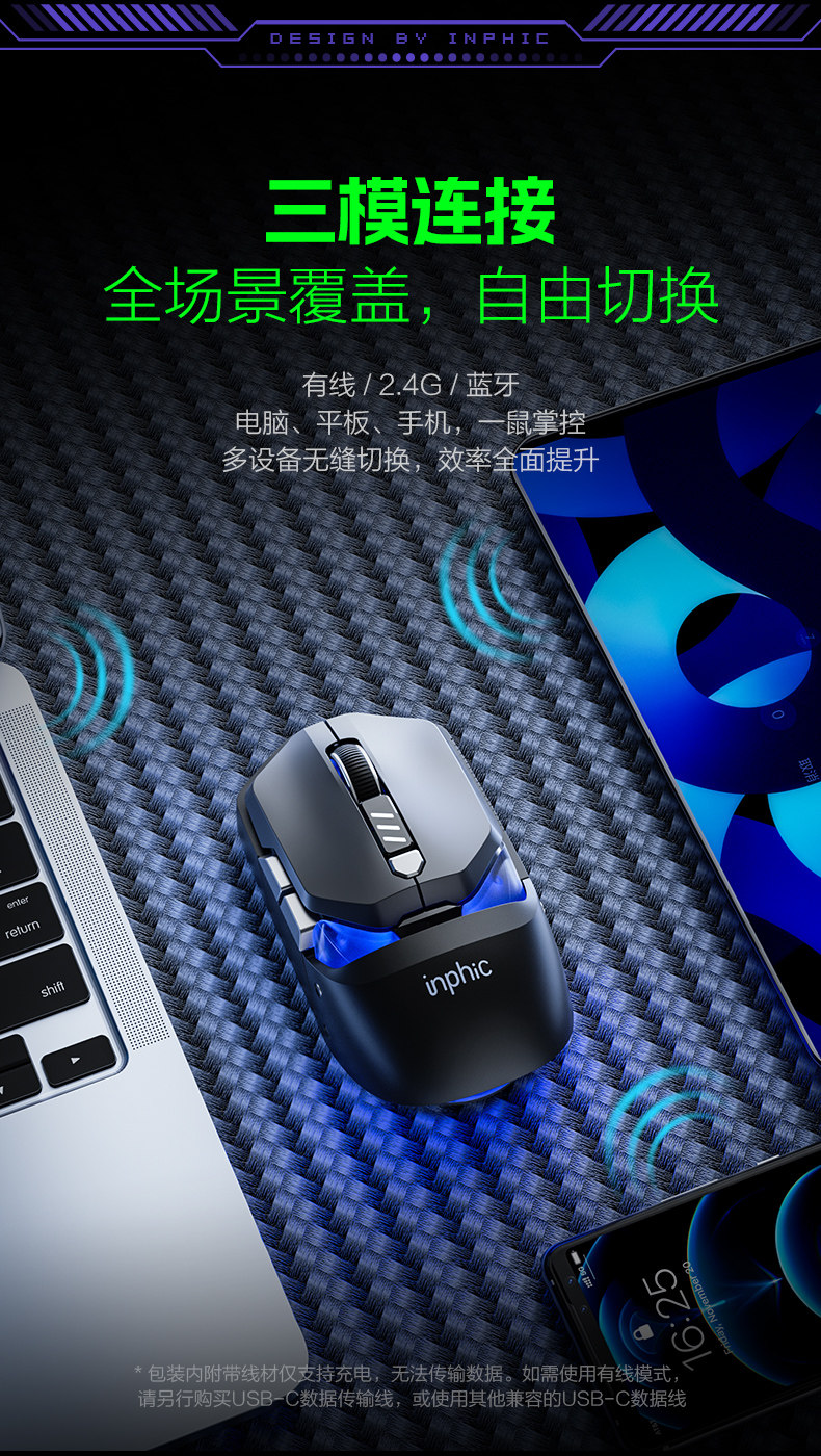 Inphic Yuanchuang Star Tunnel Wireless Mouse Bluetooth Wired Three-Mode Gaming Macro E-Sports Dedicated Laptop Desktop
