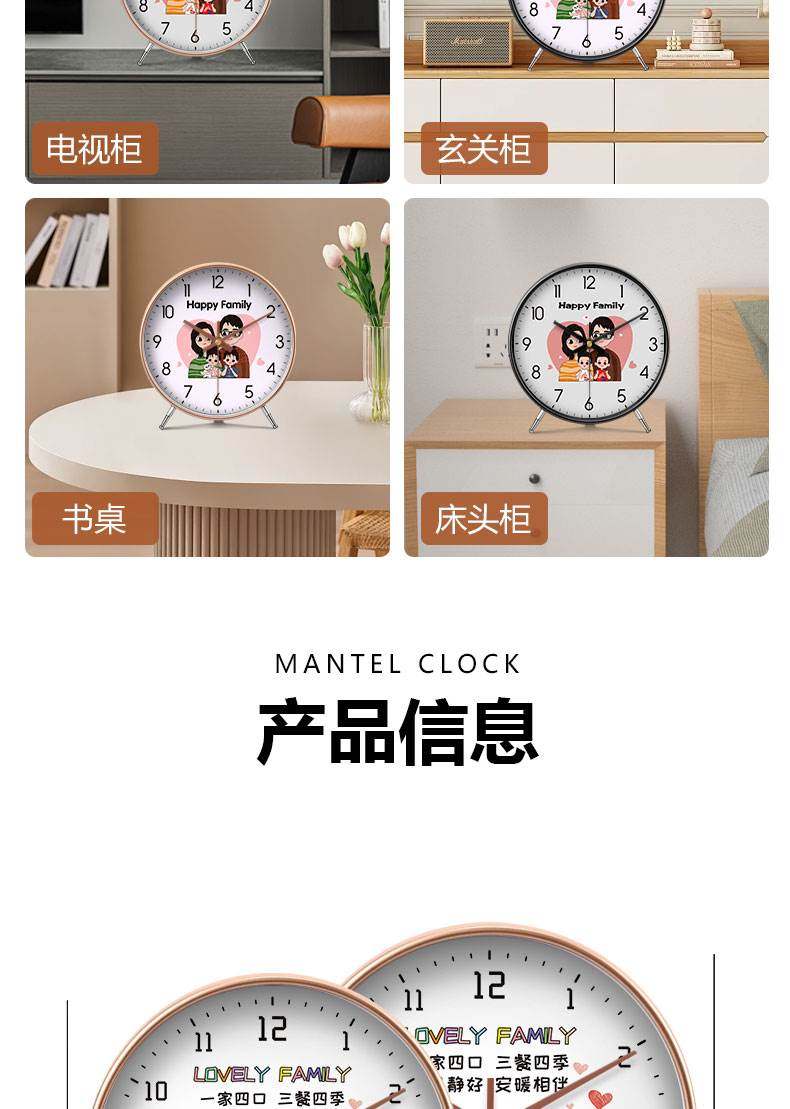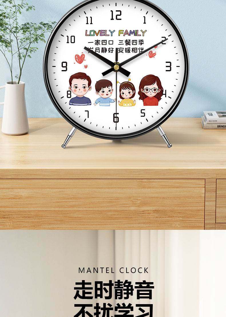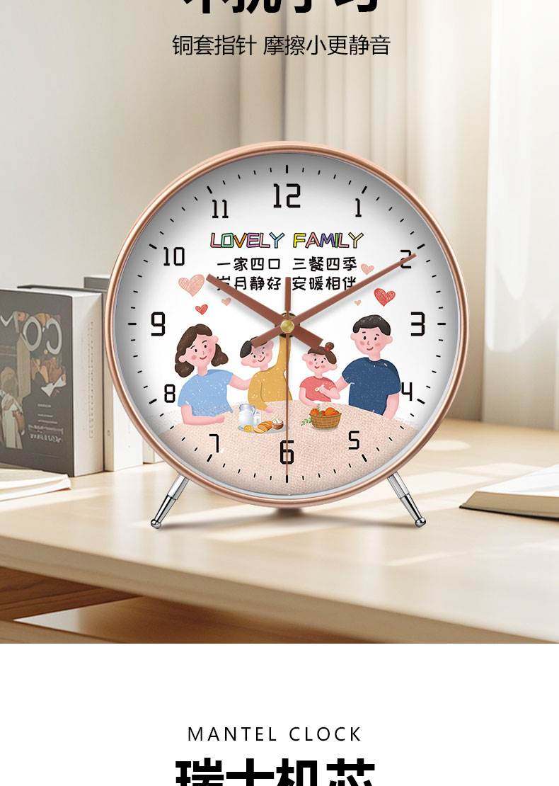 Clocks, Table Clocks, a Family of Three, Cartoon Style, Living Room, Warm Home, High-End Decoration, Cozy Display, Desk Clock, Tabletop Clock