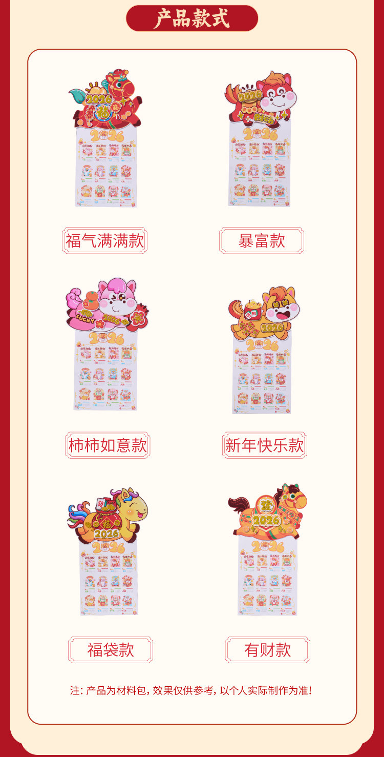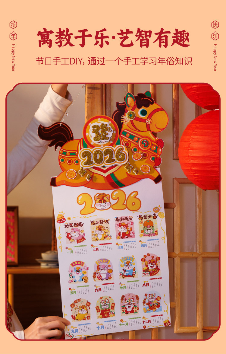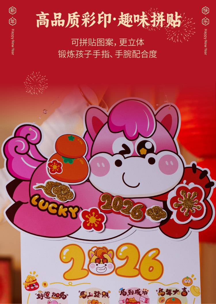 New Year, Spring Festival, New Year's Day, Year of the Horse, Graffiti Calendar, DIY Handmade Children's Craft Material Kit, Kindergarten Creative Art