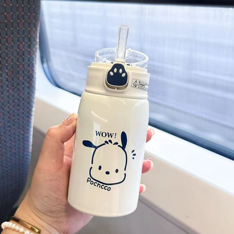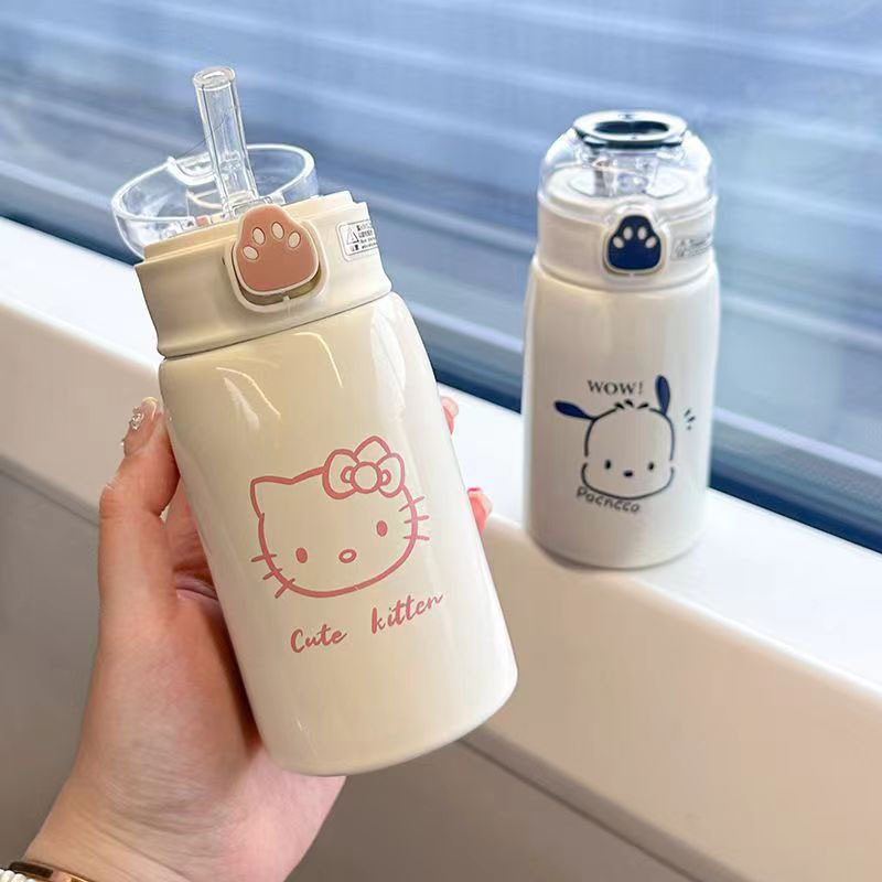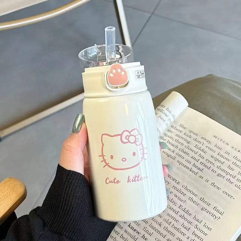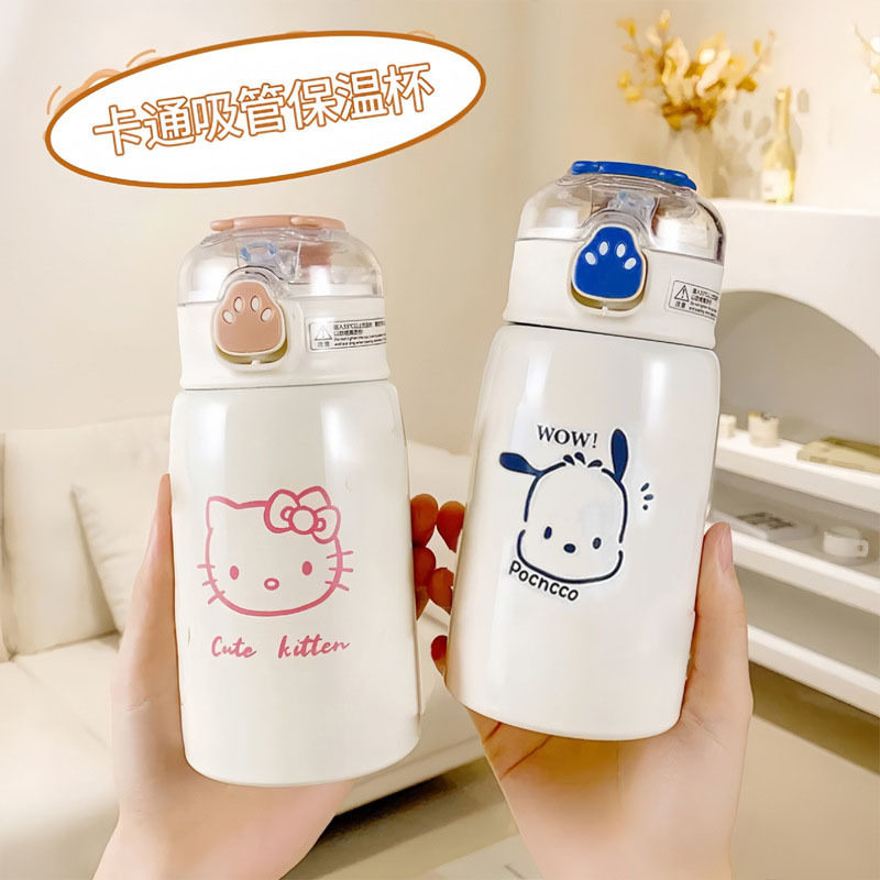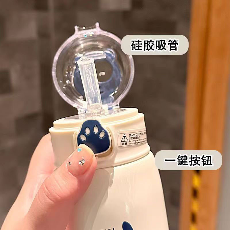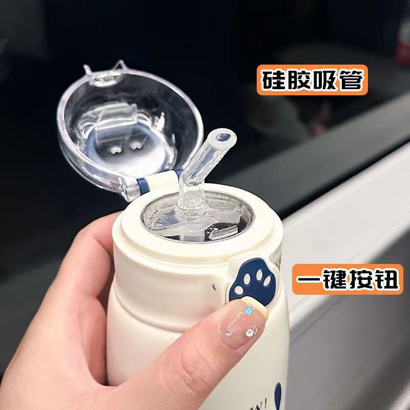 Luonuo Cute Cat Paw Straw Insulated Cup Large Capacity Dual-Drink Children's Student Water Bottle Official Genuine Product