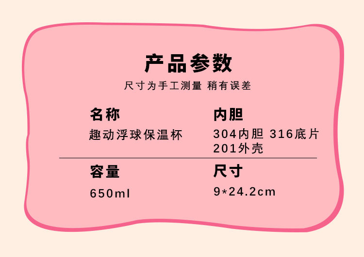 | Color Classification | [Black Pink] 650ml Third Generation Float Thermos Cup,[Powder Blue] 650ml Third Generation Float Thermos Cup,[Little White Dog] 650ml First Generation Float Thermos Cup,[Blue and Yellow] 650ml Third Generation Floating Ball Thermos Cup,ãLittle Pink Rabbitã650Ml First Generation Floating Ball Thermos,ãLittle Brown Bearã650Ml First Generation Floating Ball Thermos,[Little Black Cat] 650ml First Generation Float Thermos Cup,[Red] 650ml Third Generation Float Thermos Cup,650ml Second Generation Float Thermos Cup,650Mll Second Generation Float Thermos Cup,650ml Fourth Generation Float Thermos Cup |