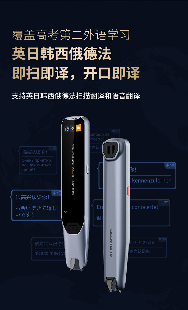 Alpha Egg Dictionary Pen T20 High-Speed Translation Pen English Reading Pen Elementary, Middle, and High School Electronic Dictionary Scanning Pen Official Flagship Online Store T30Ultra Chinese-Russian-Korean-Japanese-German-French Translation