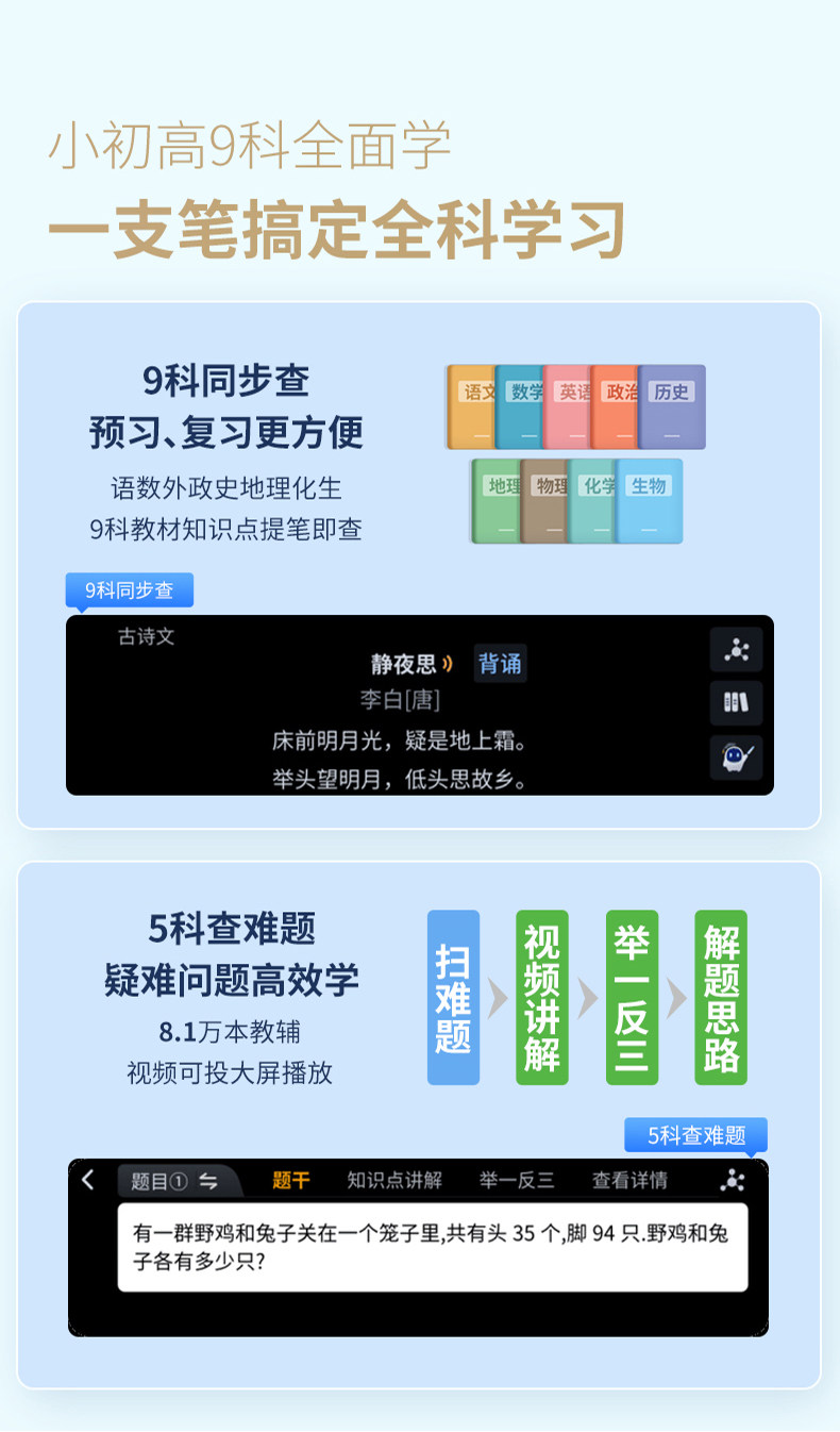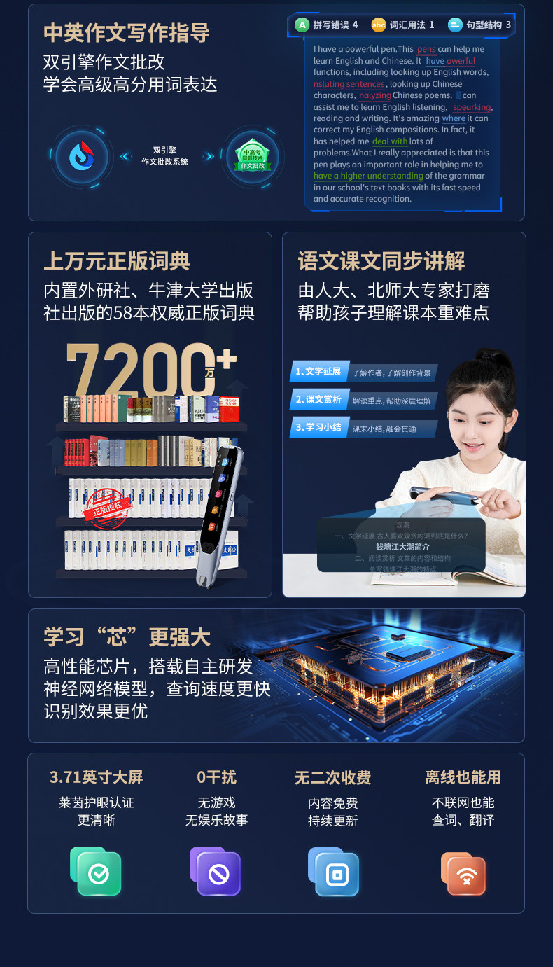 | Color Classification | [Dictionary Pen T20-64G + Storage Box] + Primary, Middle and High School Learning,[Dictionary Pen T20-64G + Charging Head + Storage Box] + Primary, Middle and High School Learning,[Dictionary Pen T20-64G + Bluetooth Student Headphones] + Primary, Middle and High School Learning,[Dictionary Pen T30Ultra-128G] + Primary, Junior and Senior High School Learning |