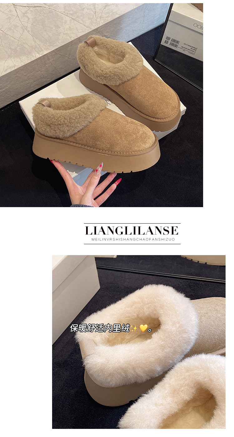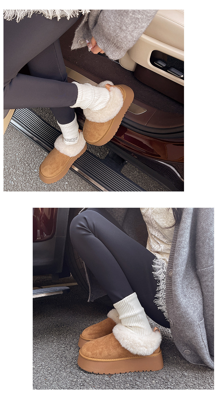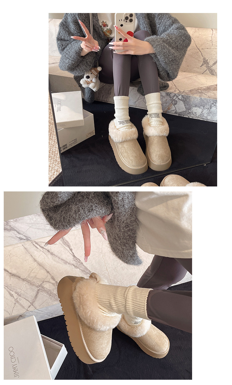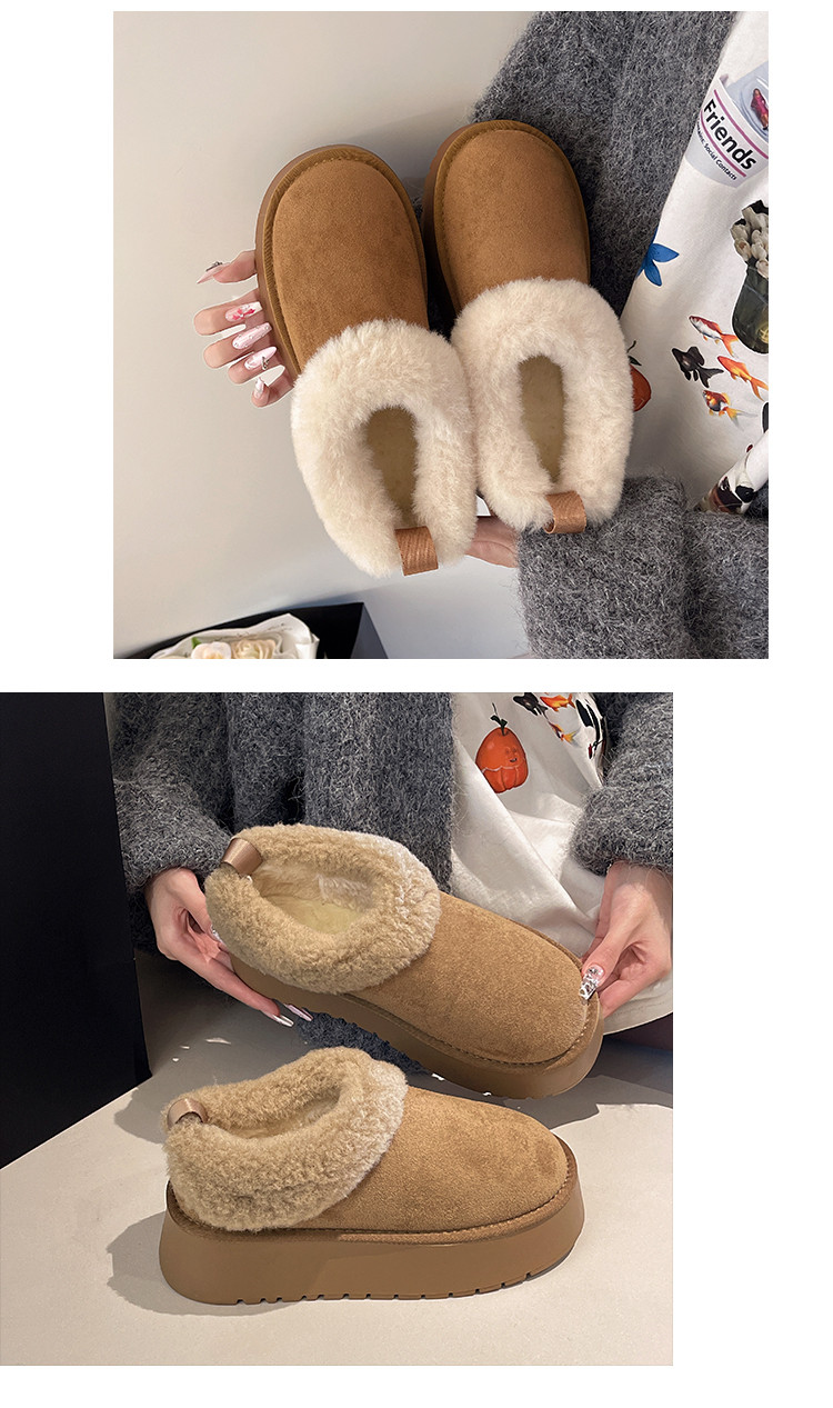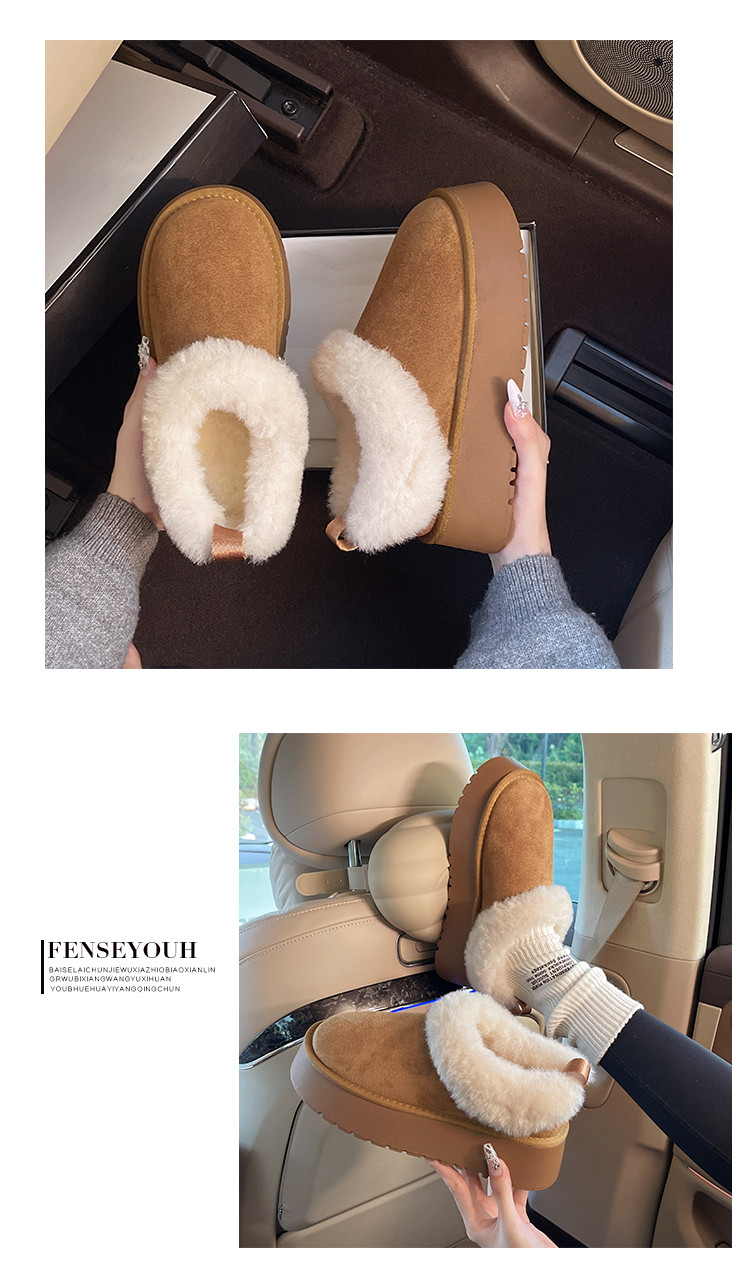 Thick-Soled Slip-On Furry Snow Boots for Women, 2025 Winter New Style, Fleece-Lined and Thickened, Large Cotton Shoes for Northeast, Size 34