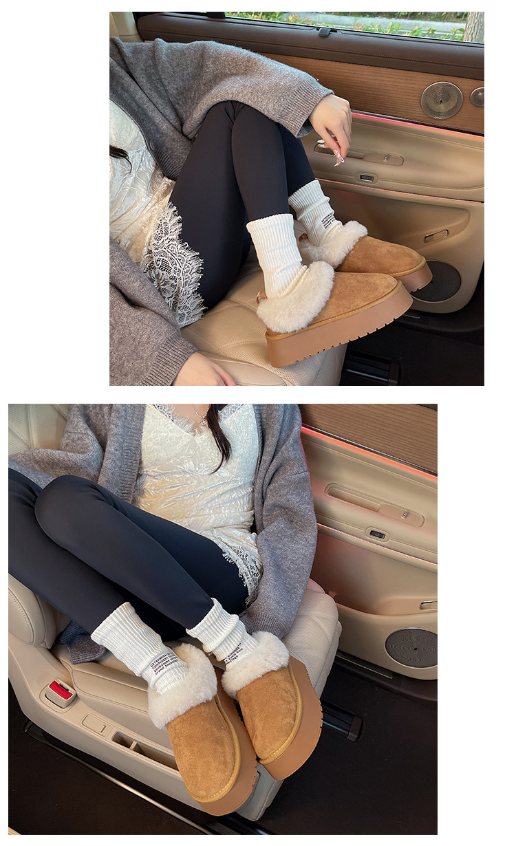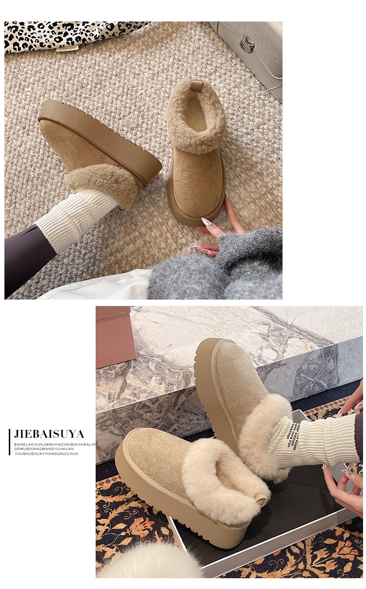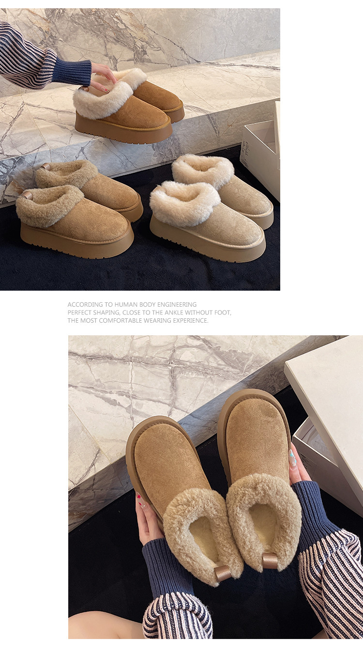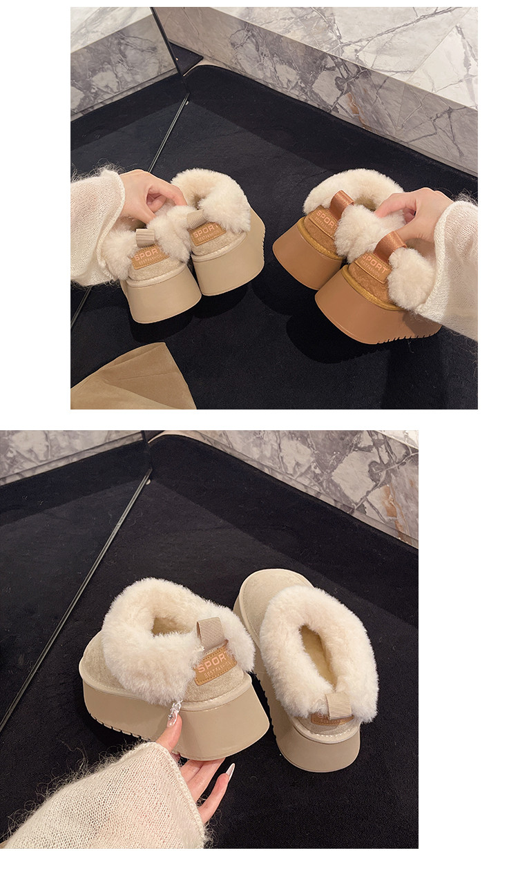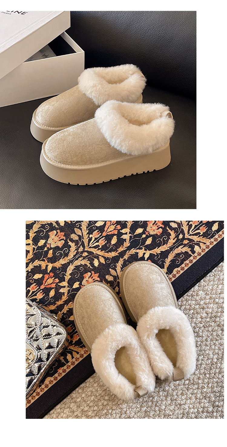Thick-Soled Slip-On Furry Snow Boots for Women, 2025 Winter New Style, Fleece-Lined and Thickened, Large Cotton Shoes for Northeast, Size 34