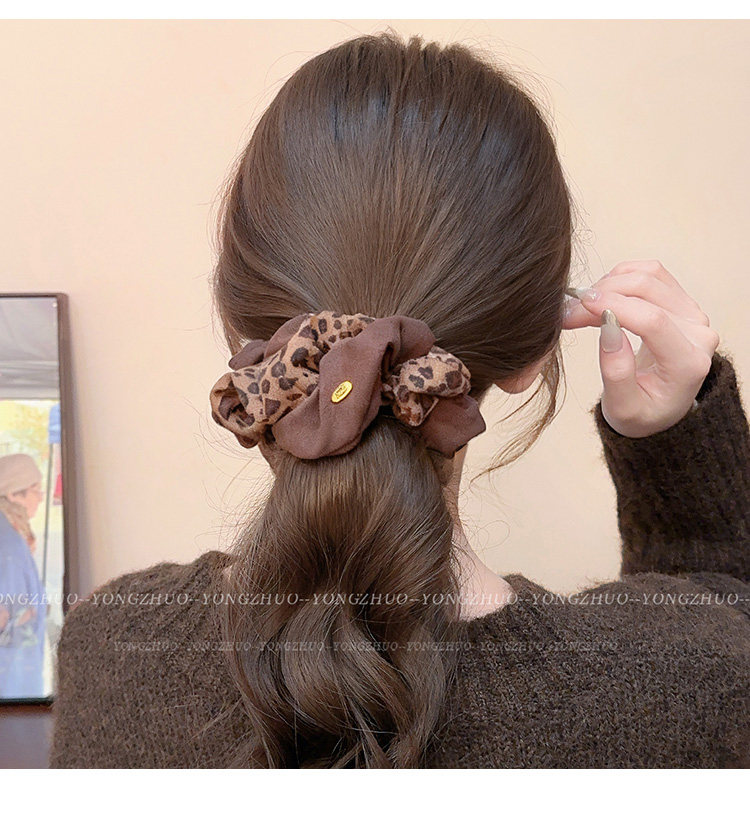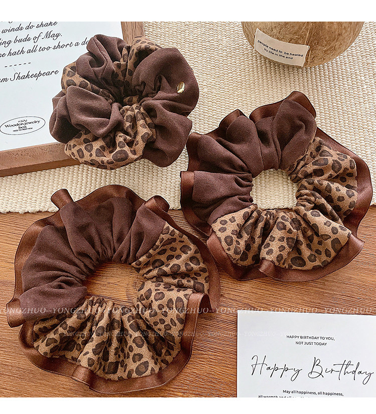 Vintage Leopard Print Scrunchie for Women, Autumn and Winter, High-End Style, Suitable for Bun or Ponytail, Versatile Hair Tie for Going Out, Hair Accessory