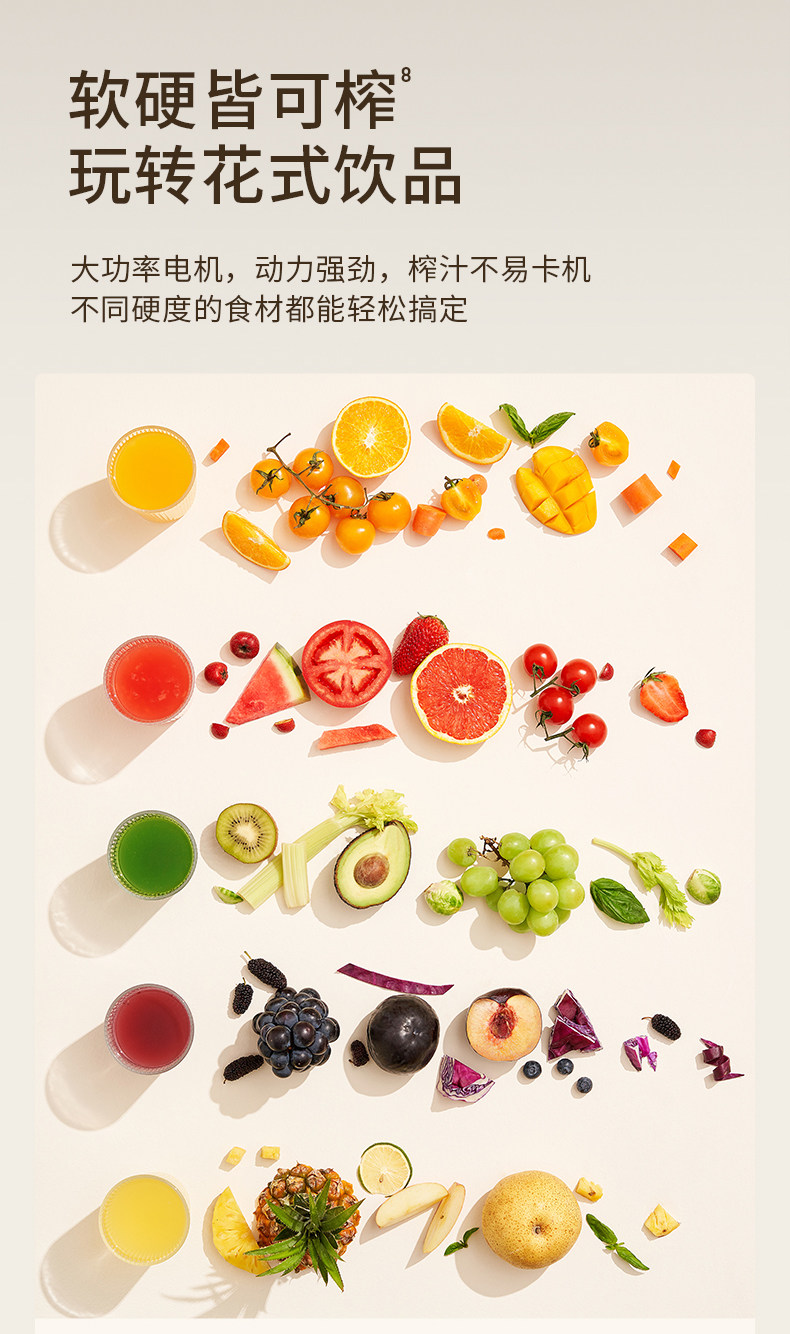 | List of Accessories | Pushing Rod, Hopper Flip Cover, Hopper Assembly, Screw Assembly, Juice Net, Juice Tray Assembly, Main Unit, Fruit Residue Cup, Juice Cup |