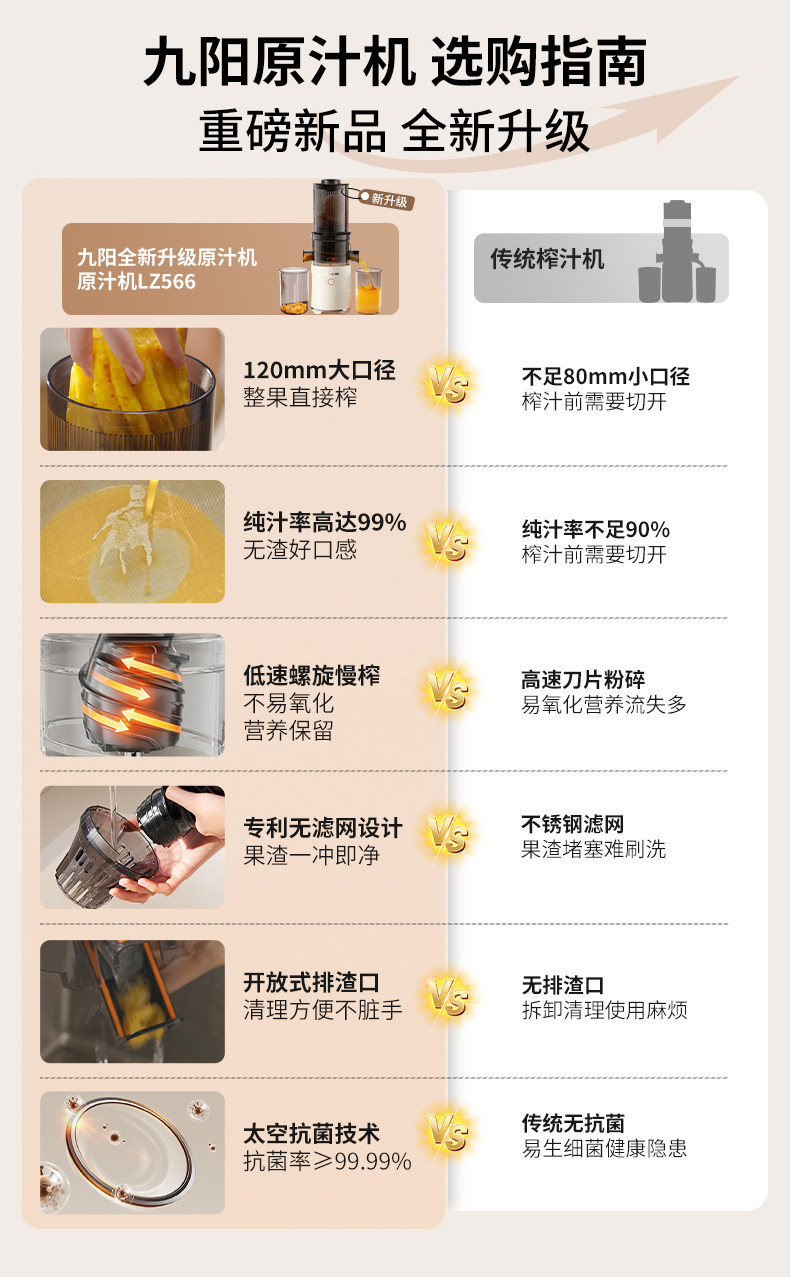 Joyoung Three-Stage Juicer, Original Juice Machine for Home Use, Fully Automatic Pulp and Juice Separation, Juice Processor, Official Genuine New Model