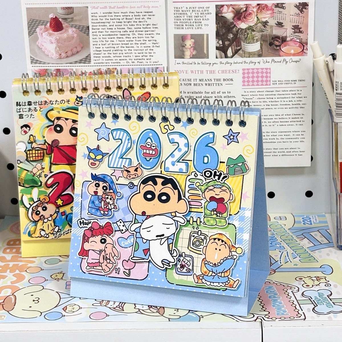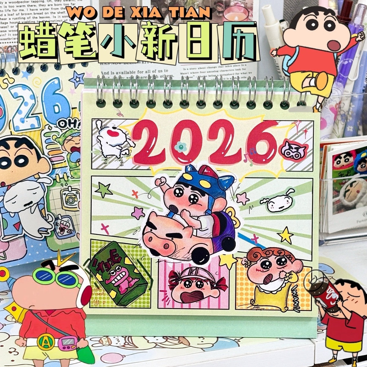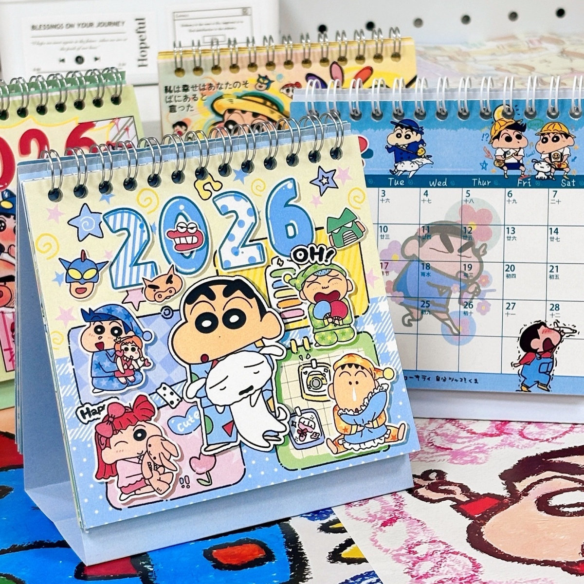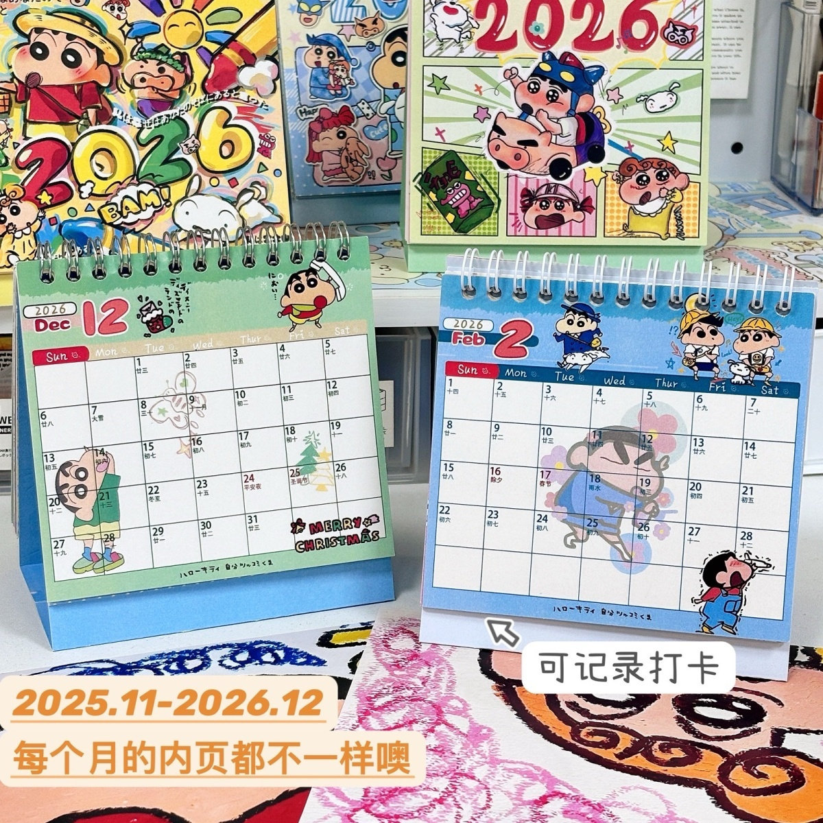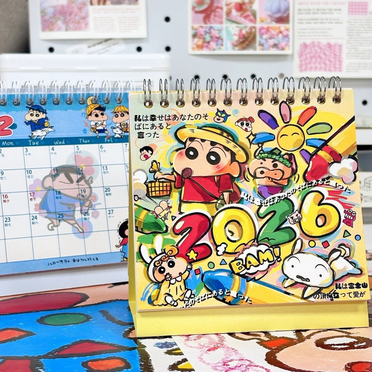 Crayon Shin-Chan Calendar 2026 New Cartoon Graffiti Desk Calendar Cinnamoroll Cute High-Quality Student Gift for Girls