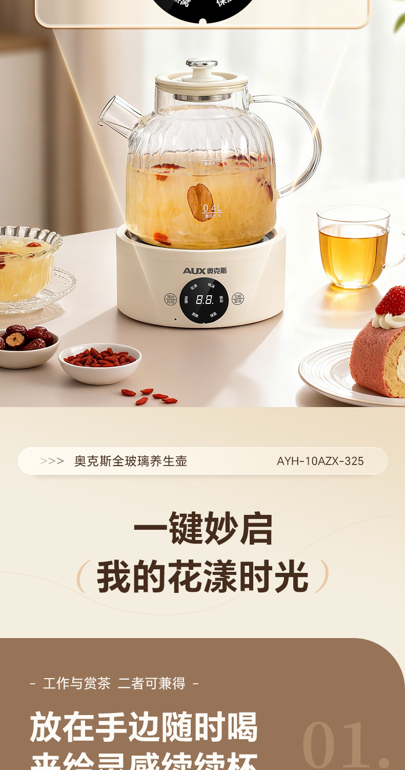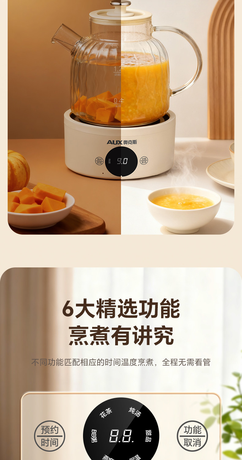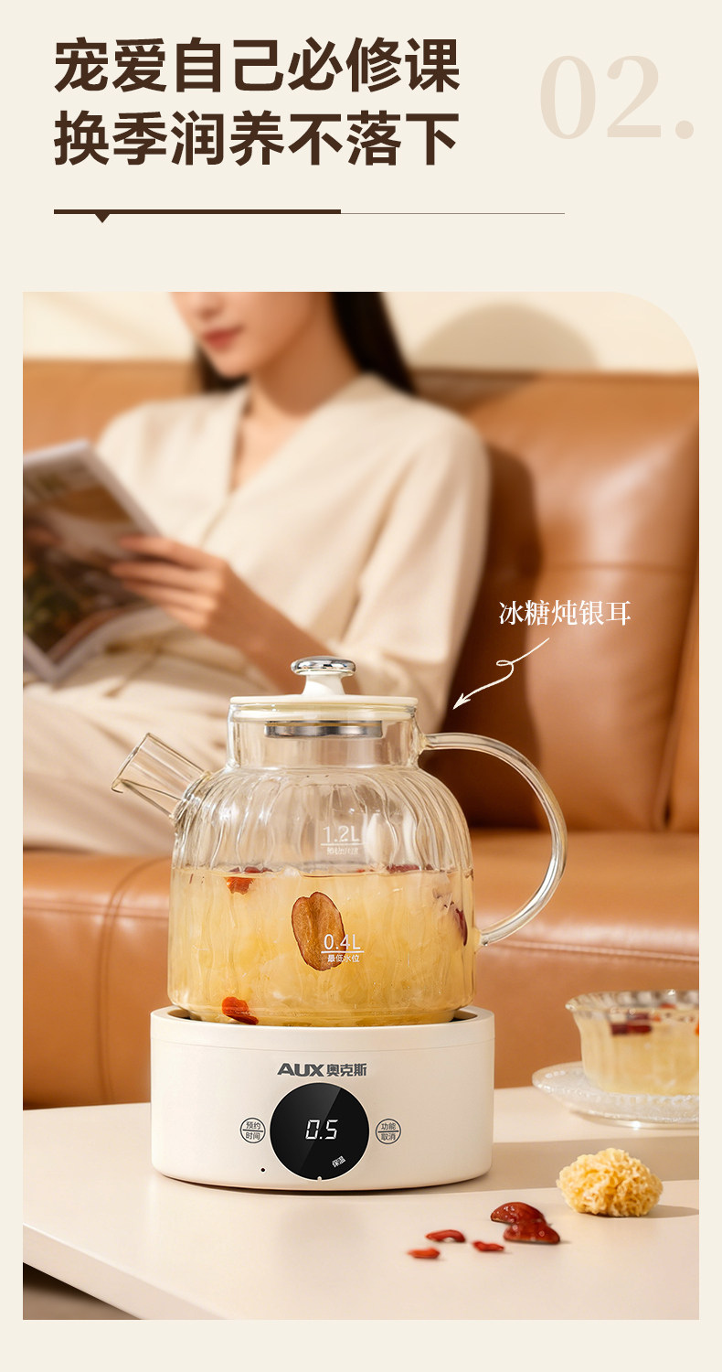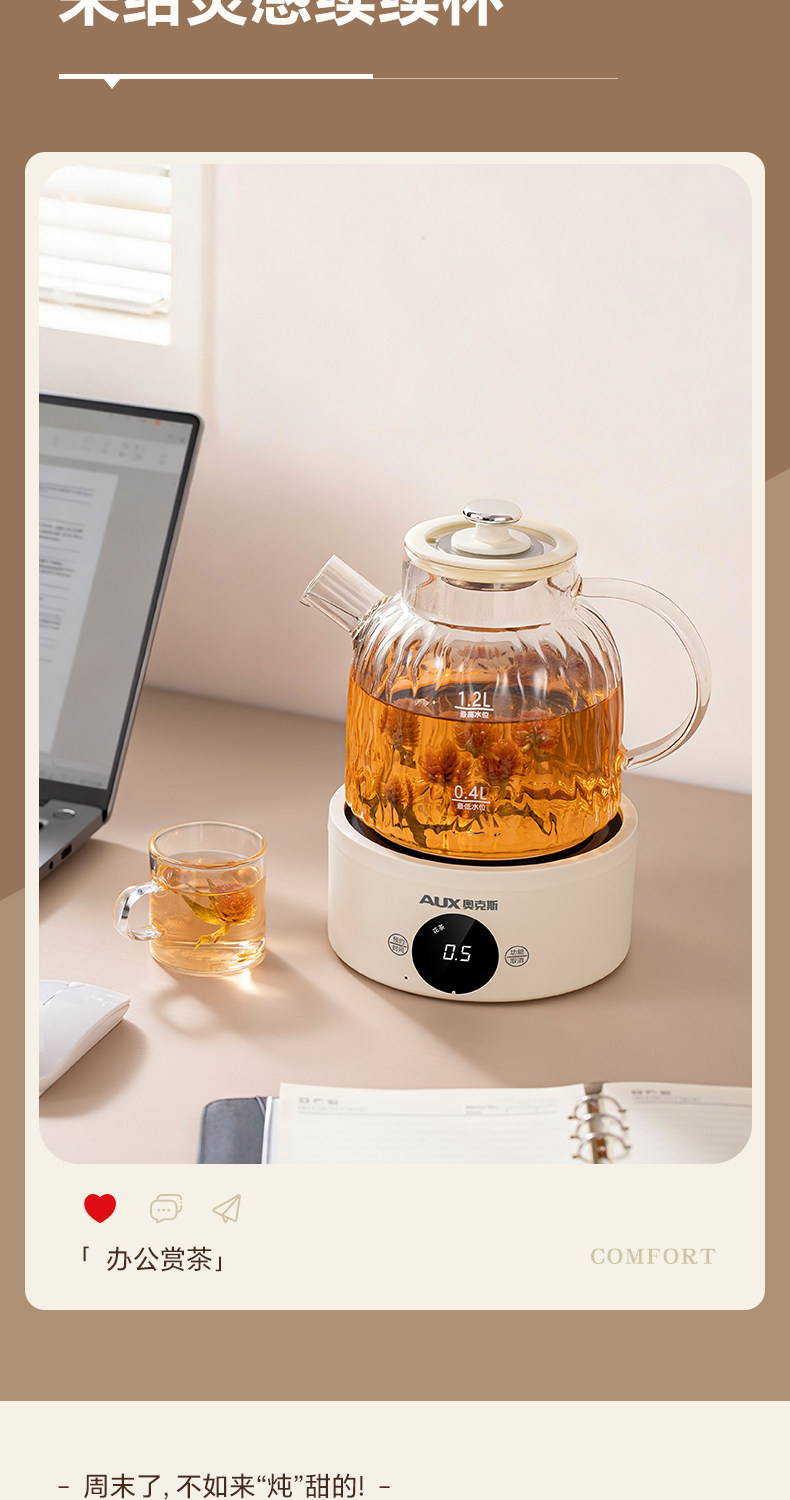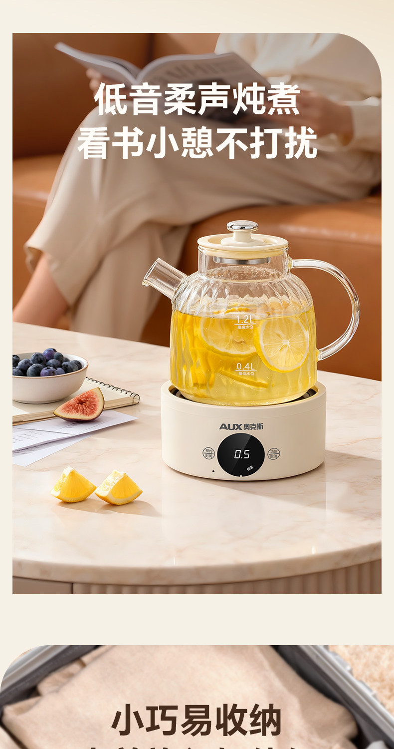 Oaks All-Glass Health Pot with Constant Temperature, Small Multi-Functional Home Stewing and Boiling Integrated Hot Water Kettle for Office Use