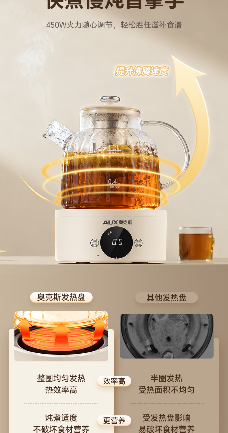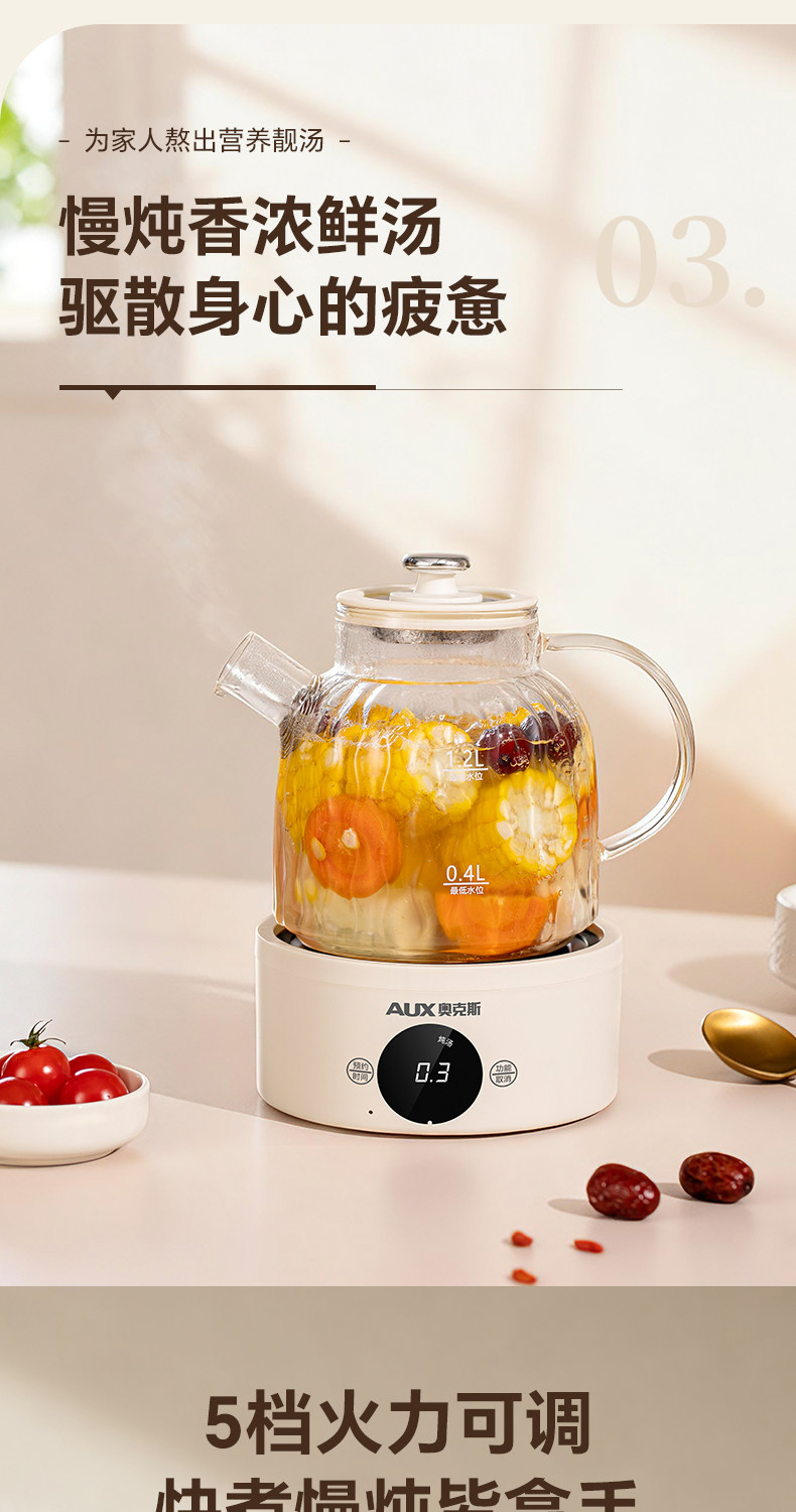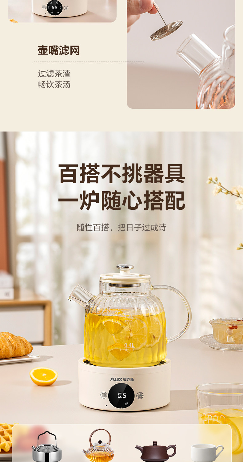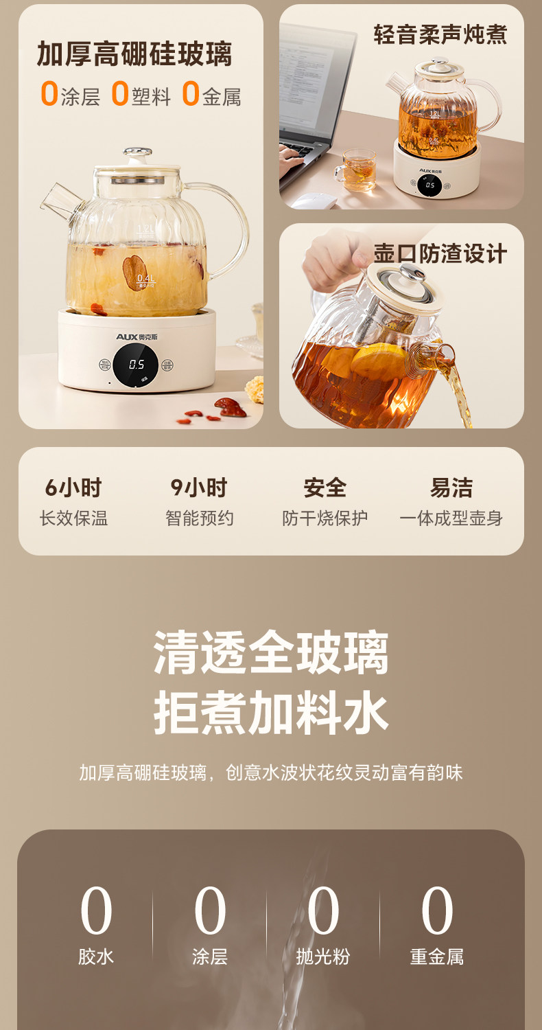 Oaks All-Glass Health Pot with Constant Temperature, Small Multi-Functional Home Stewing and Boiling Integrated Hot Water Kettle for Office Use