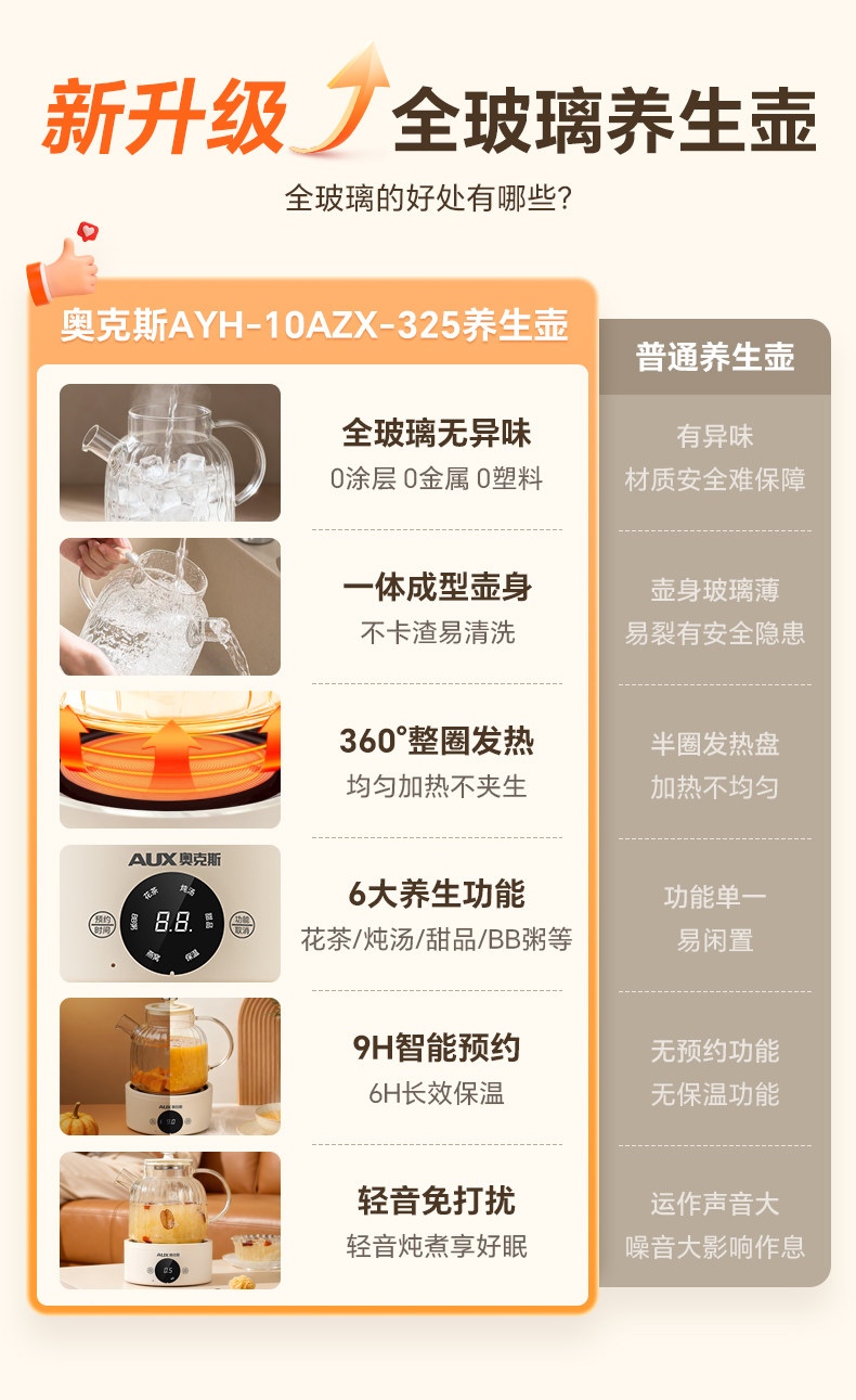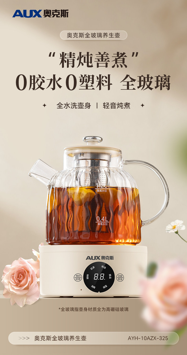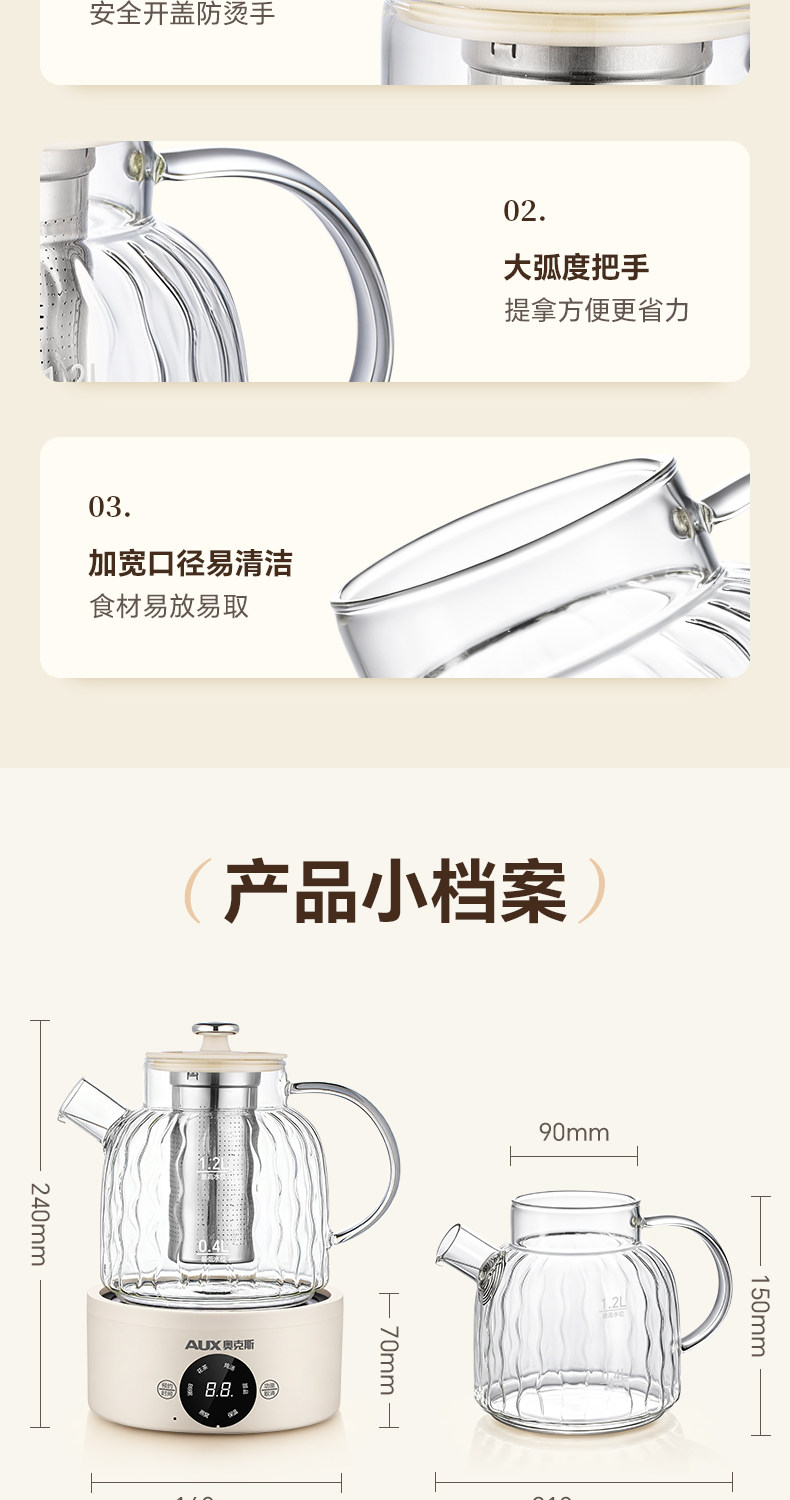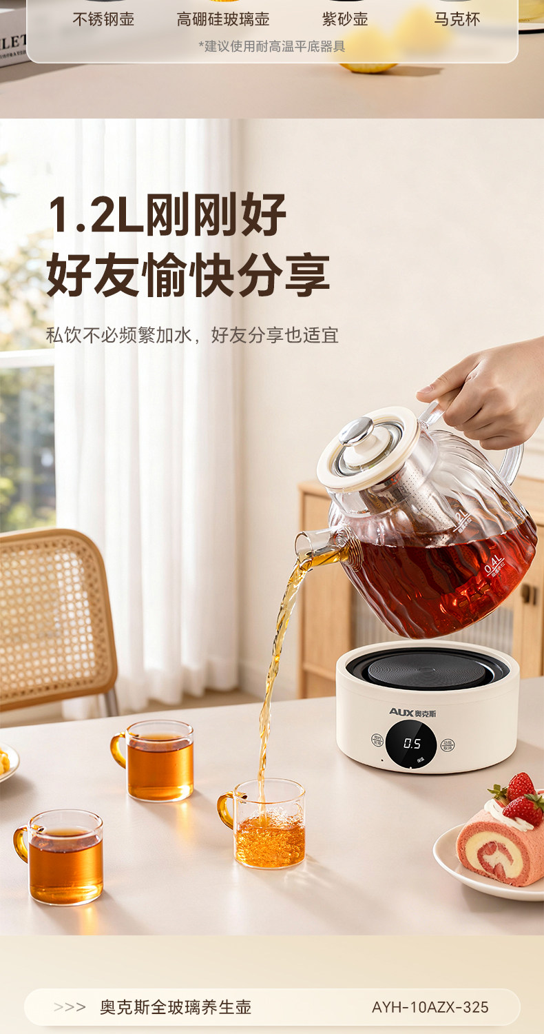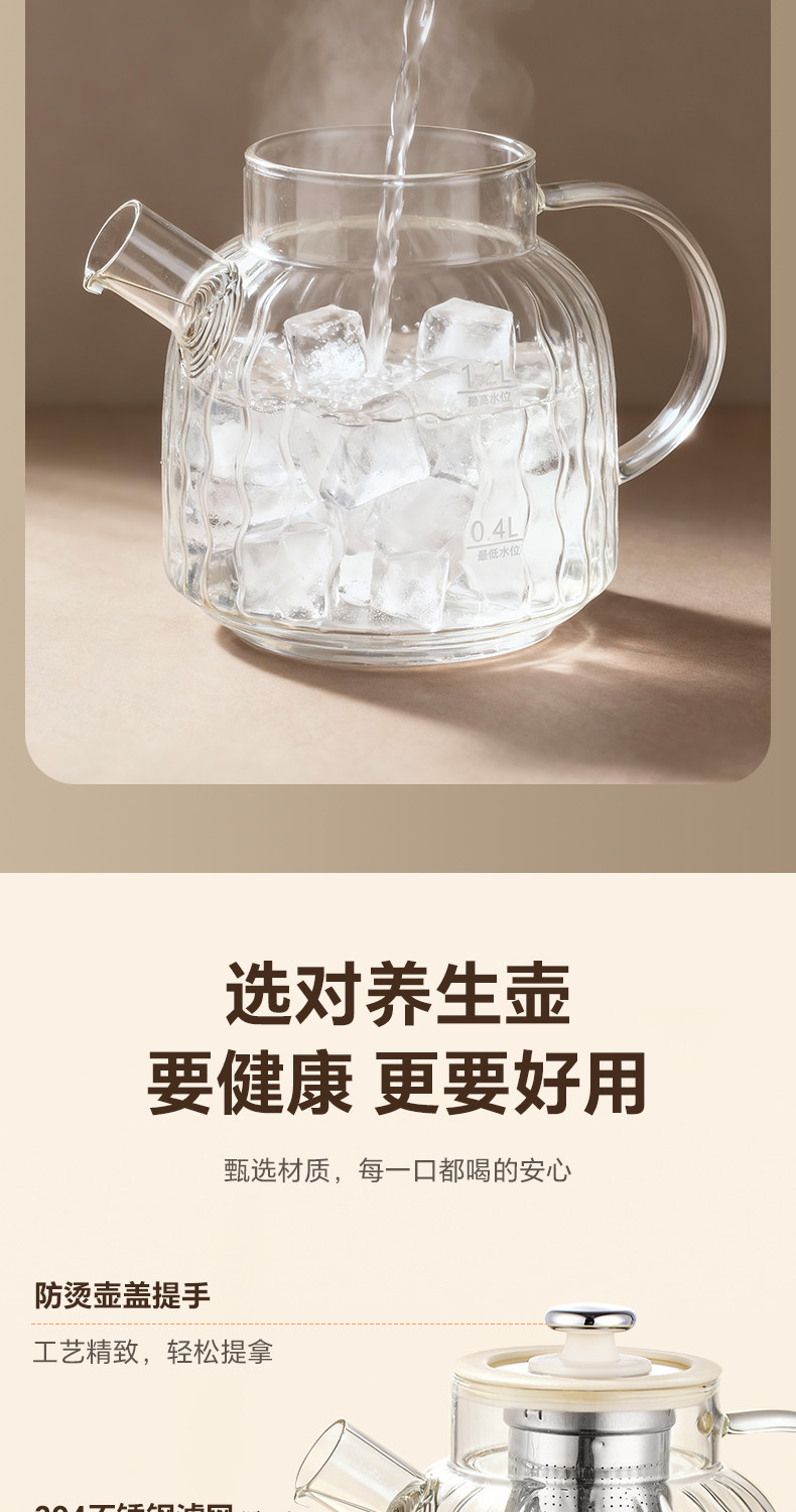 Oaks All-Glass Health Pot with Constant Temperature, Small Multi-Functional Home Stewing and Boiling Integrated Hot Water Kettle for Office Use
