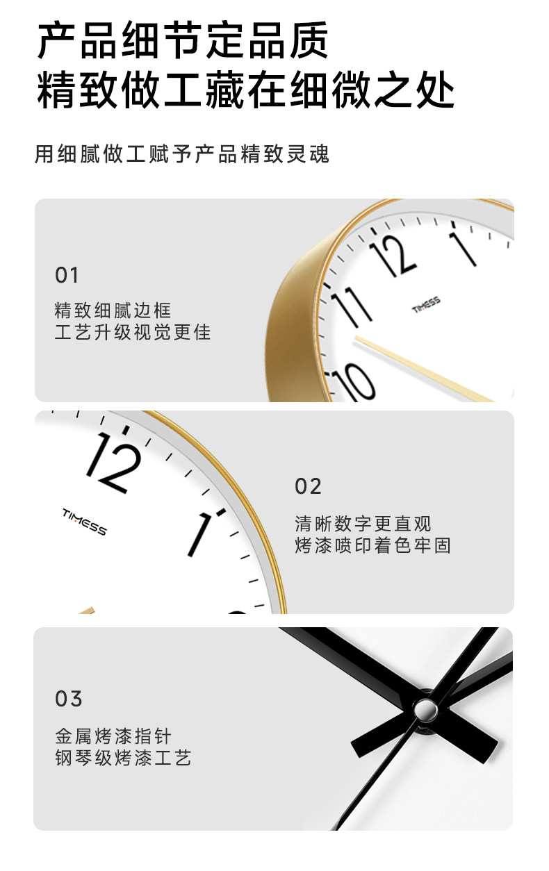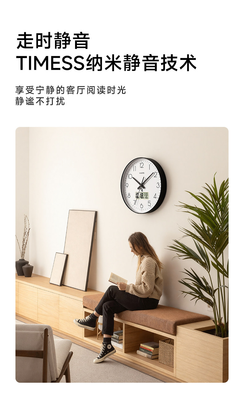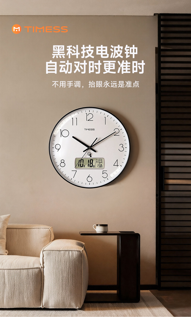 Timess Radio-Controlled Automatic Time Setting Silent Clock Wall-Mounted 2025 New Model Quartz Clock for Home Living Room Bedroom