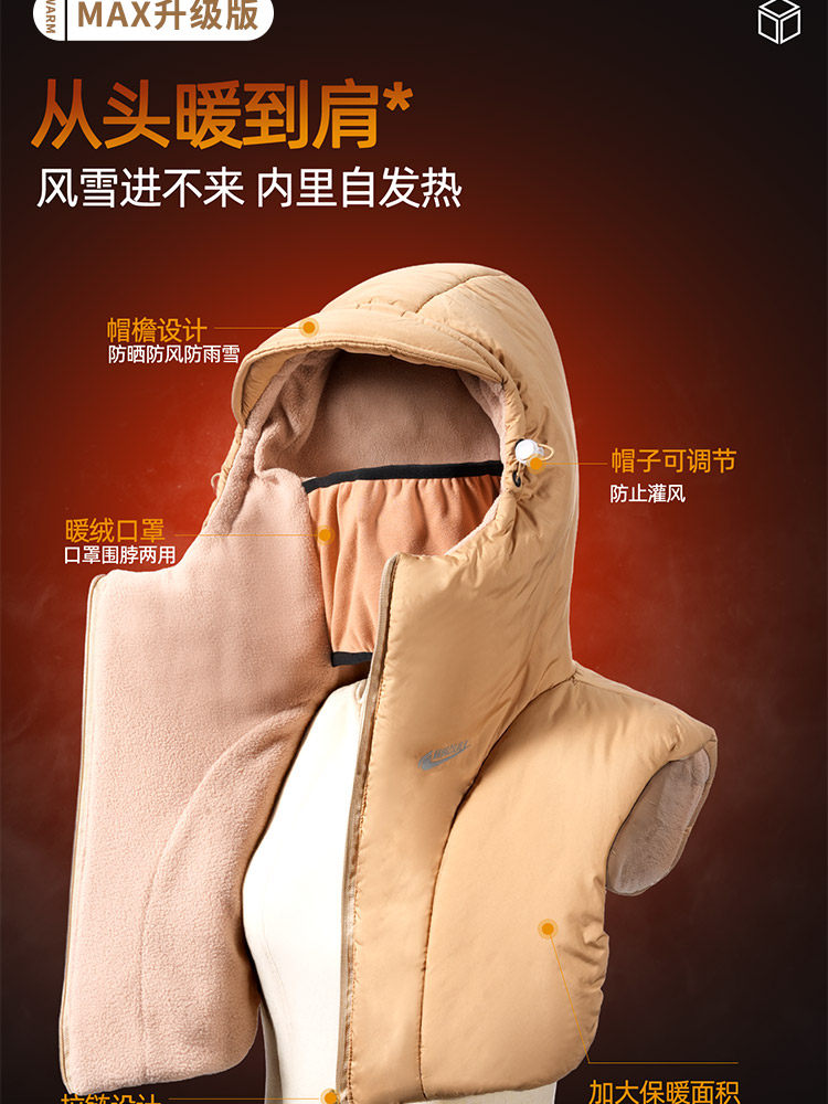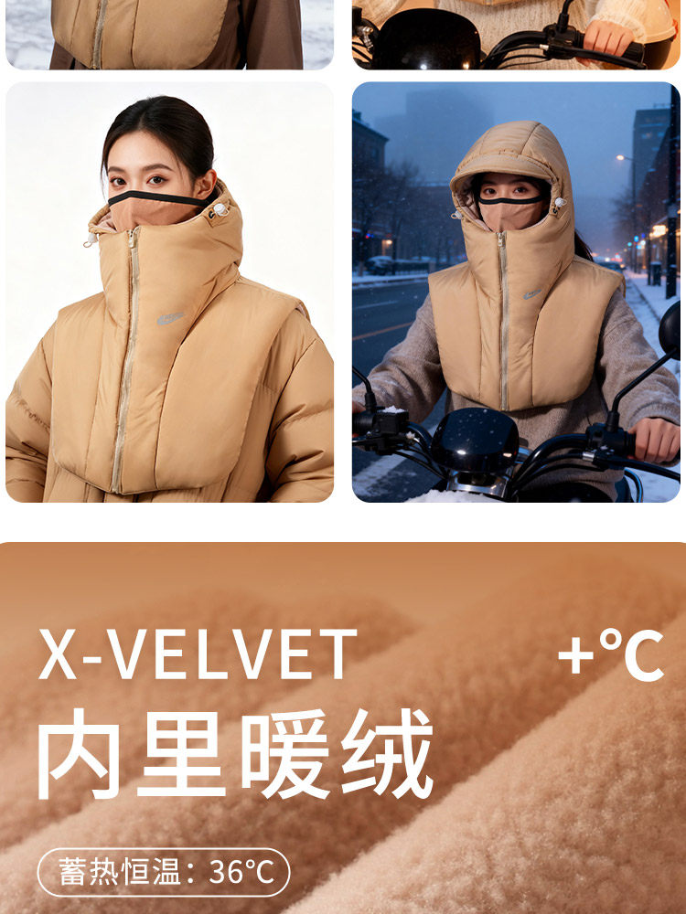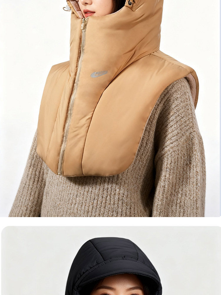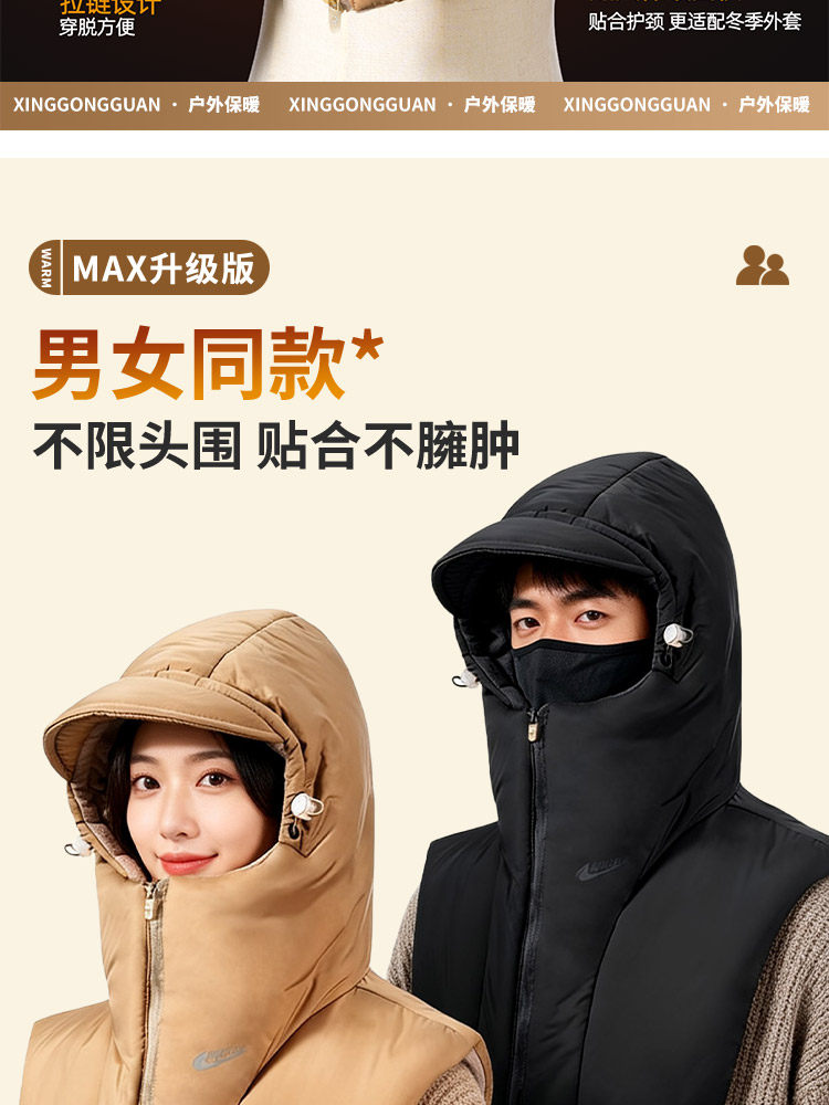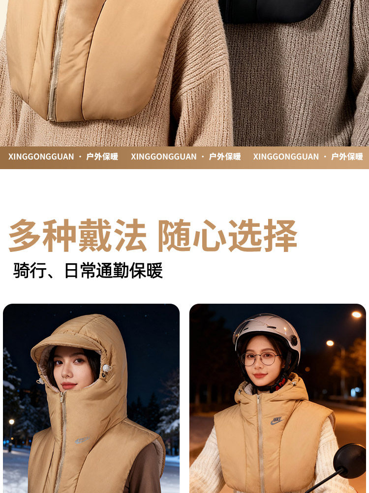 Men's Winter Warm Scarf-Integrated Hat, Ear-Protecting Hat, Windproof Scarf, Cycling Cold-Proof down Cotton Hat for Women