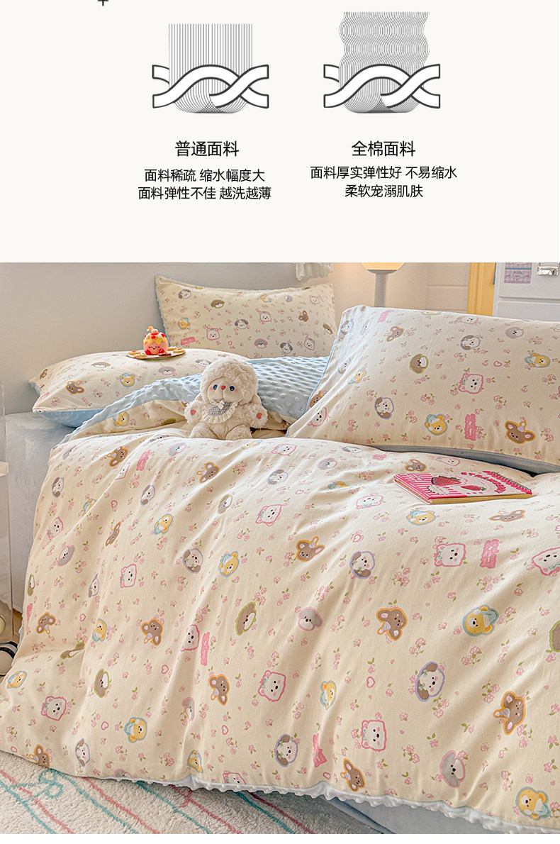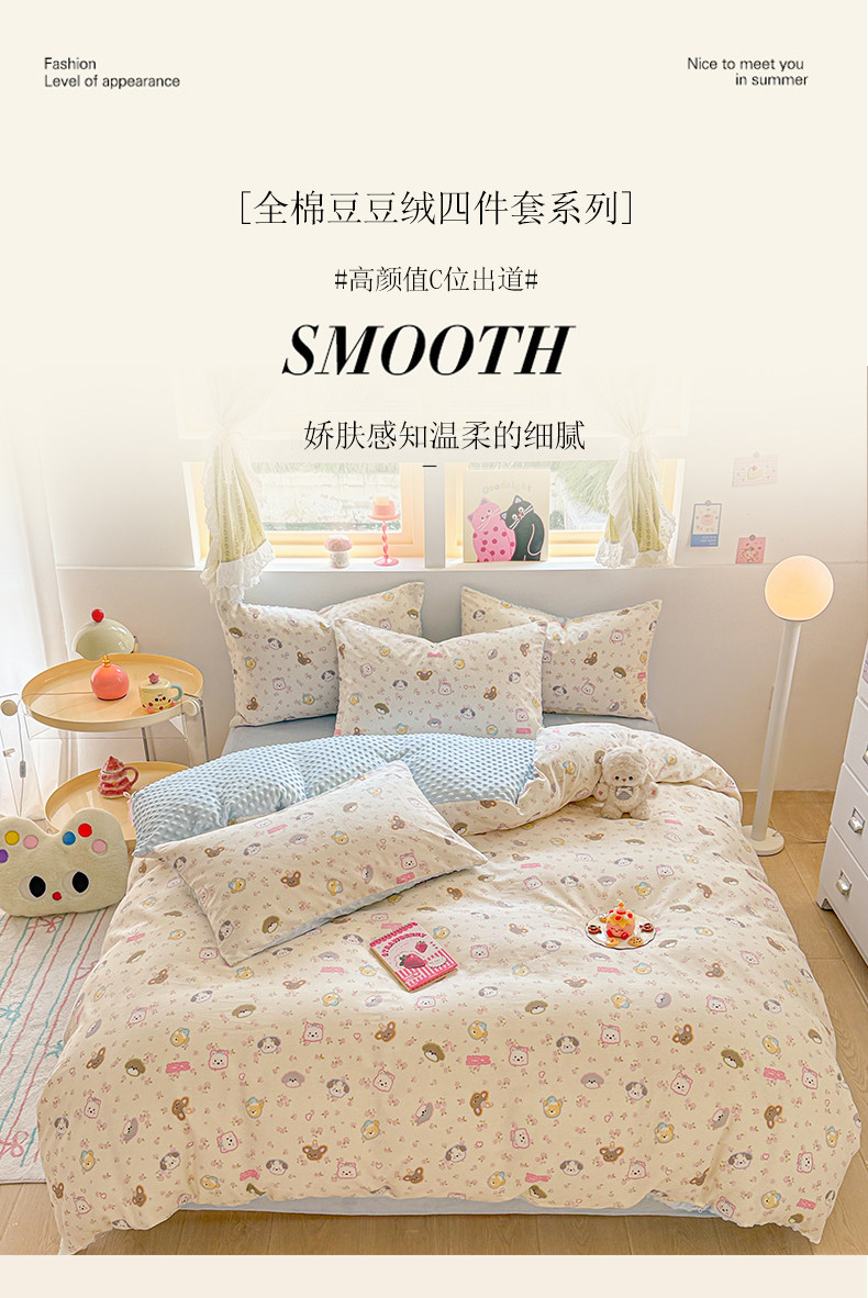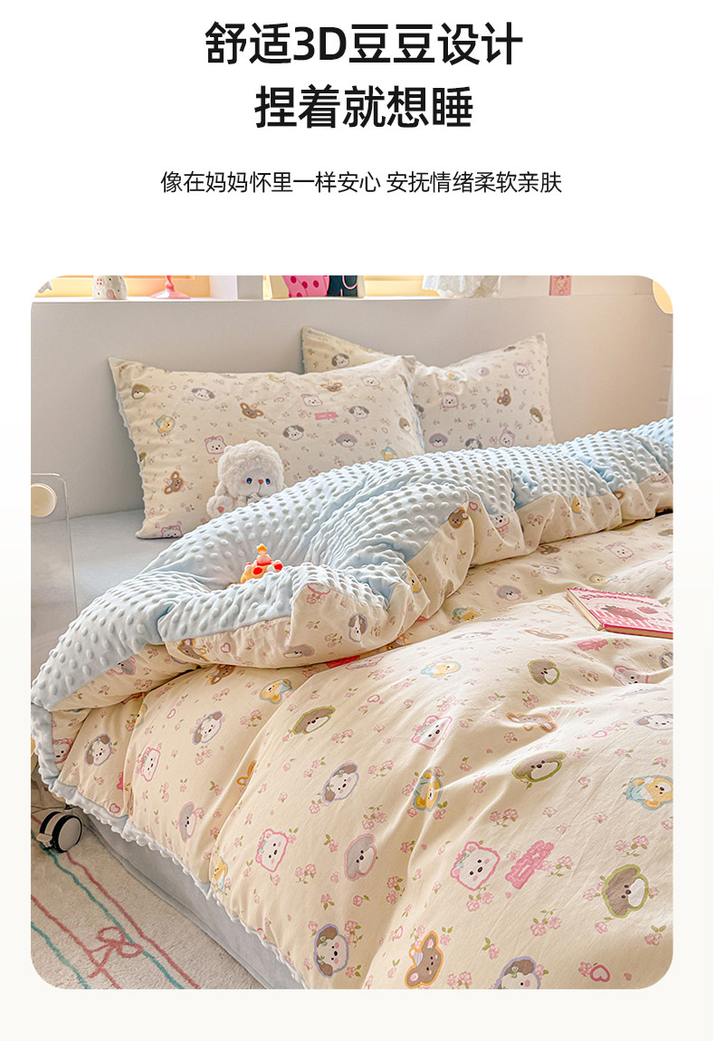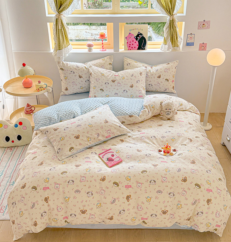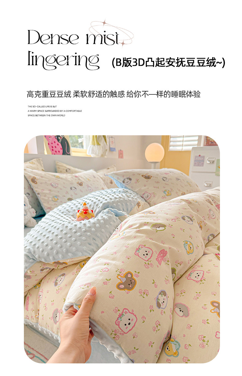 Cartoon Pure Cotton Four-Piece Set, Bean Velvet Duvet Cover, 2026 New Double-Sided Winter Thickened Milk Velvet Three-Piece Bedding Set