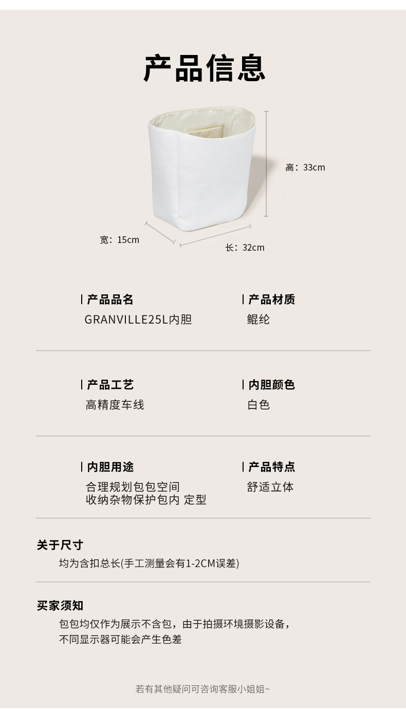 Guyi Is Suitable for Arc'Teryx Granville 25L Backpack Liner, Dupont Paper Waterproof Storage Bag Support